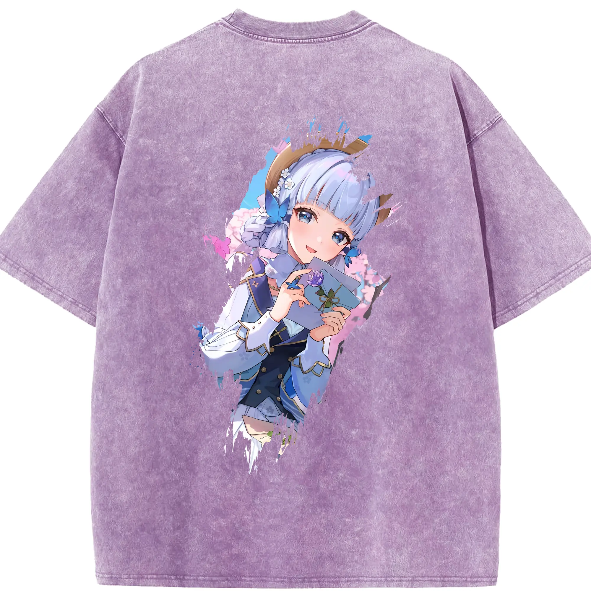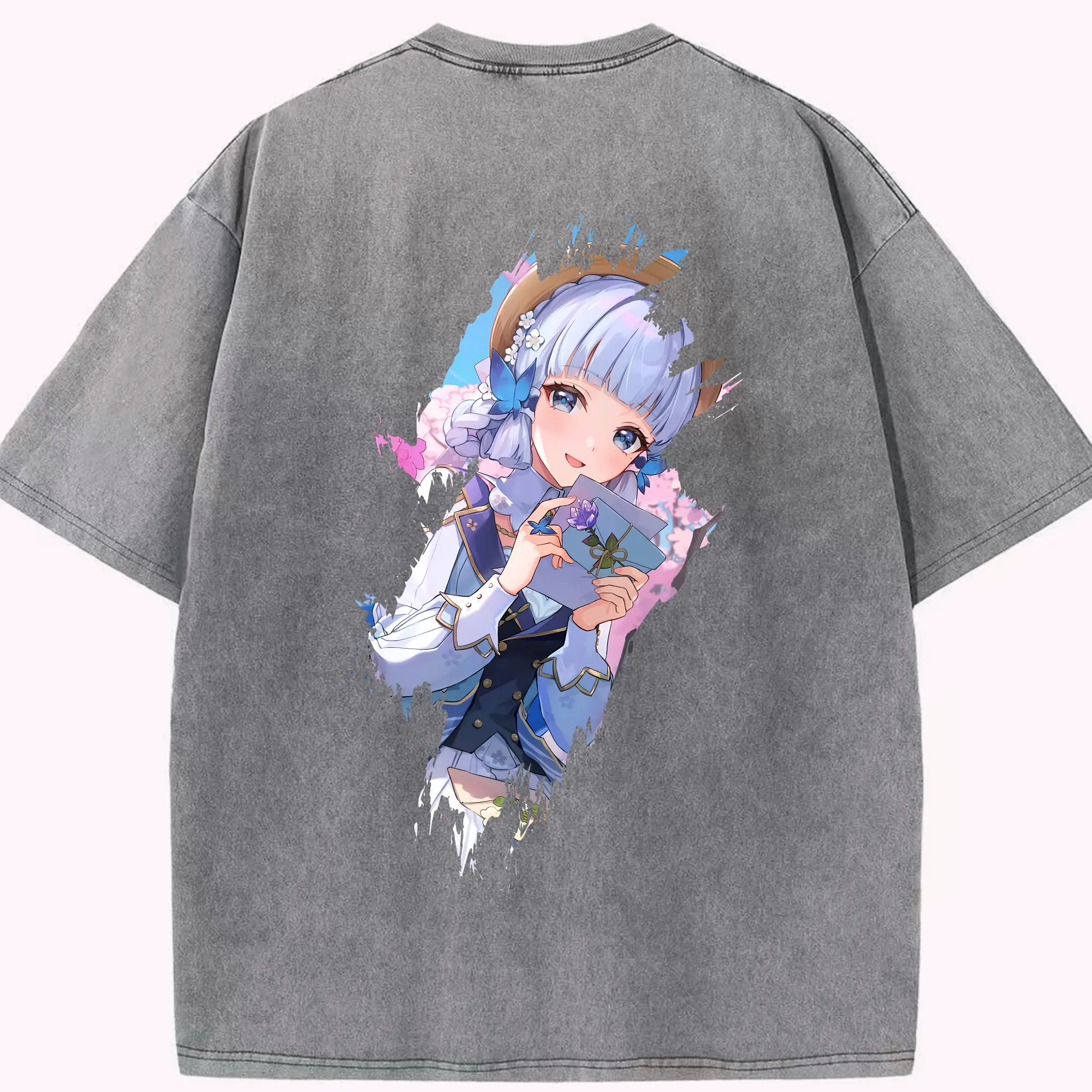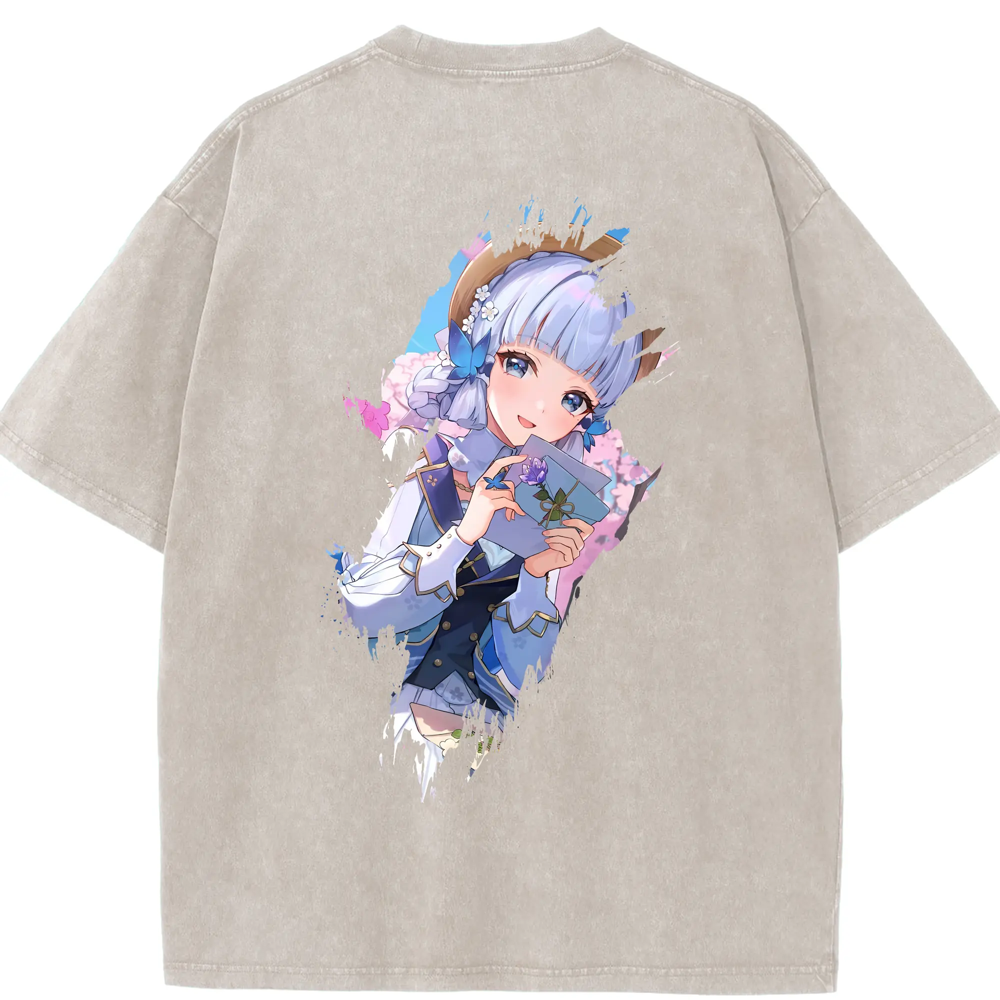 原 神 グッズ 神里綾華 - 綿100% ヴィンテージ風 半袖Tシャツ ・ フロントプリント ・ 柔らか肌触り ・ 通気性 快適 ・ スポーツ カジュアル 外出用