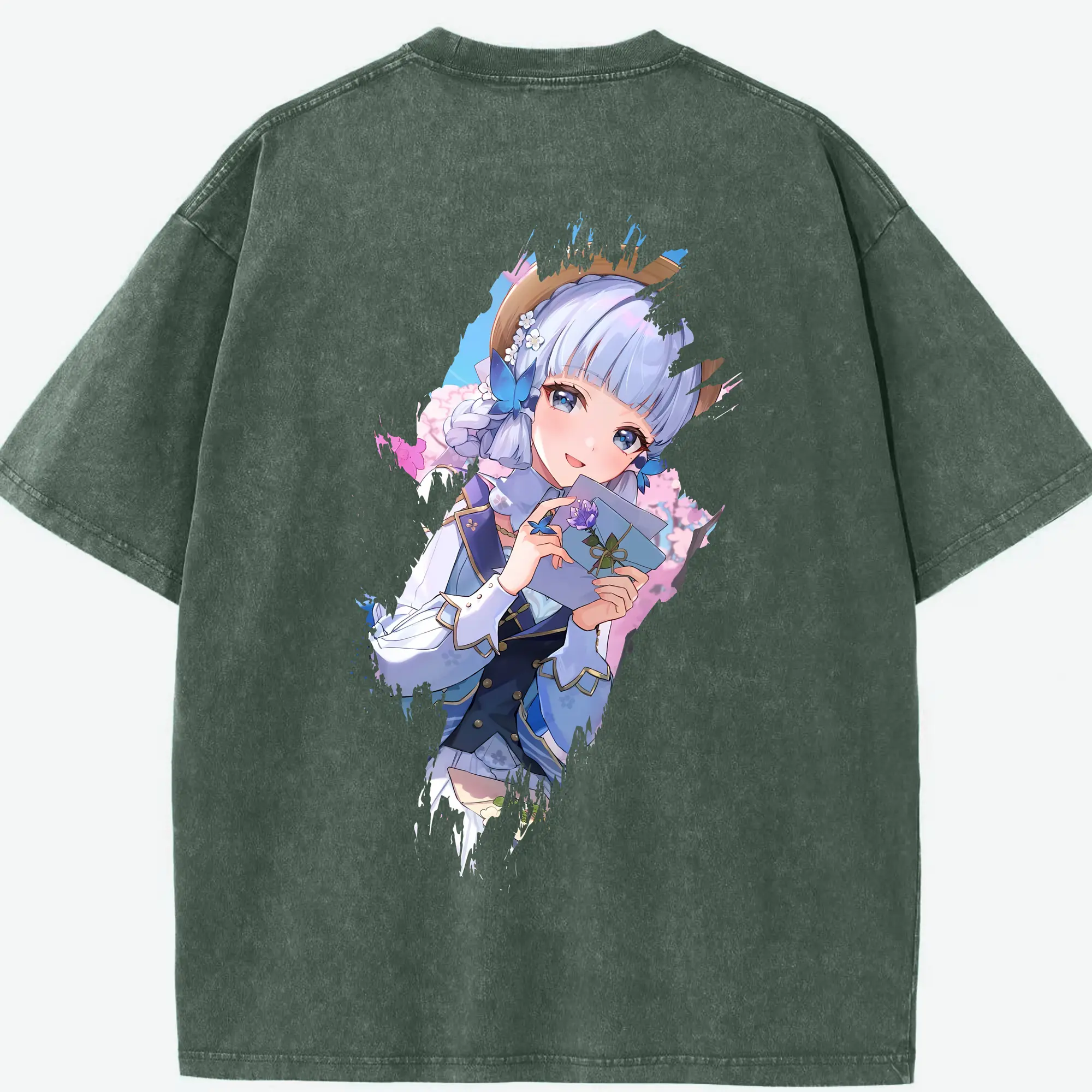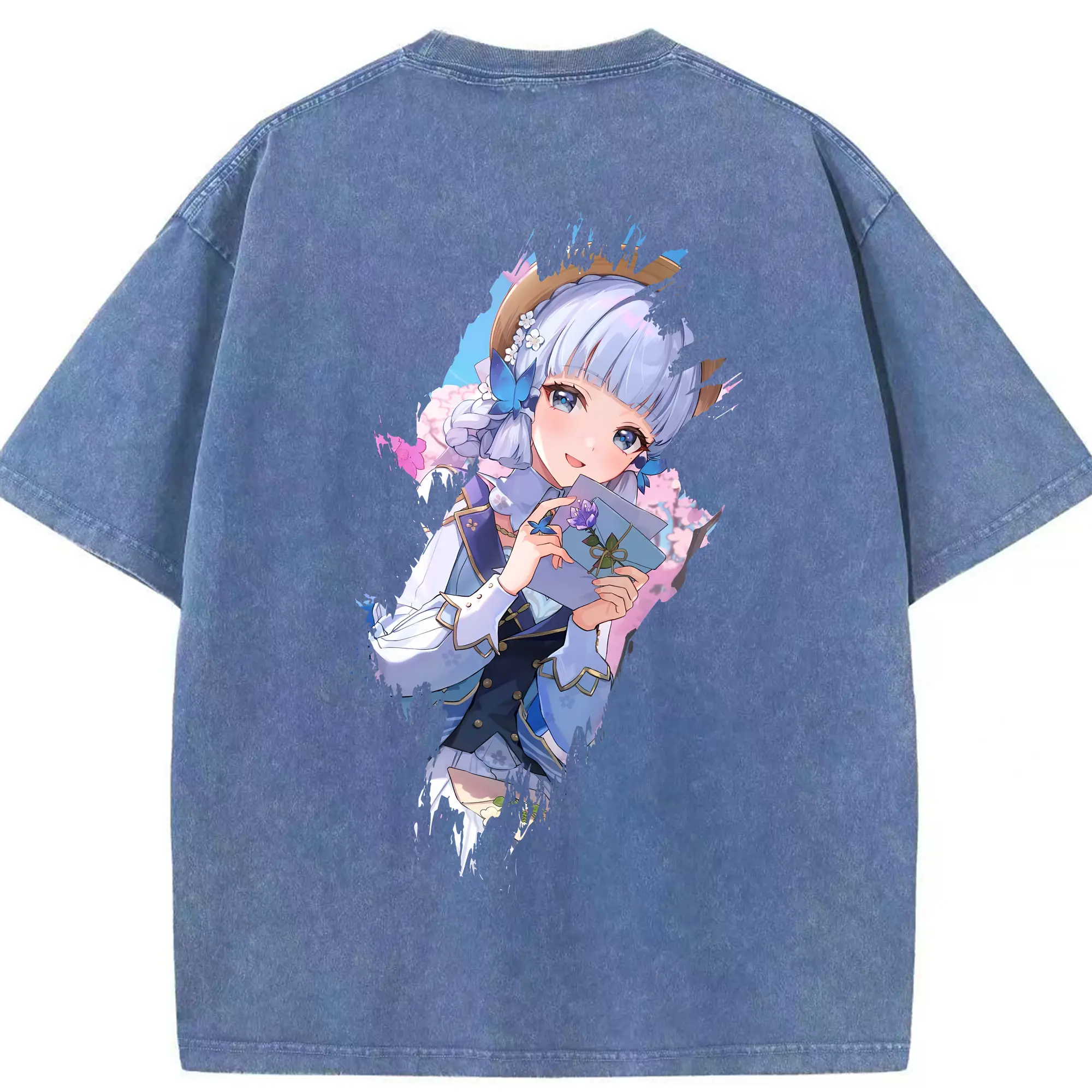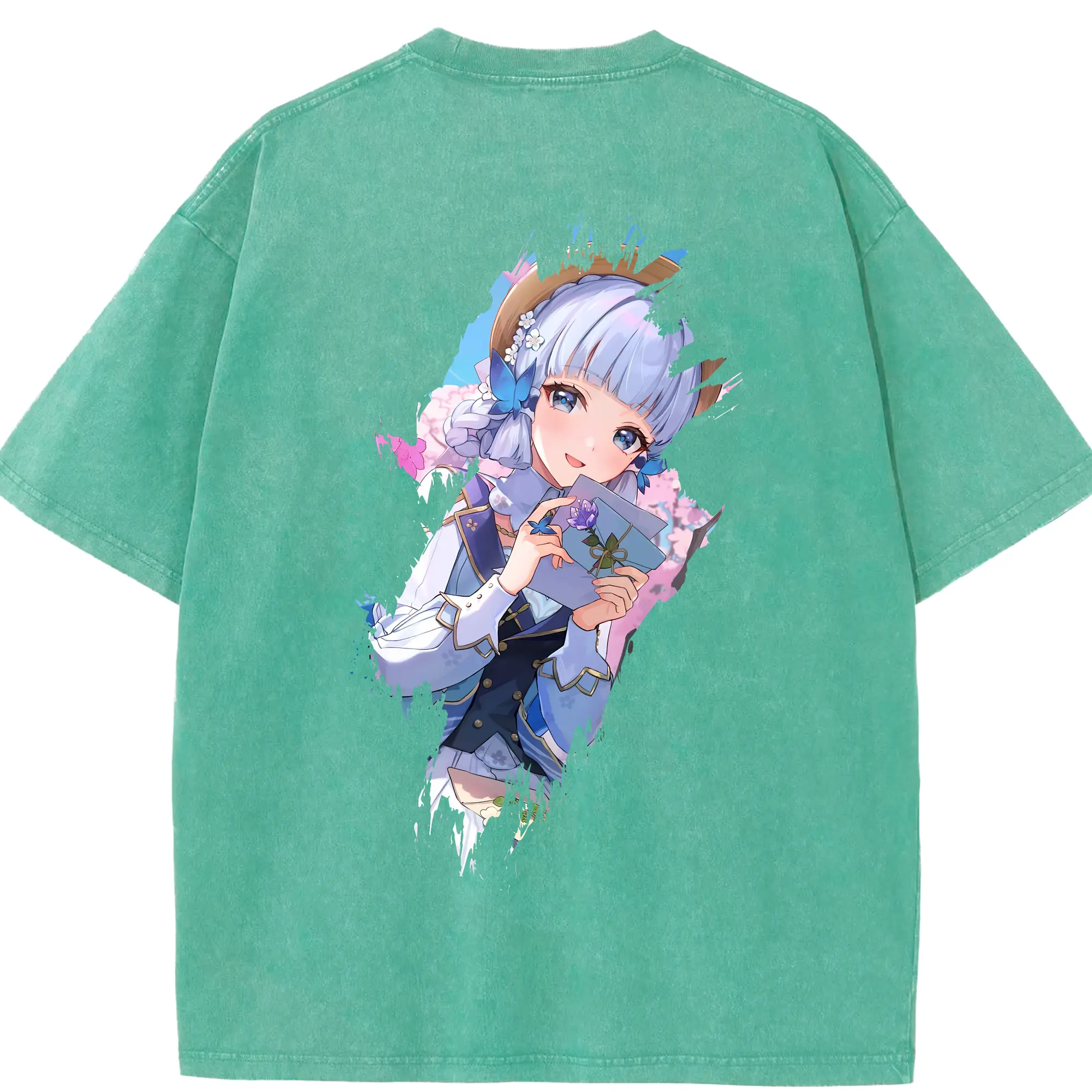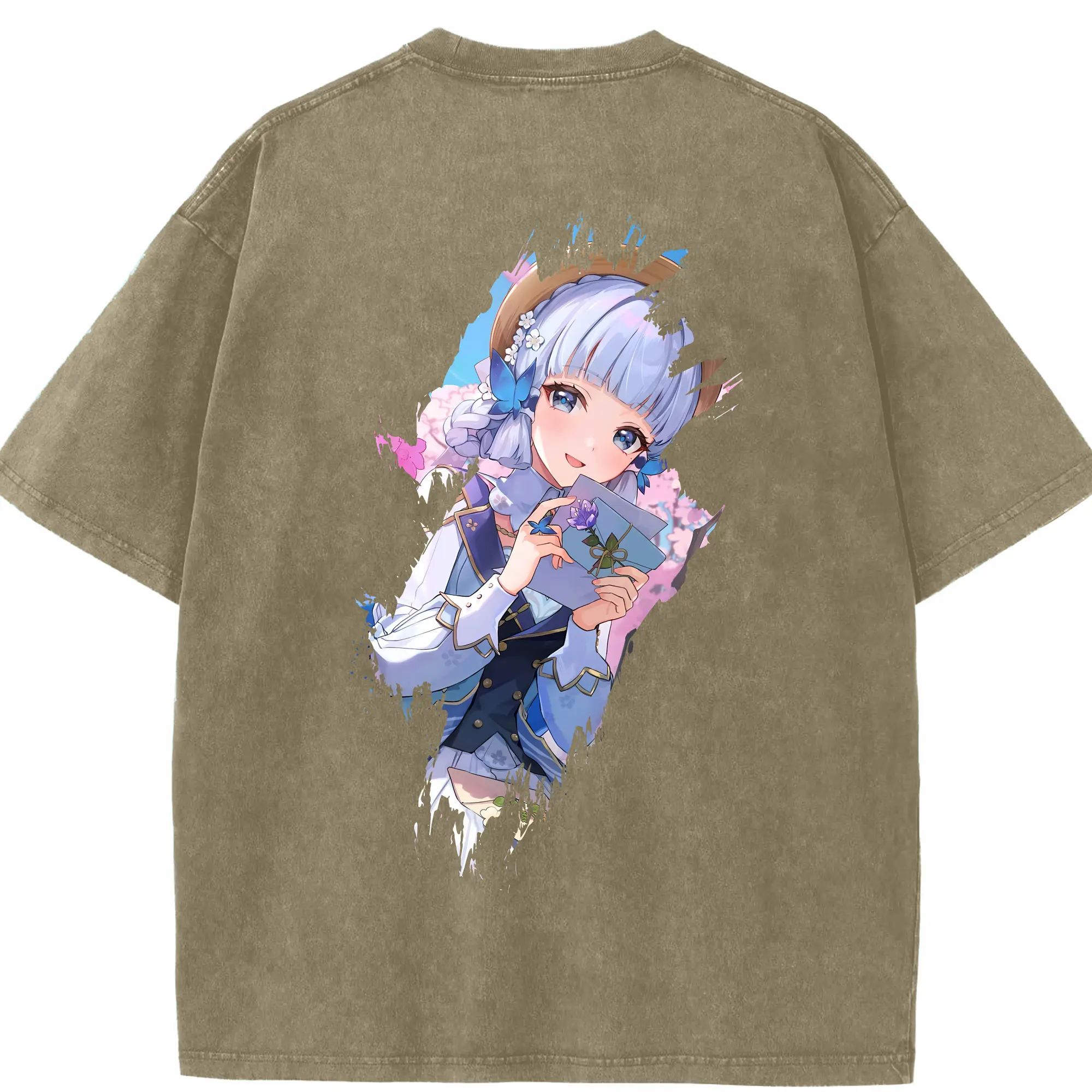 原 神 グッズ 神里綾華 - 綿100% ヴィンテージ風 半袖Tシャツ ・ フロントプリント ・ 柔らか肌触り ・ 通気性 快適 ・ スポーツ カジュアル 外出用