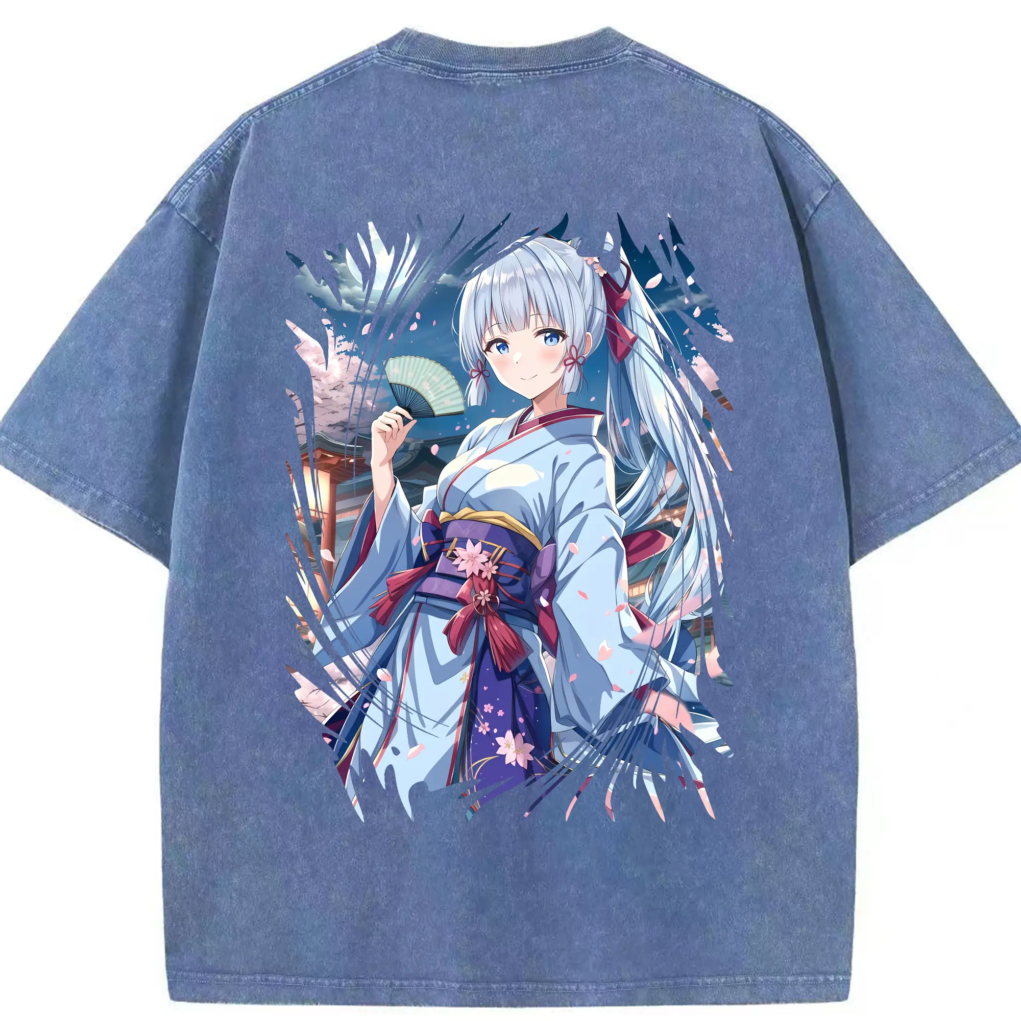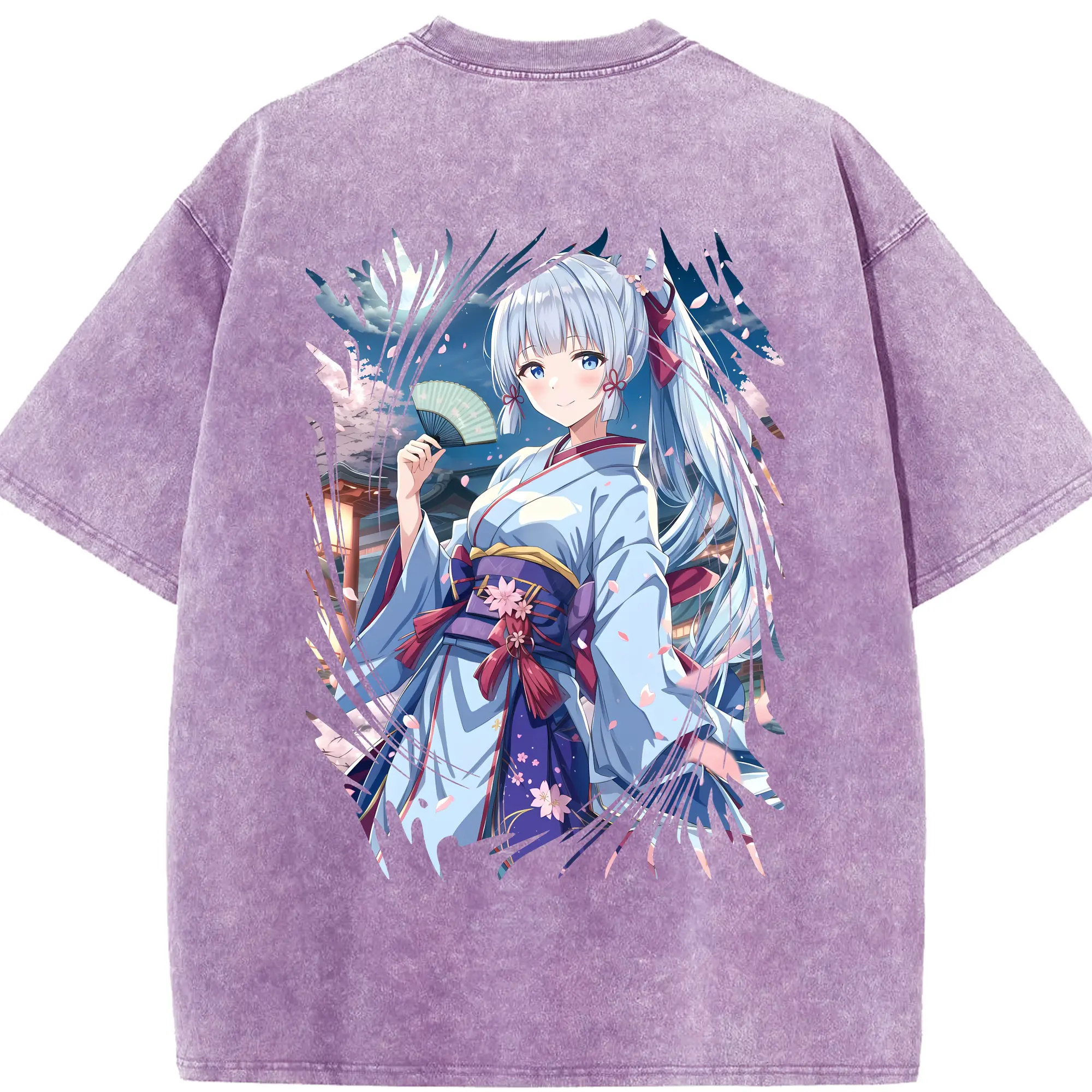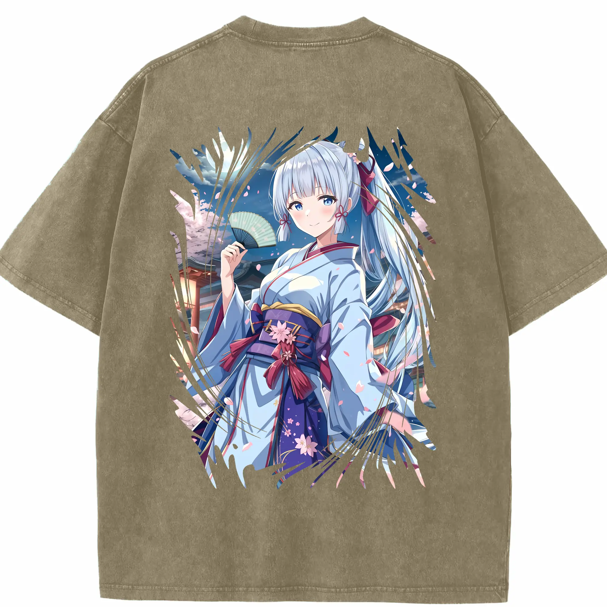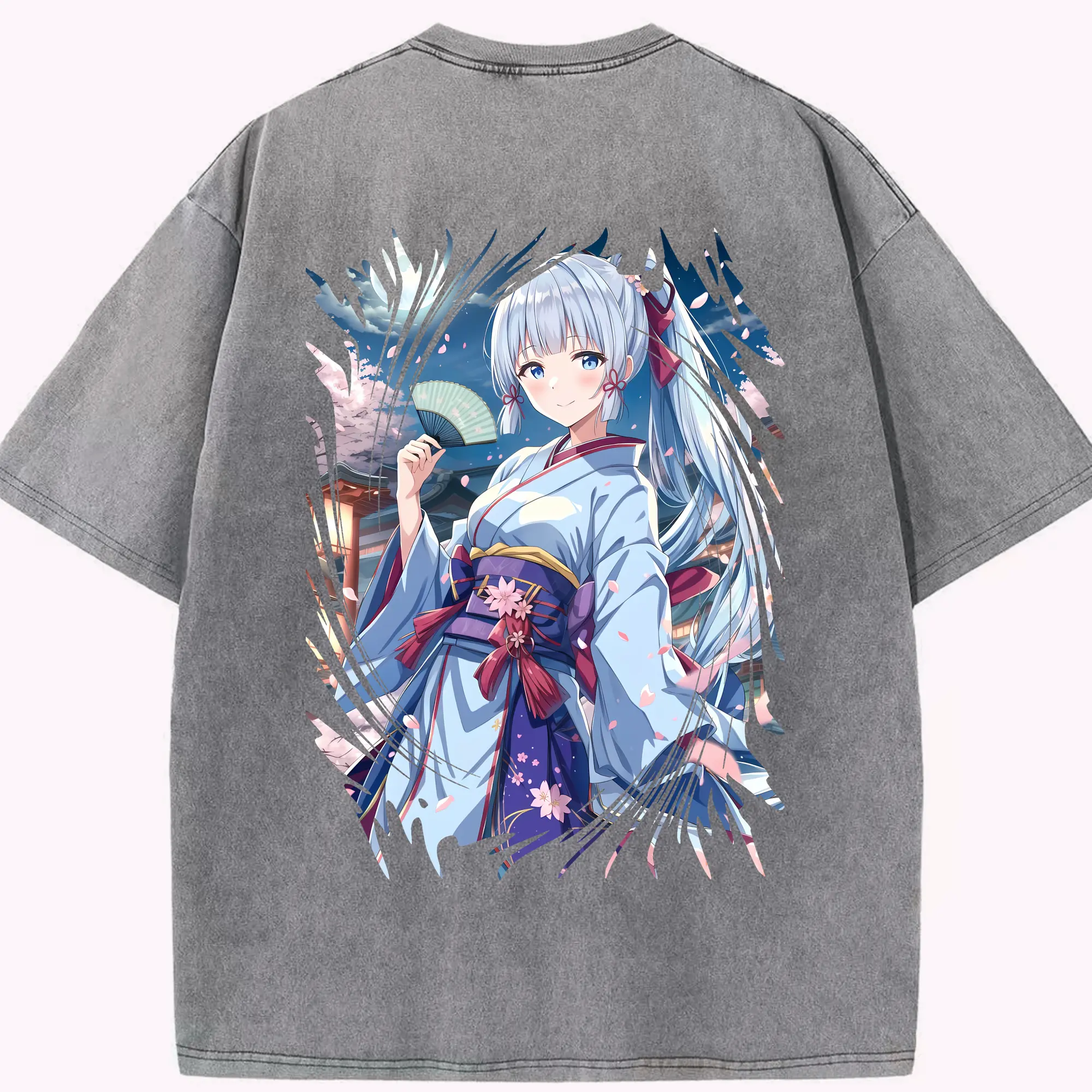 原 神 グッズ 神里綾華 - 綿100% ヴィンテージ風 半袖Tシャツ ・ フロントプリント ・ 柔らか肌触り ・ 通気性 快適 ・ スポーツ カジュアル 外出用
