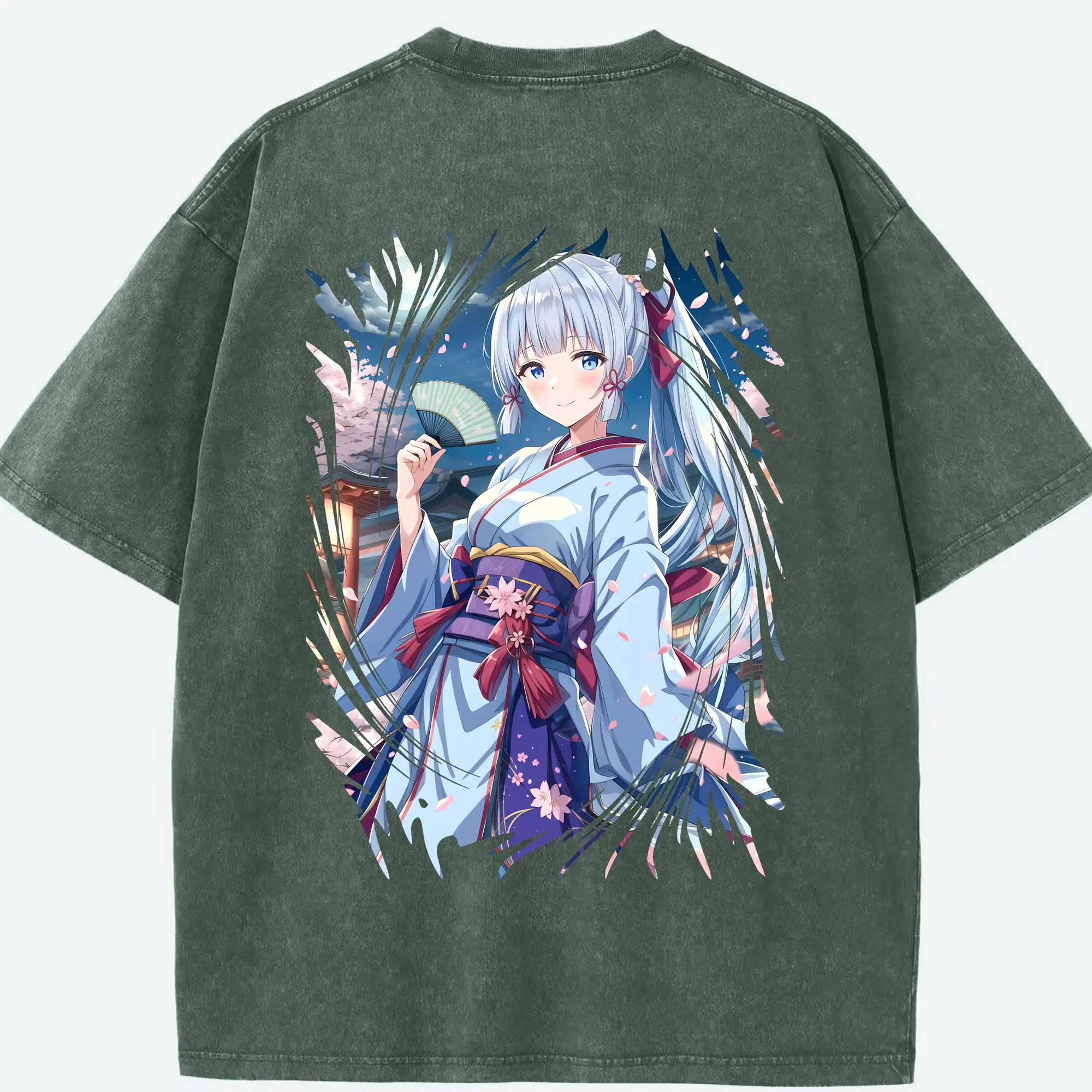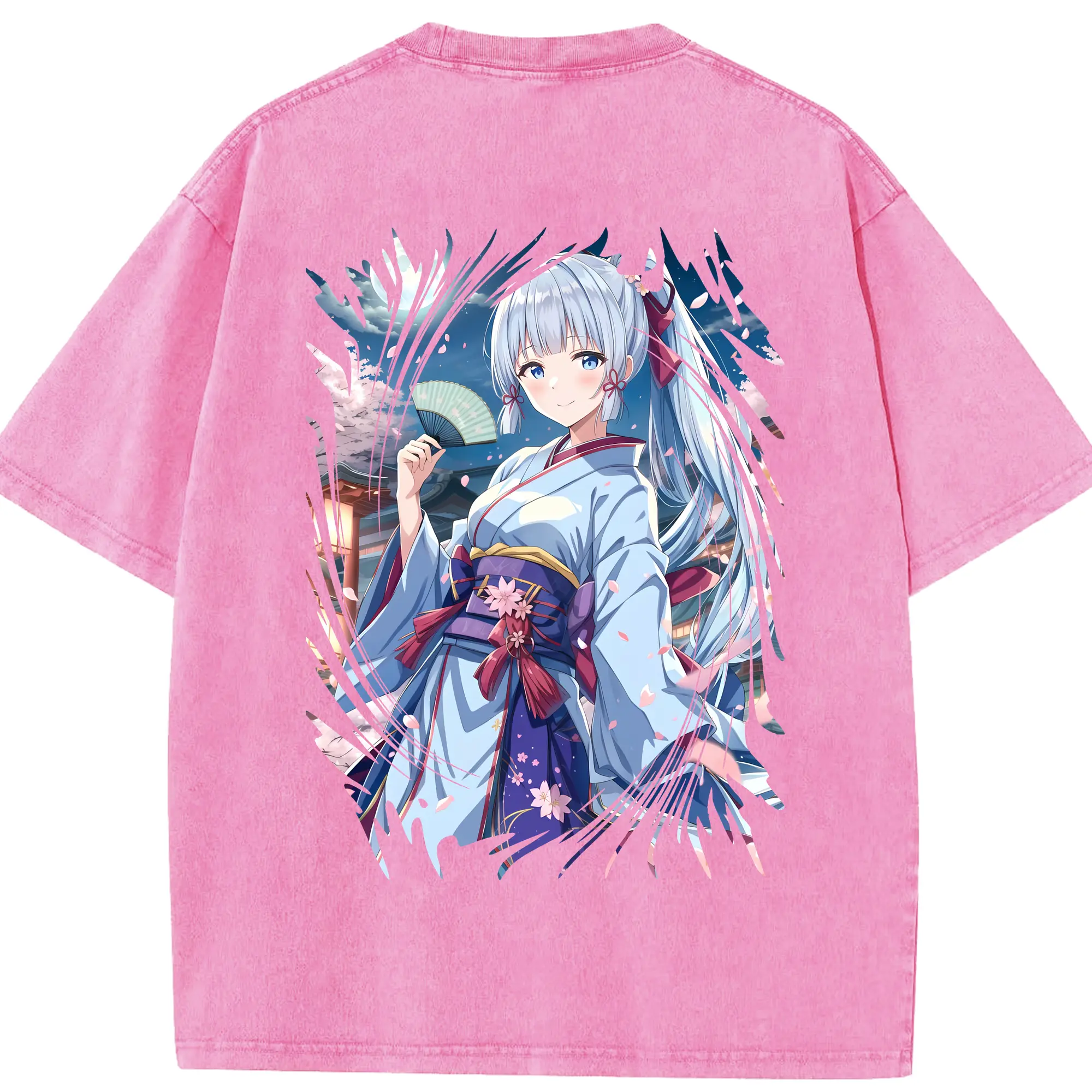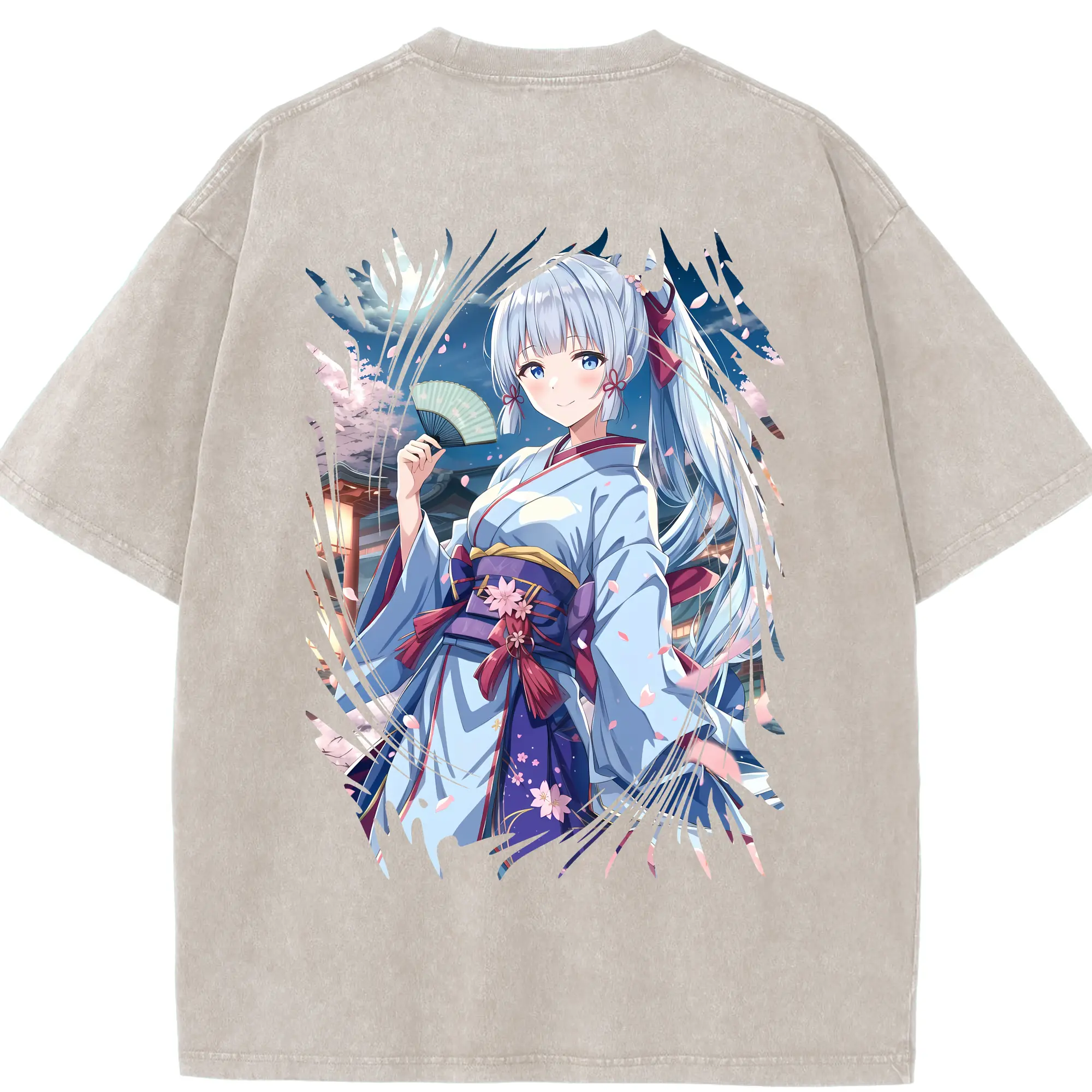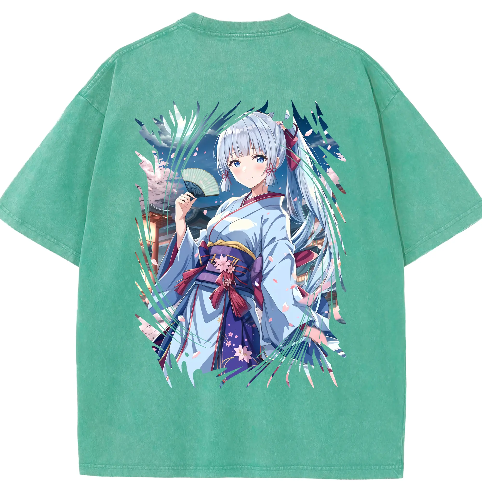 原 神 グッズ 神里綾華 - 綿100% ヴィンテージ風 半袖Tシャツ ・ フロントプリント ・ 柔らか肌触り ・ 通気性 快適 ・ スポーツ カジュアル 外出用