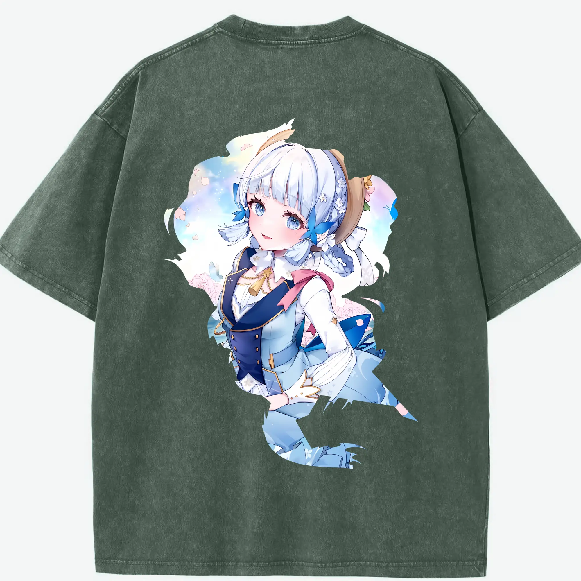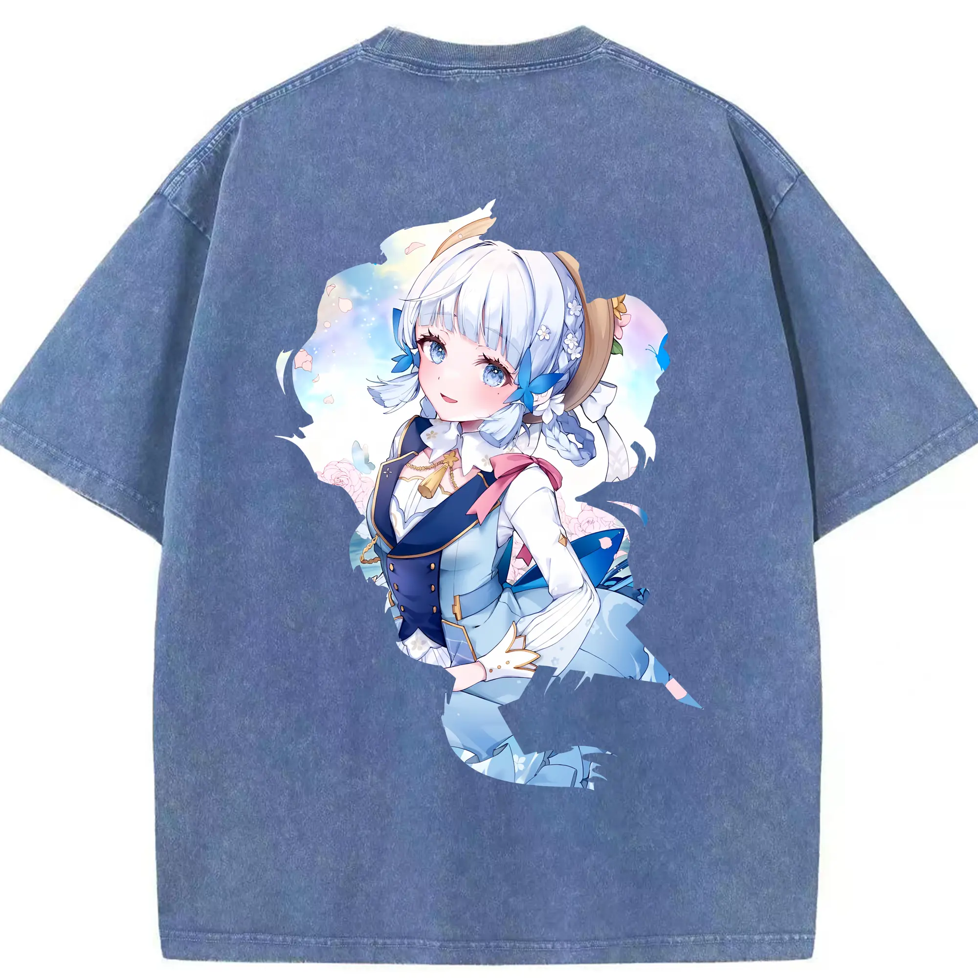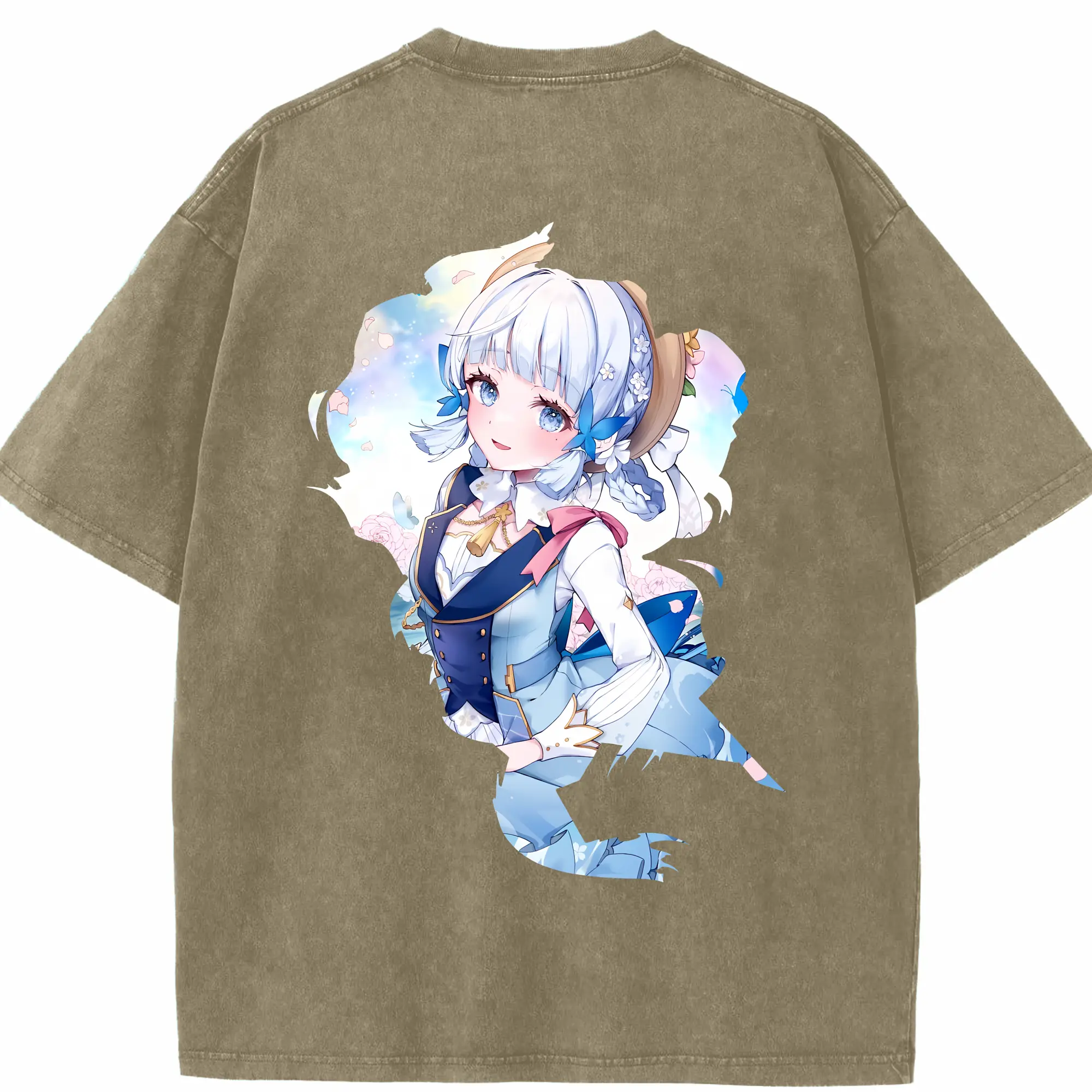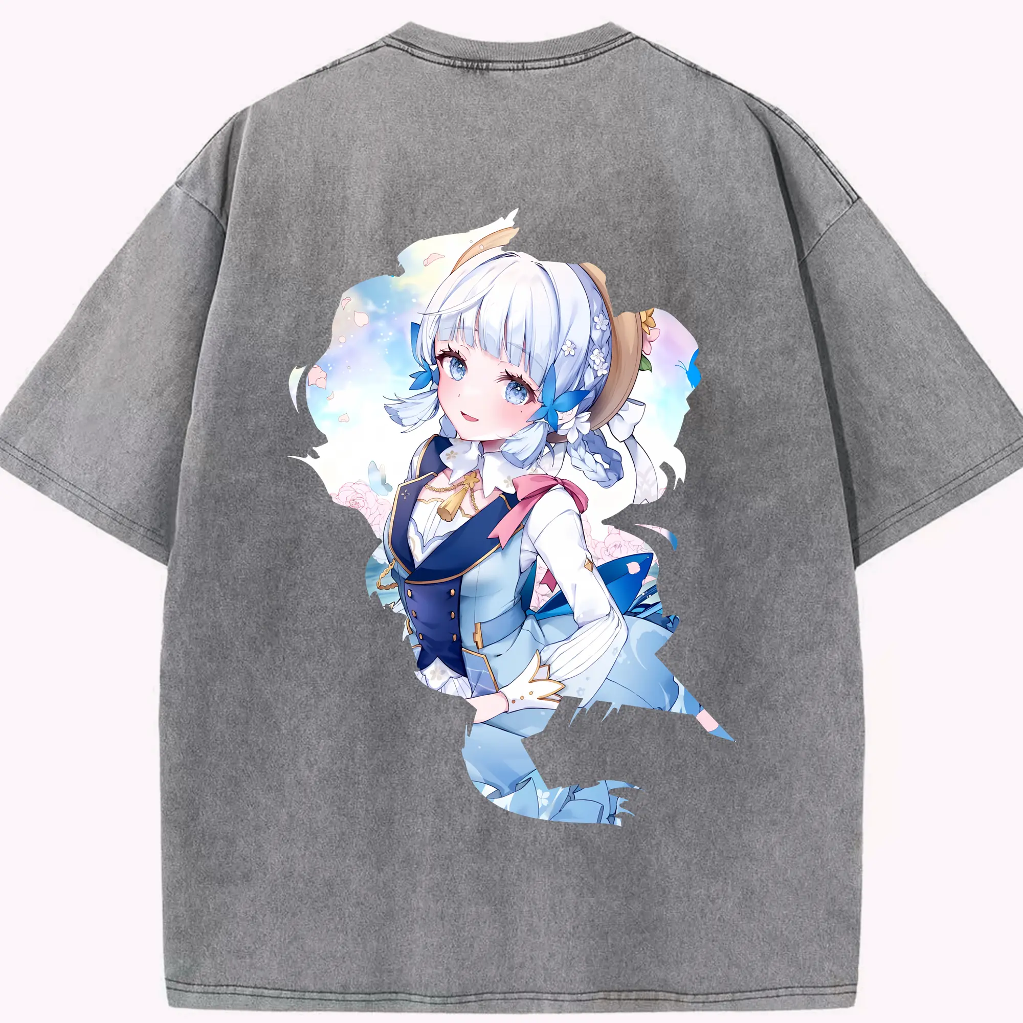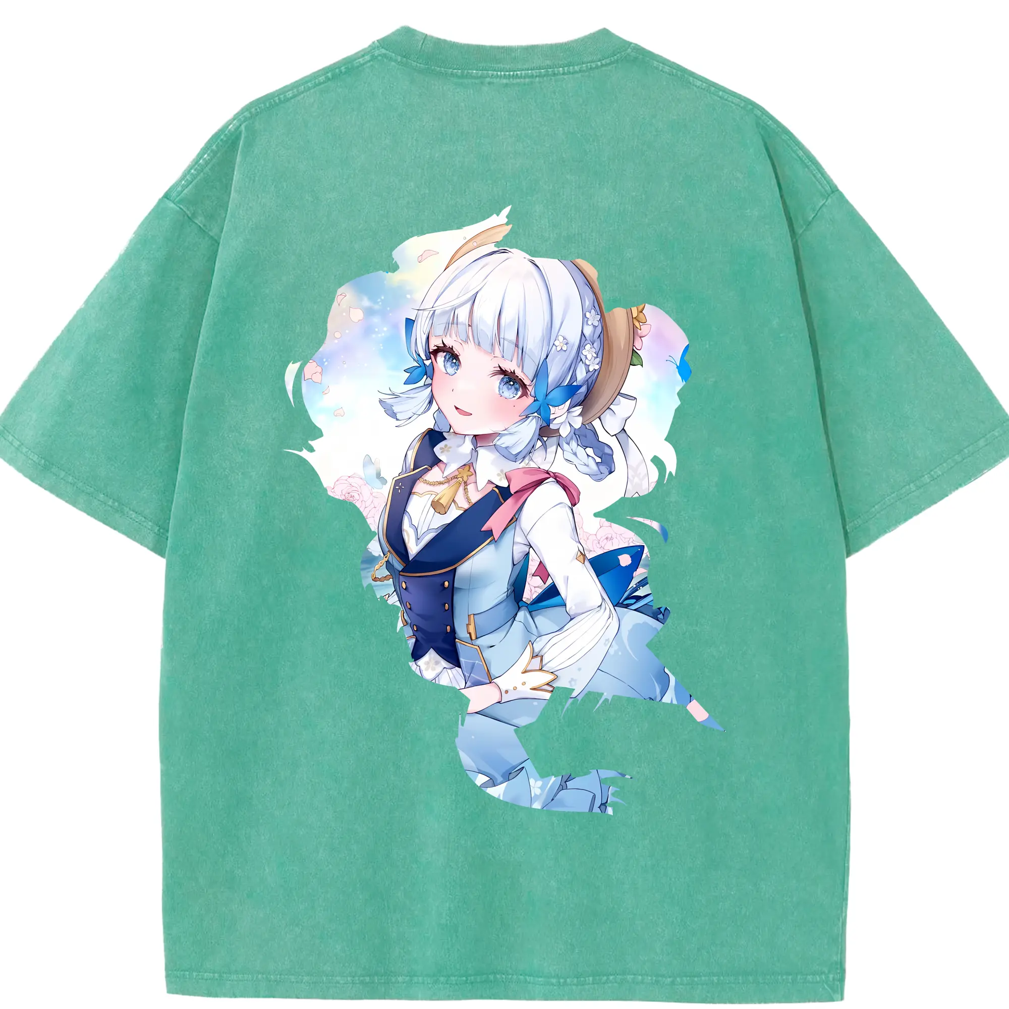 鳴潮 グッズ カンタレラ - 綿100% ヴィンテージ風 半袖Tシャツ ・ 背面プリント ・ 柔らか肌触り ・ 通気性 快適 ・ スポーツ カジュアル 外出用