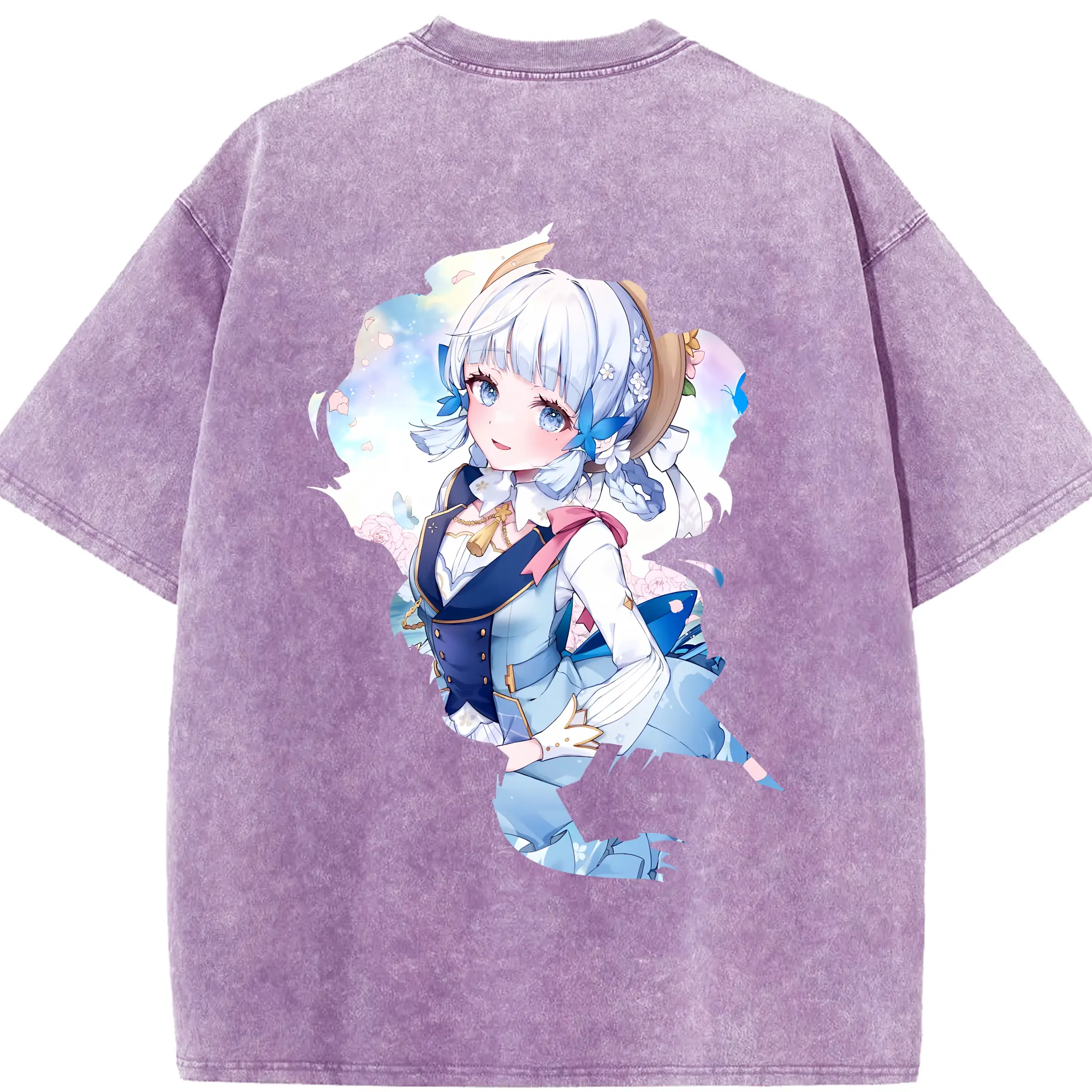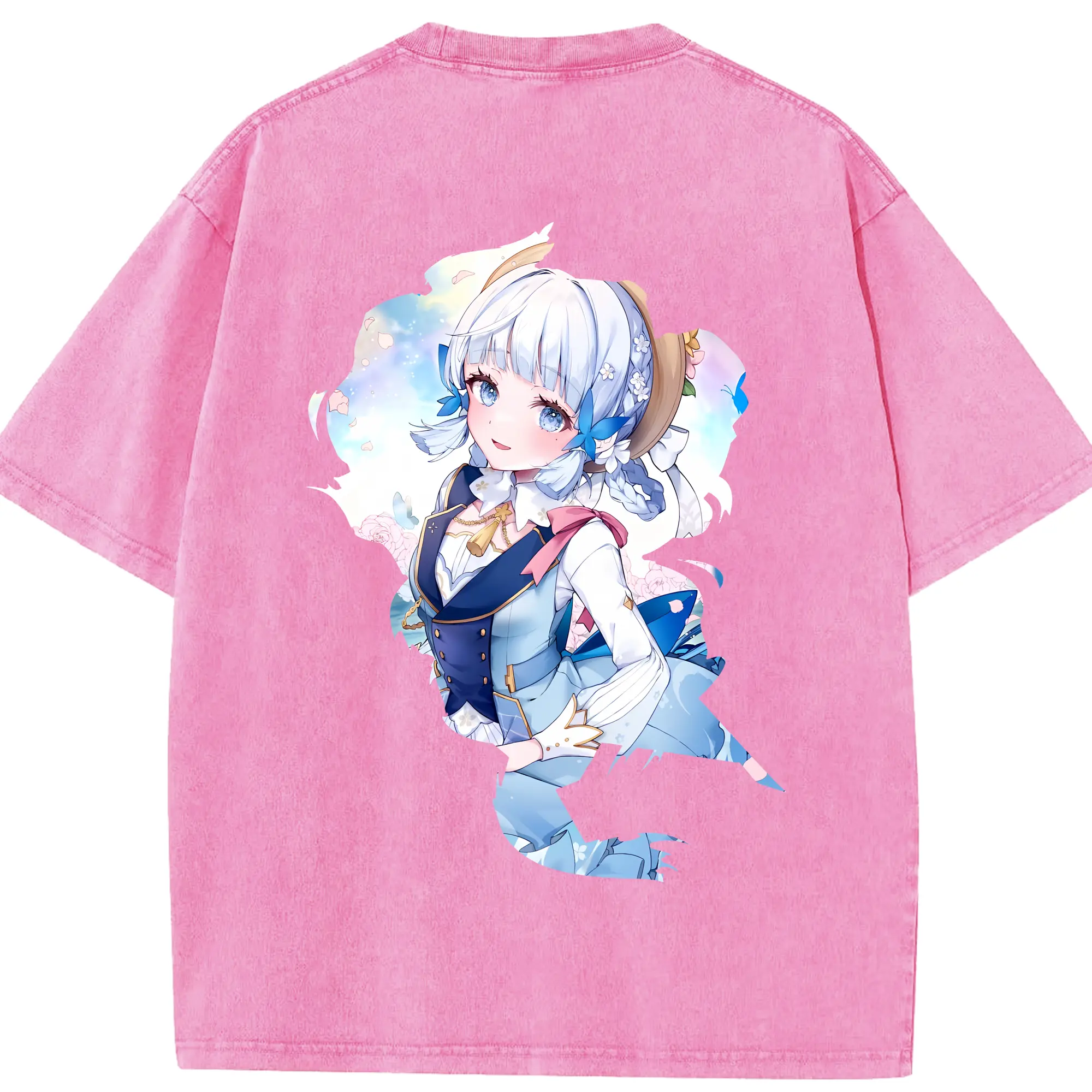 原 神 グッズ 神里綾華 - 綿100% ヴィンテージ風 半袖Tシャツ ・ フロントプリント ・ 柔らか肌触り ・ 通気性 快適 ・ スポーツ カジュアル 外出用