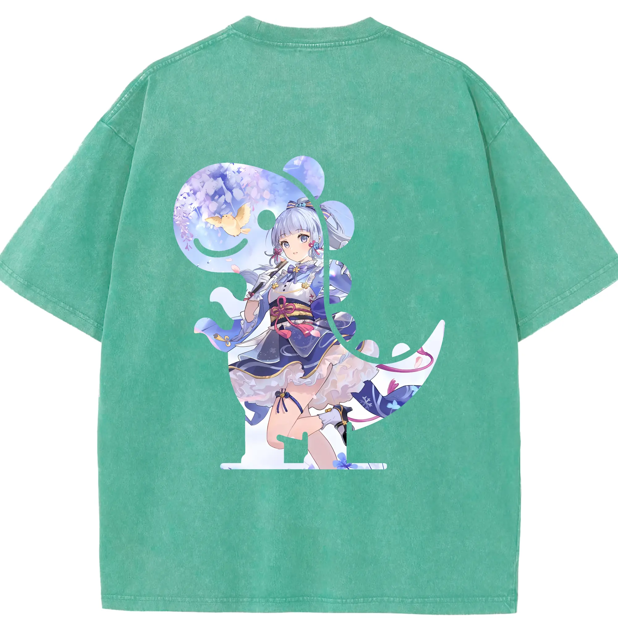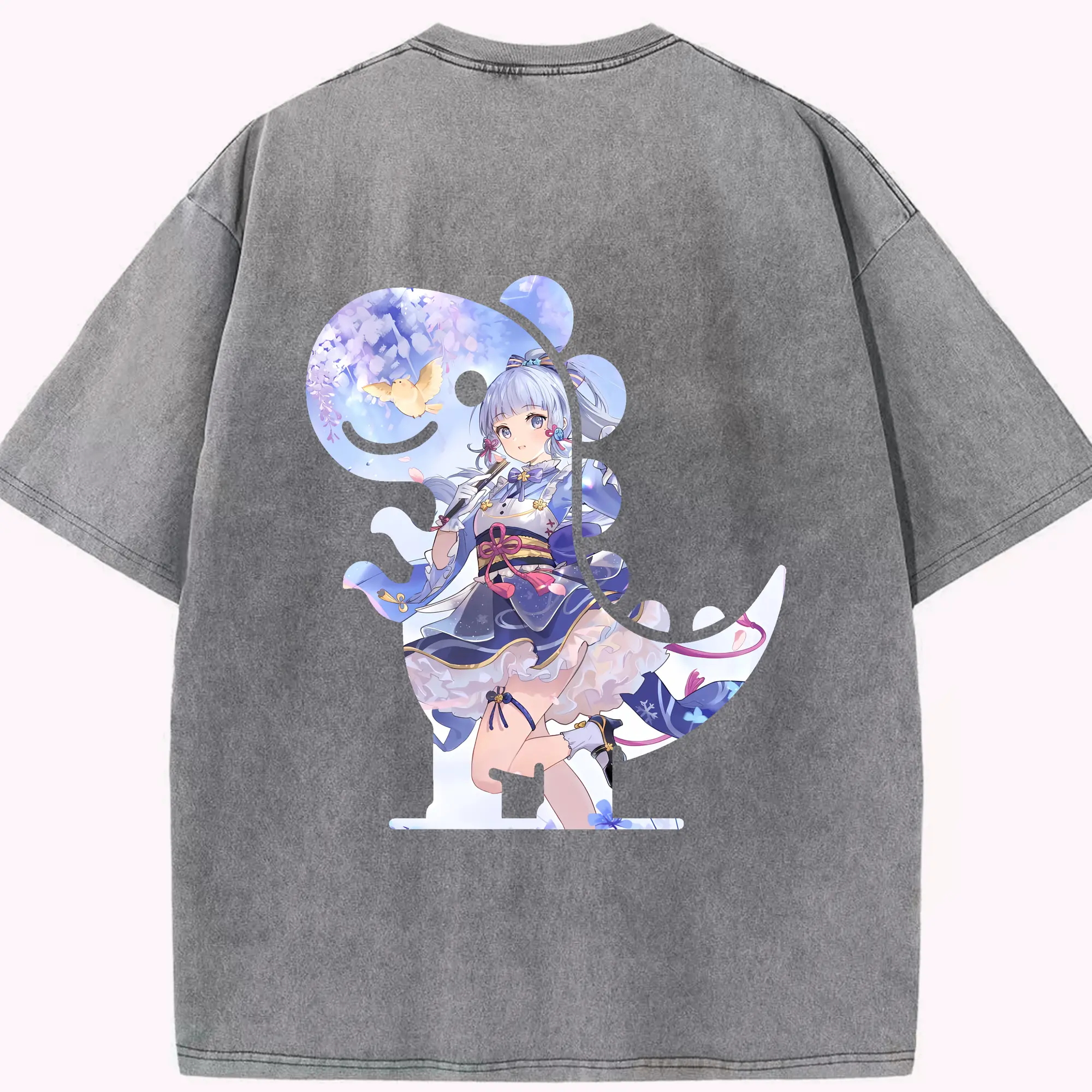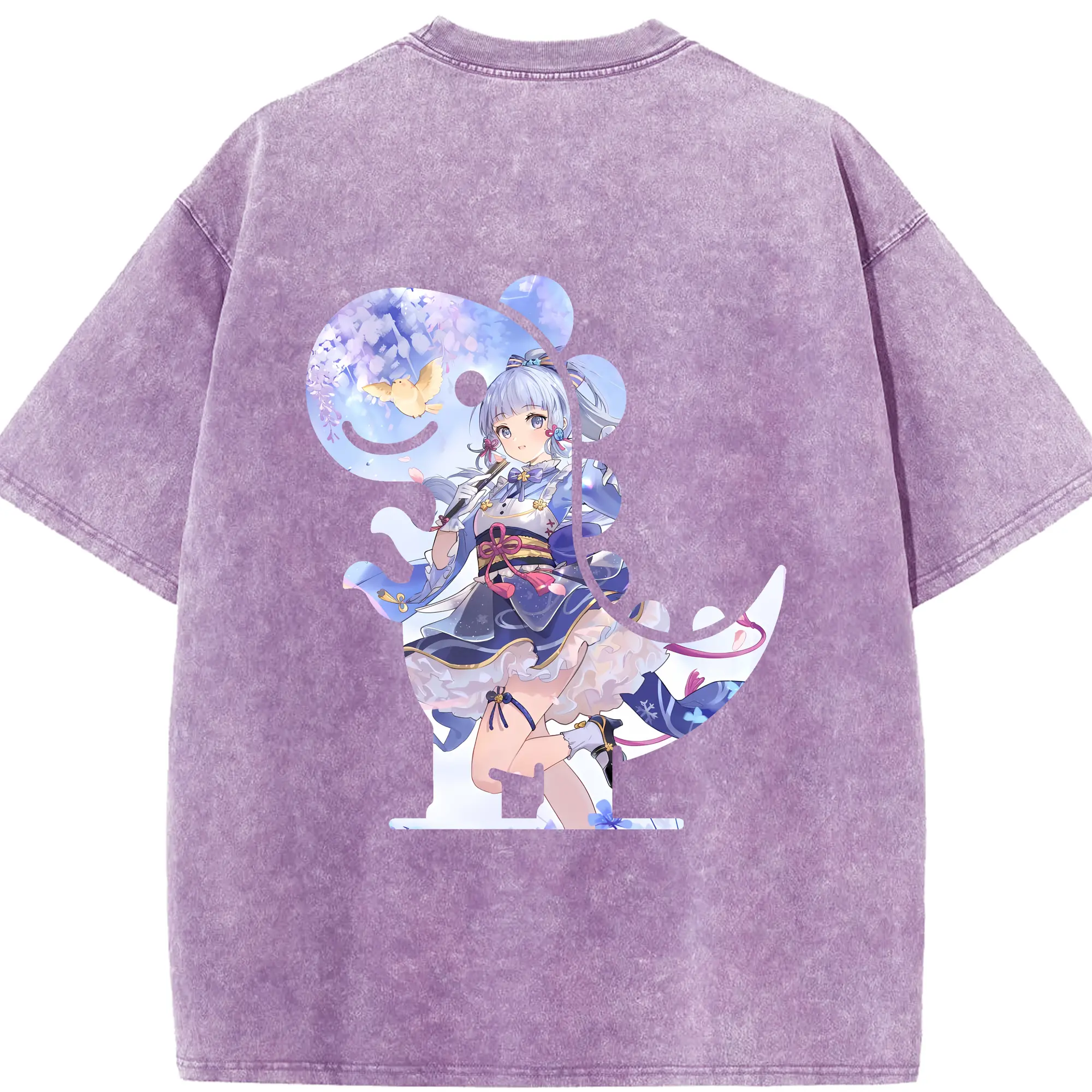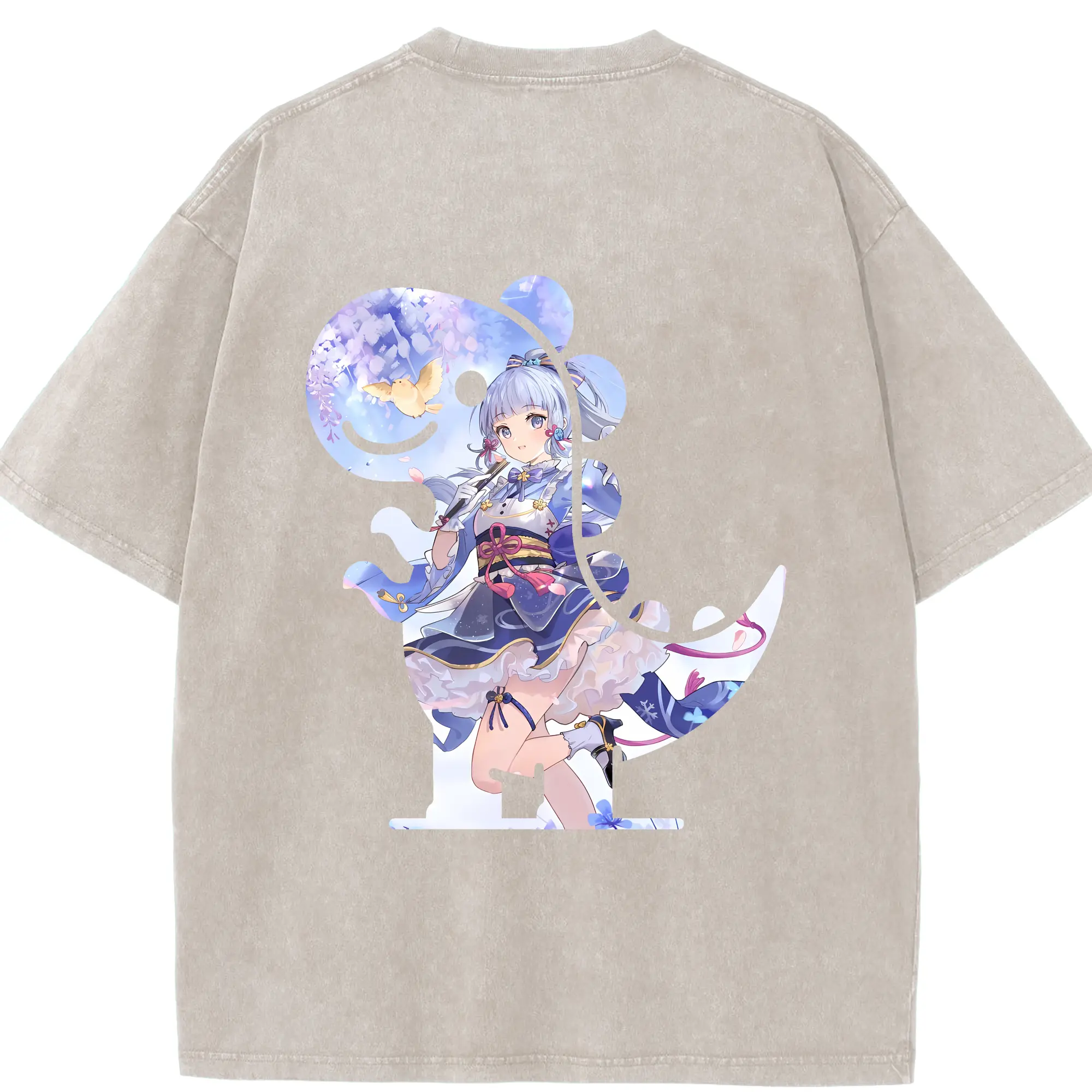原 神 グッズ 神里綾華 - 綿100% ヴィンテージ風 半袖Tシャツ ・ フロントプリント ・ 柔らか肌触り ・ 通気性 快適 ・ スポーツ カジュアル 外出用
