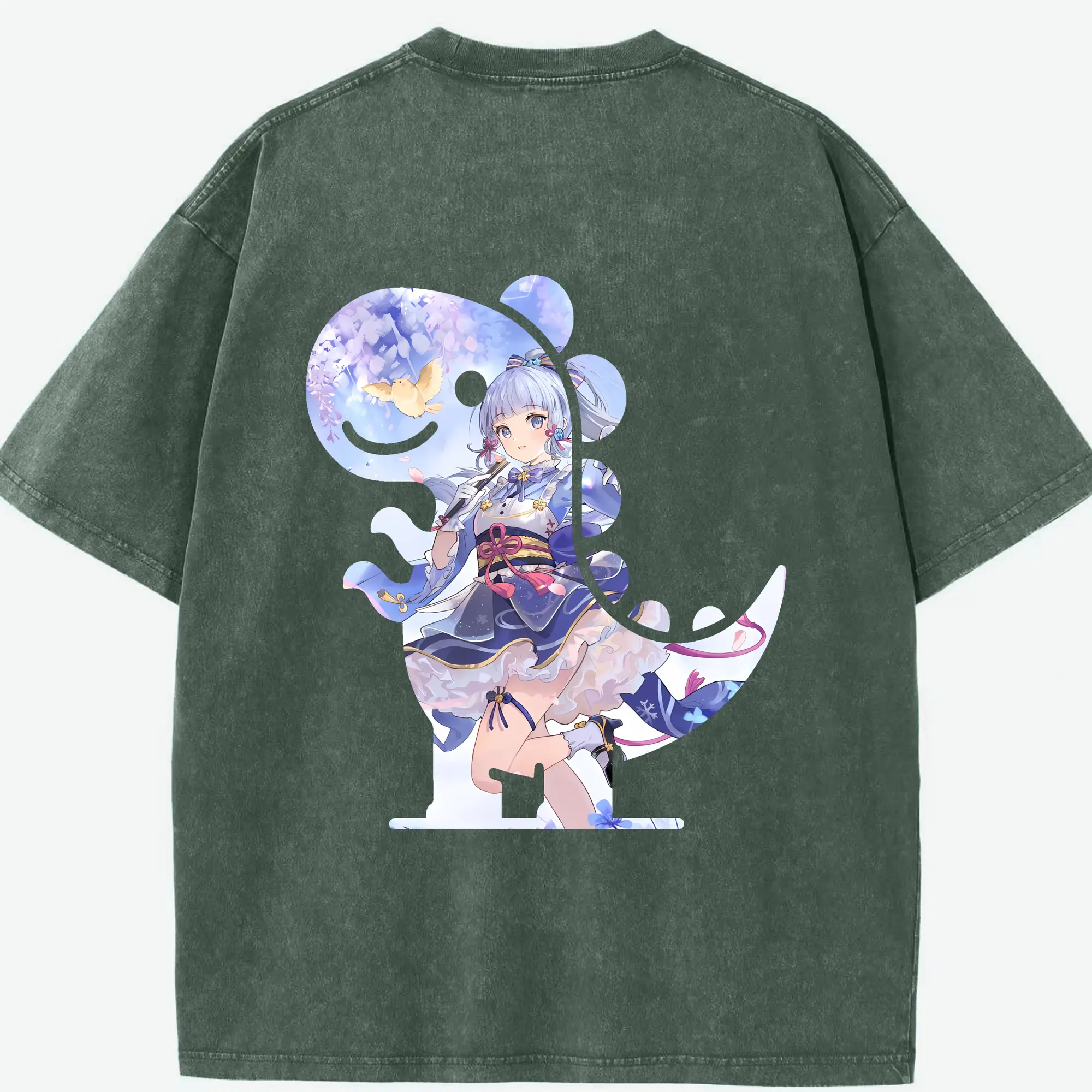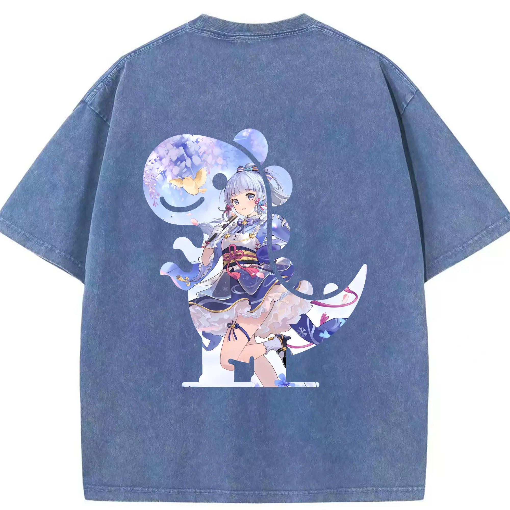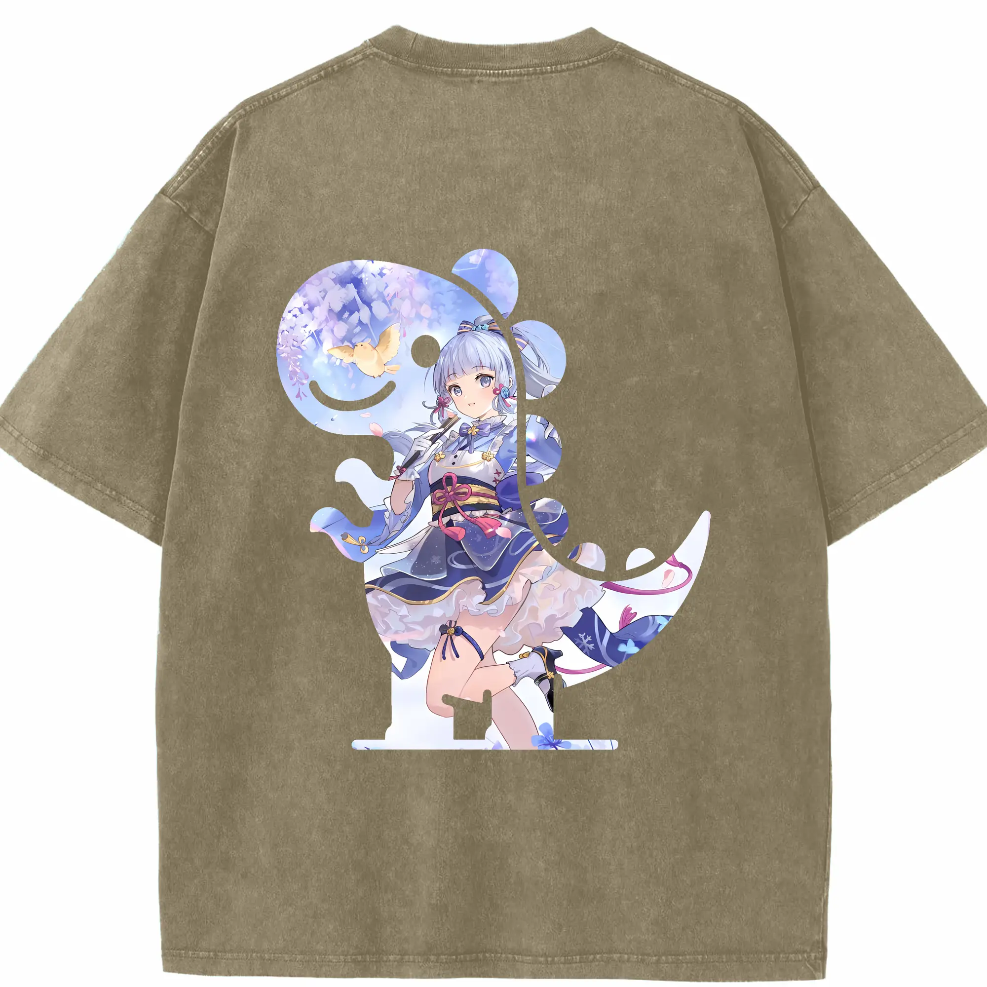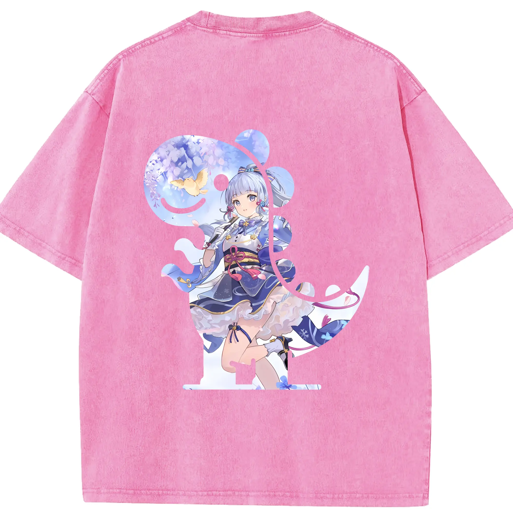 原 神 グッズ 神里綾華 - 綿100% ヴィンテージ風 半袖Tシャツ ・ フロントプリント ・ 柔らか肌触り ・ 通気性 快適 ・ スポーツ カジュアル 外出用
