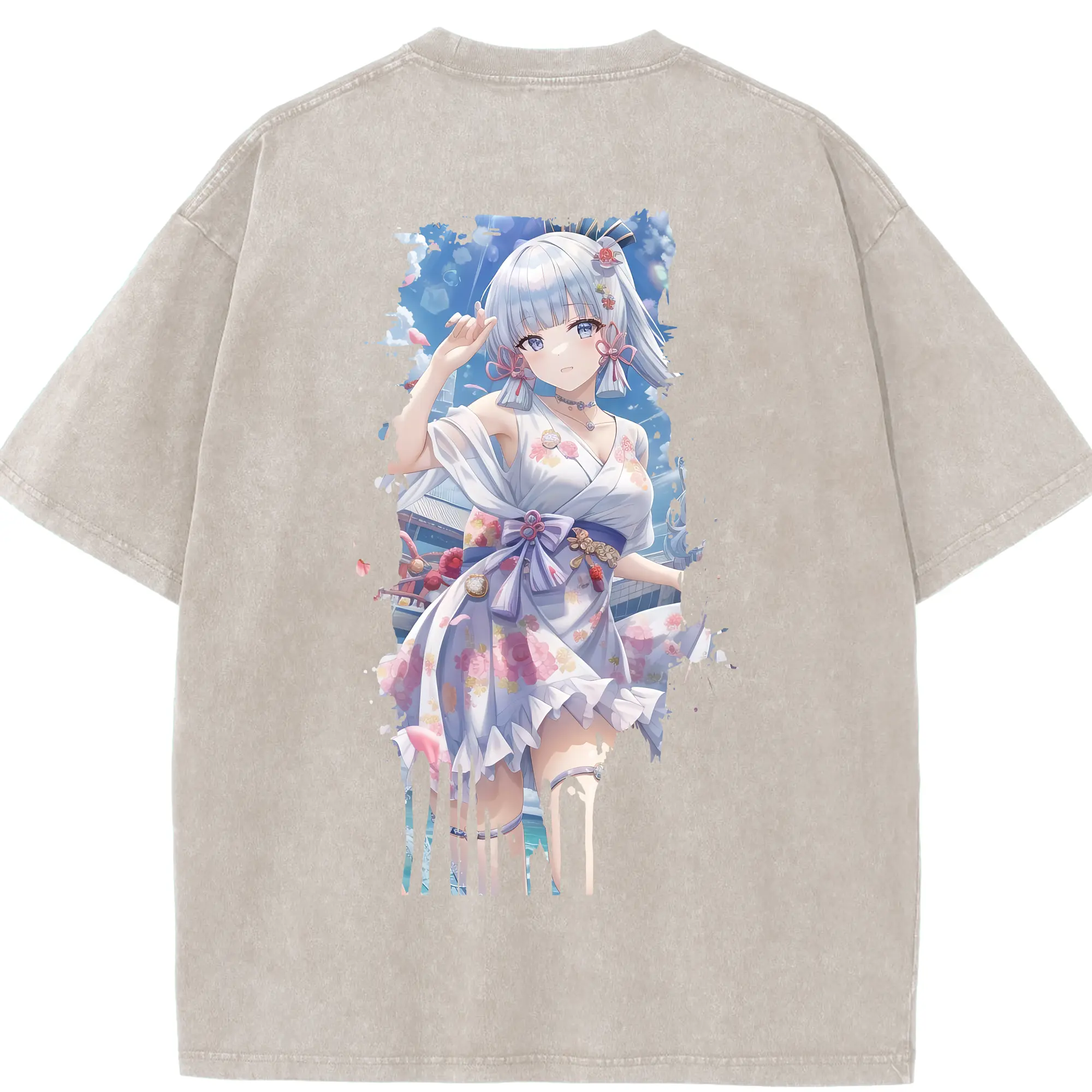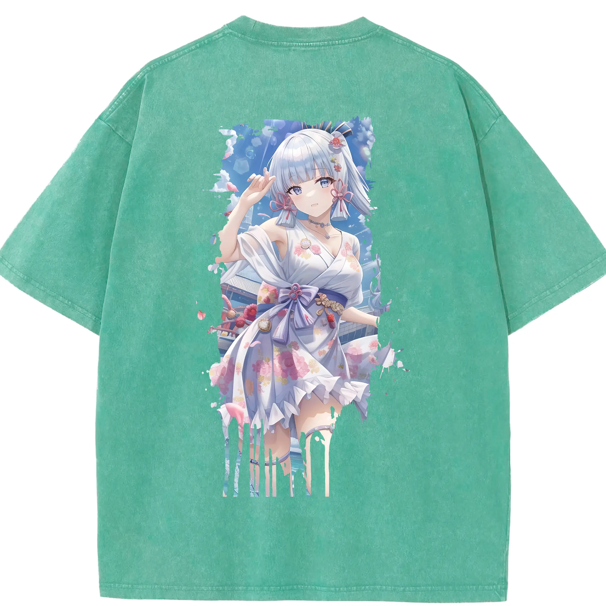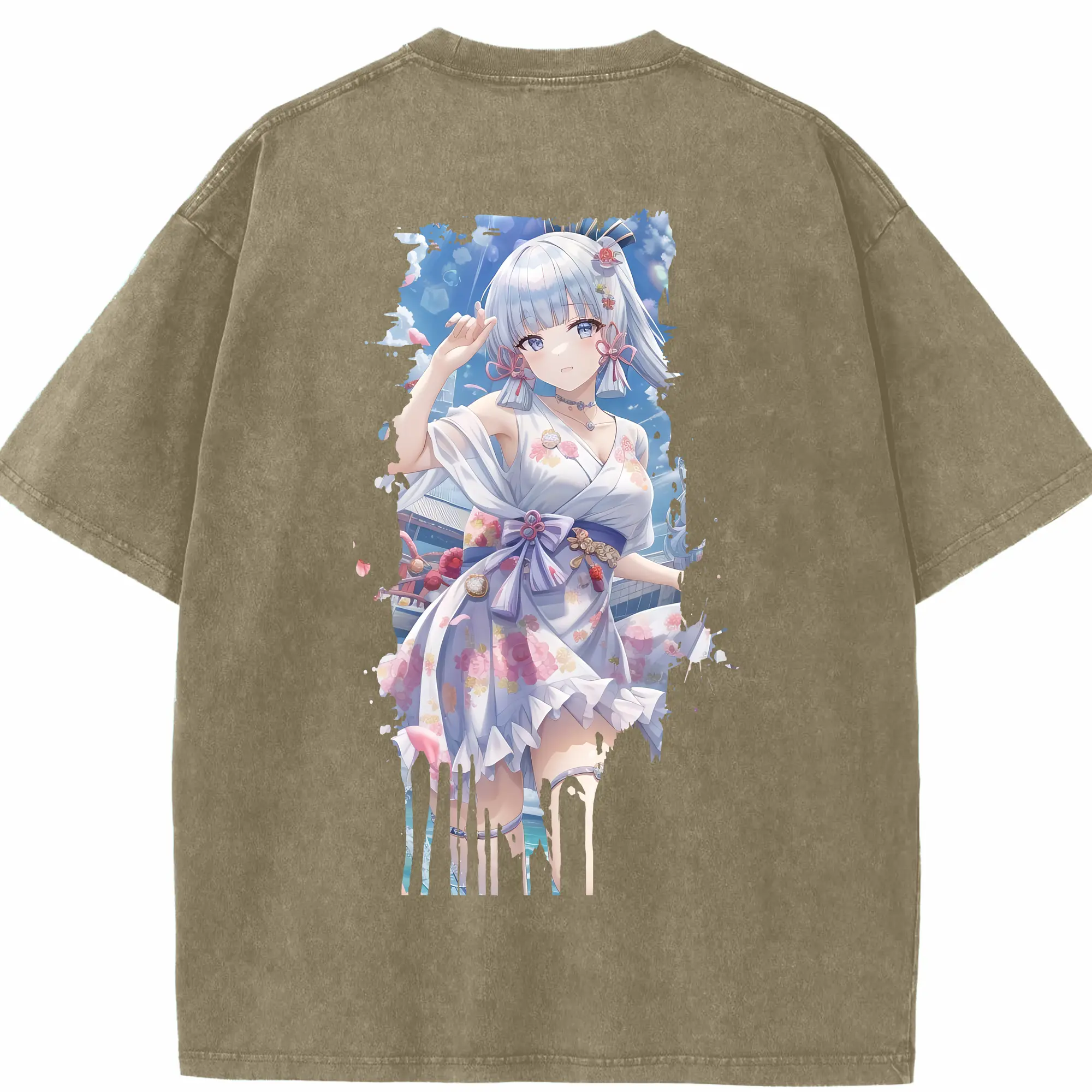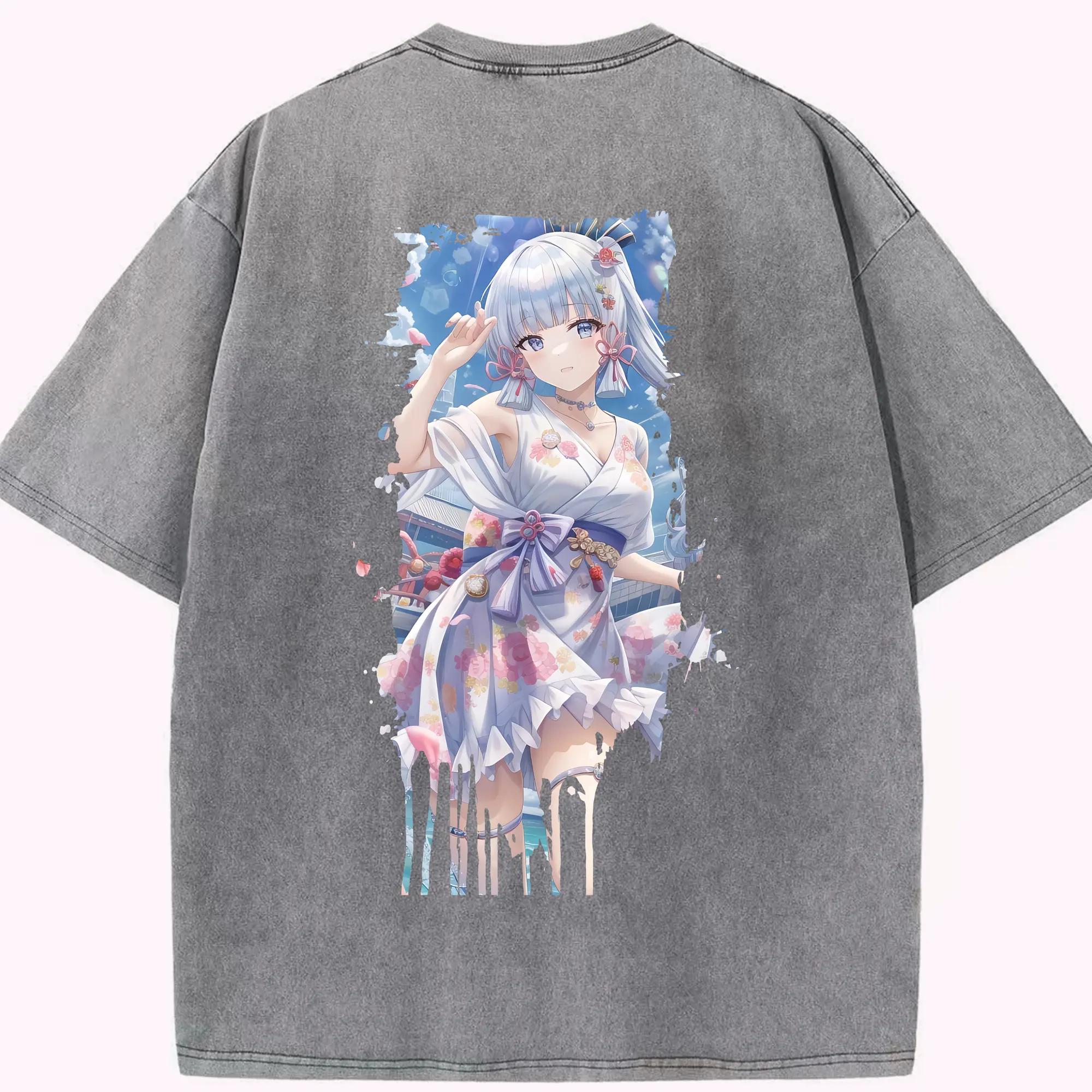 原 神 グッズ 神里綾華 - 綿100% ヴィンテージ風 半袖Tシャツ ・ フロントプリント ・ 柔らか肌触り ・ 通気性 快適 ・ スポーツ カジュアル 外出用