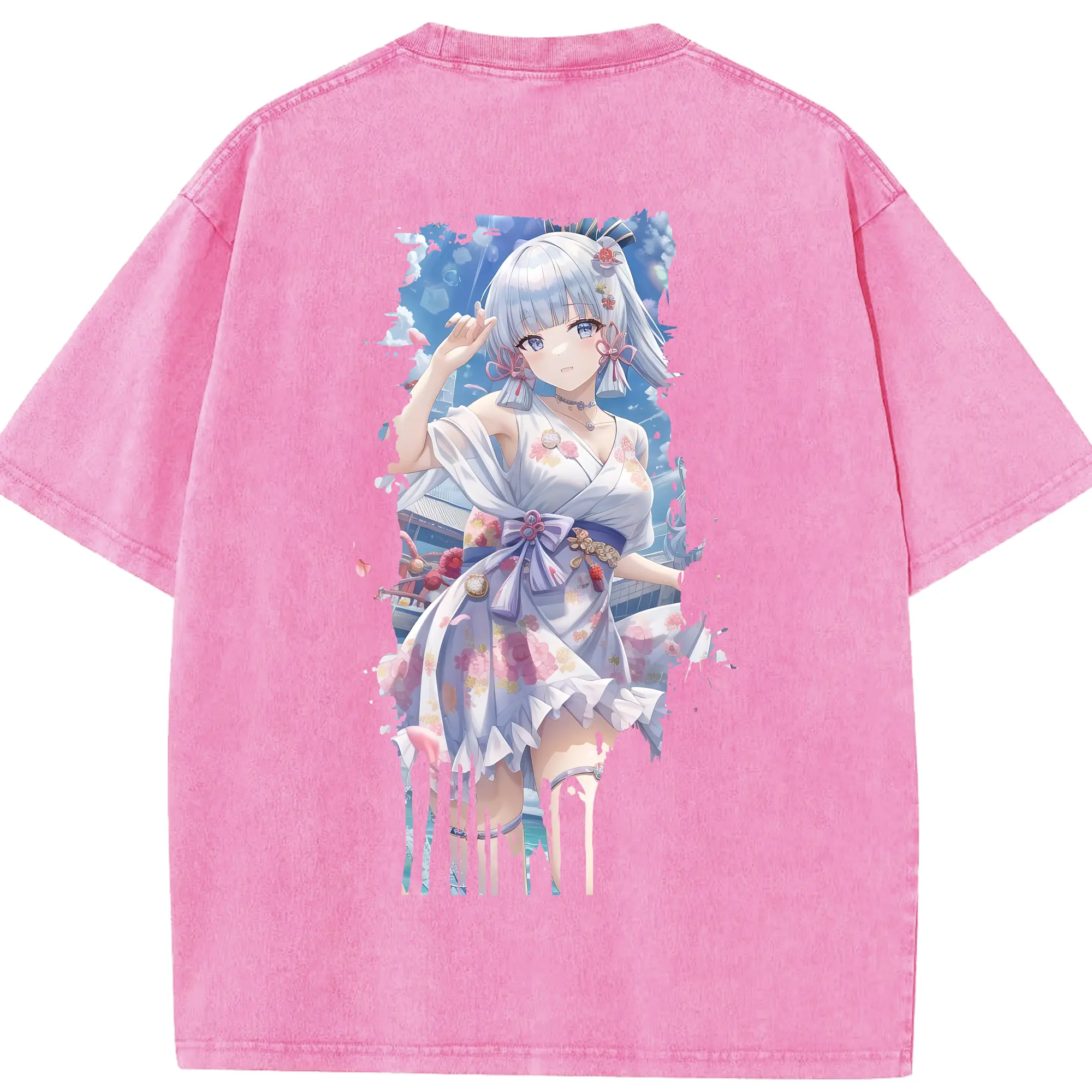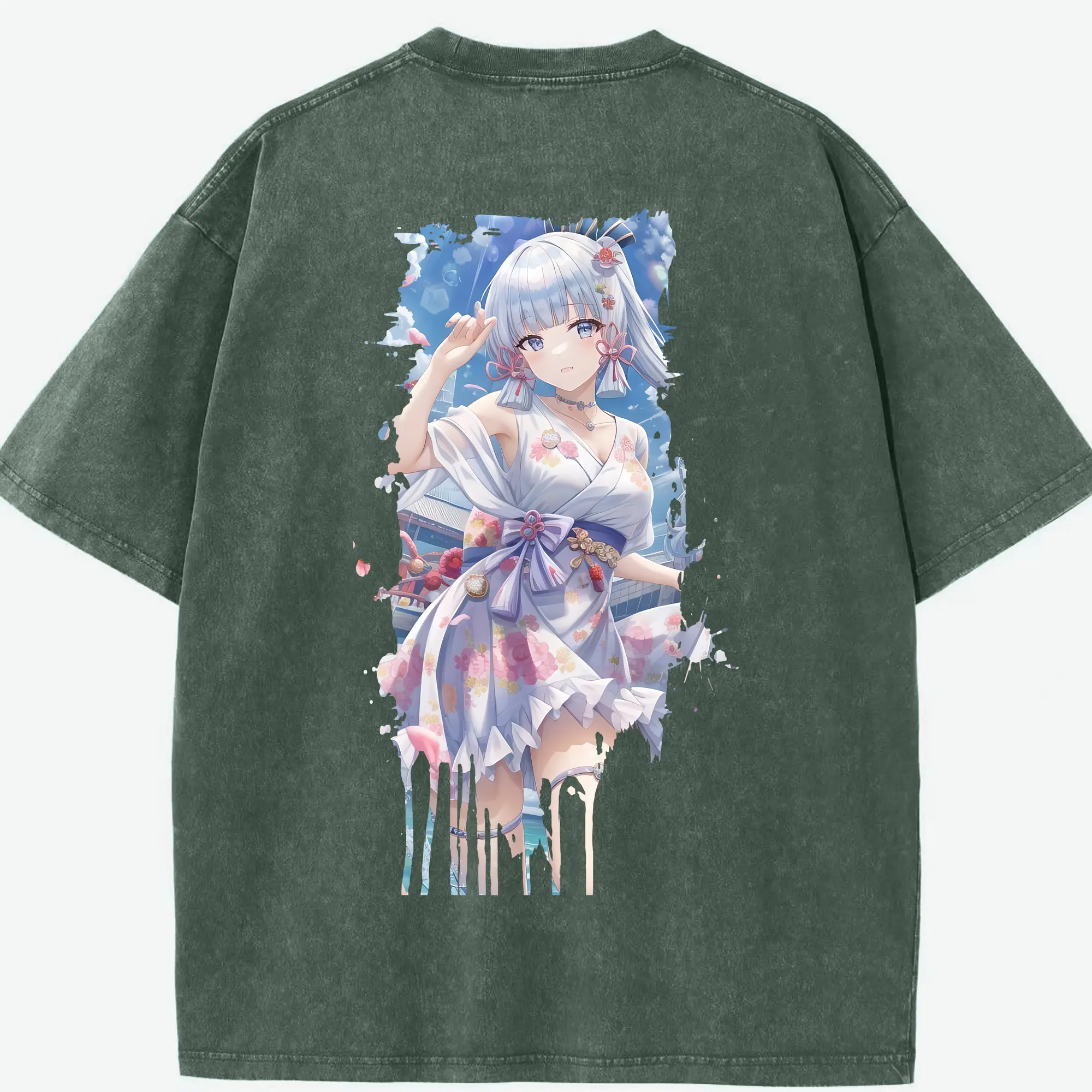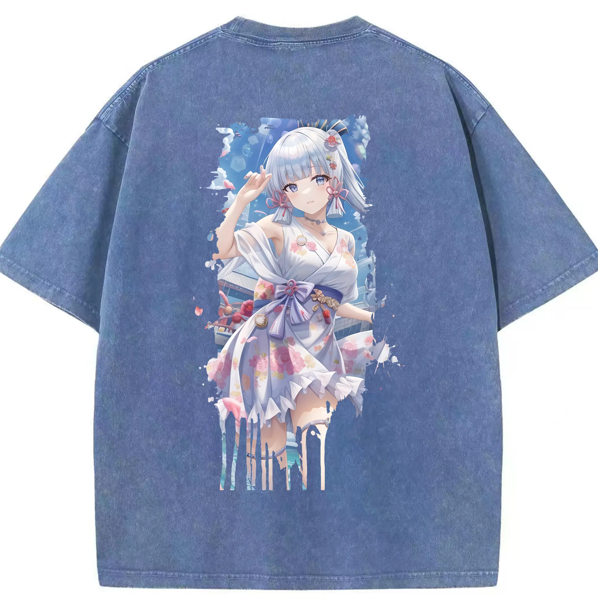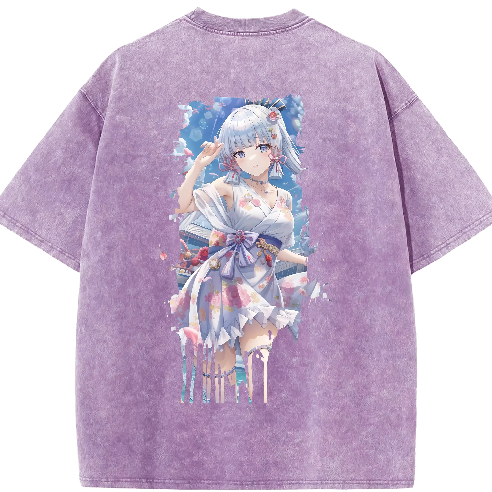 原 神 グッズ 神里綾華 - 綿100% ヴィンテージ風 半袖Tシャツ ・ フロントプリント ・ 柔らか肌触り ・ 通気性 快適 ・ スポーツ カジュアル 外出用