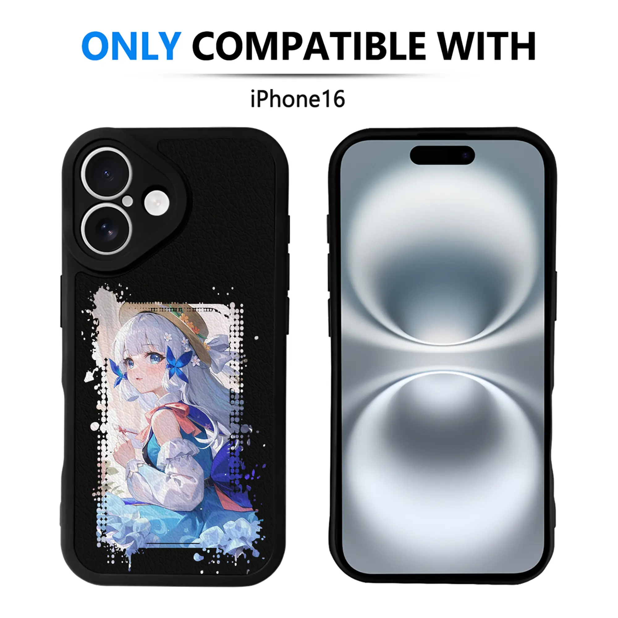 原 神 グッズ 神里綾華 - IPhone 16シリーズ対応 ・ シリコンスマホケース ・ レザー調 ・ 高精度フィット ・ 耐衝撃 ・ ワイヤレス充電対応 ・ 精密カット