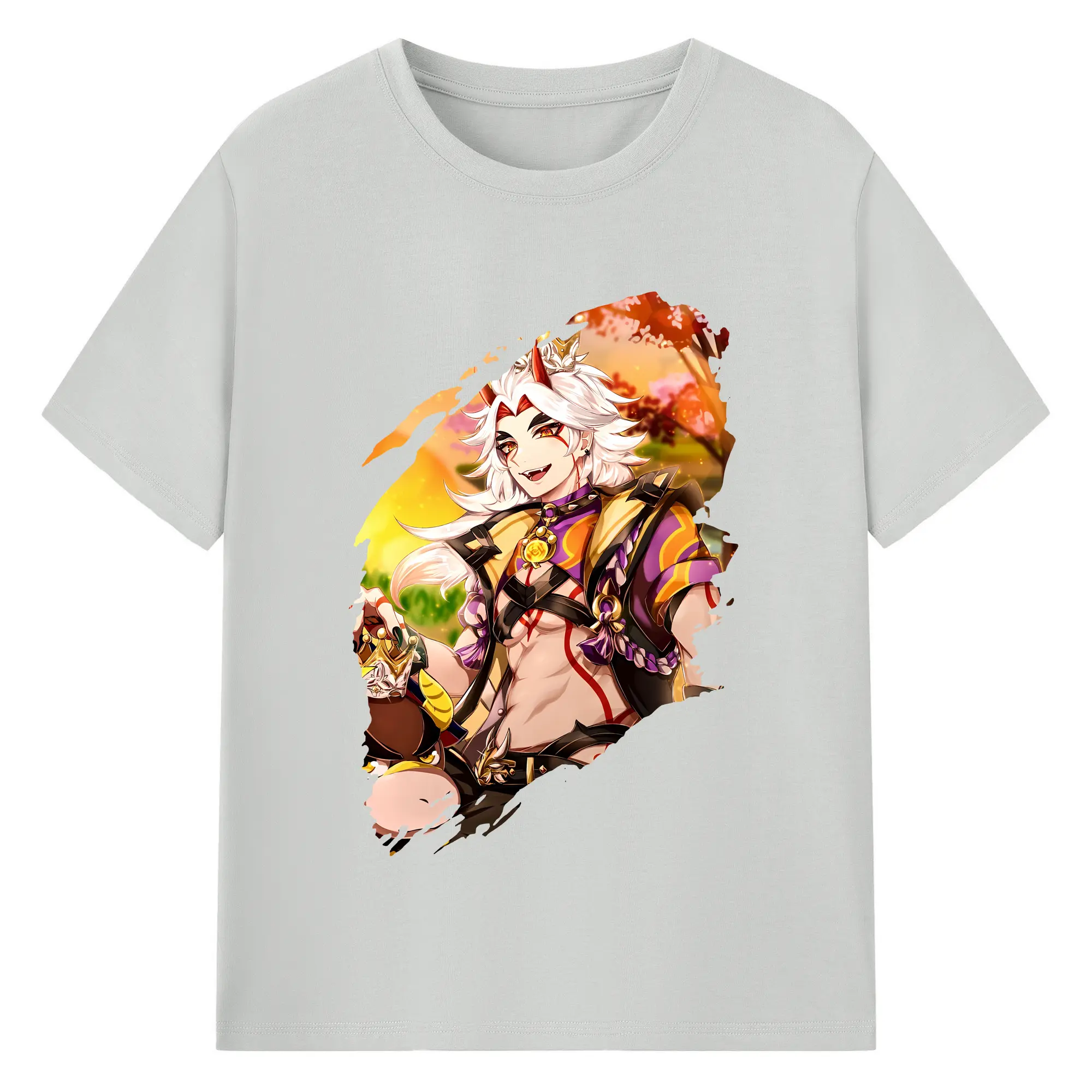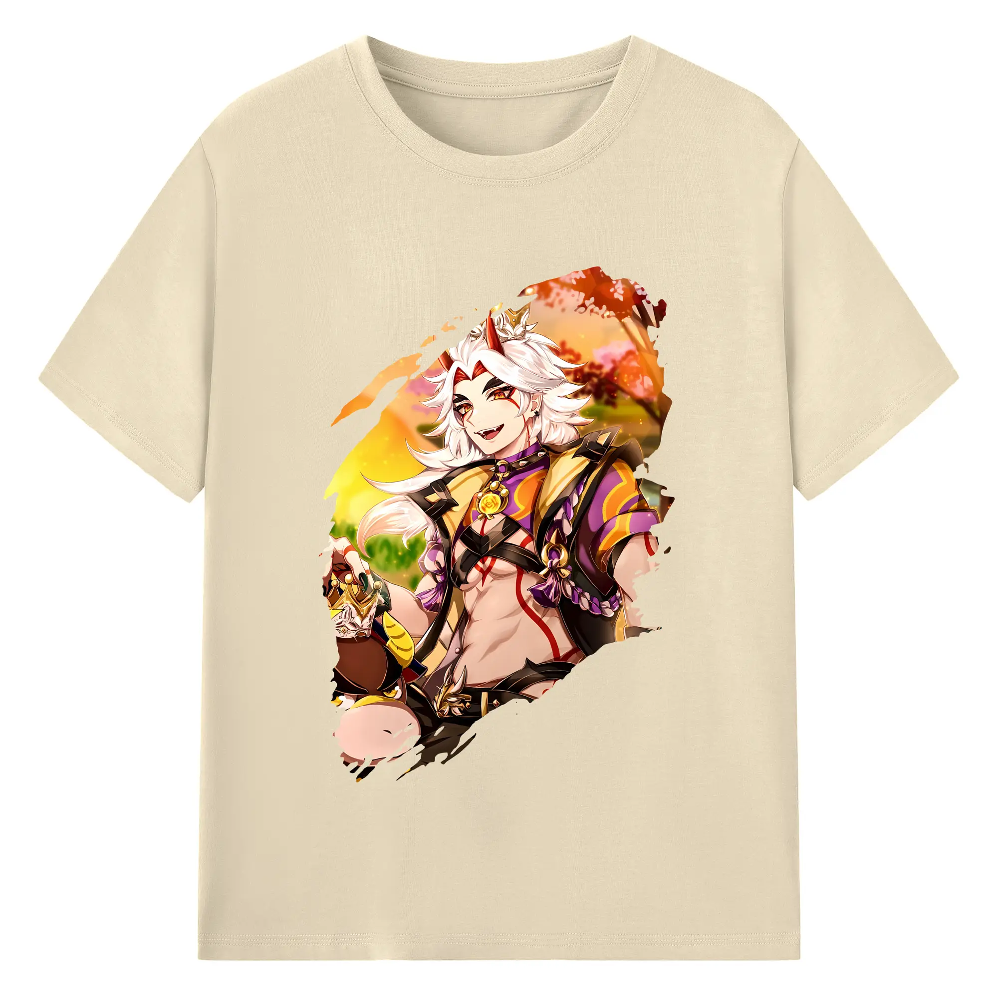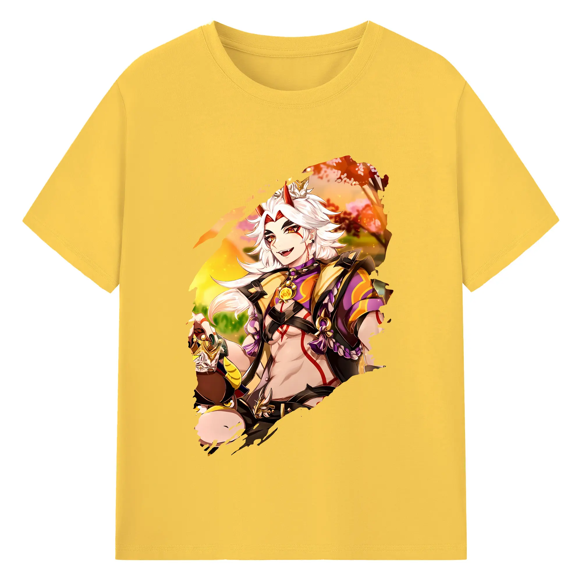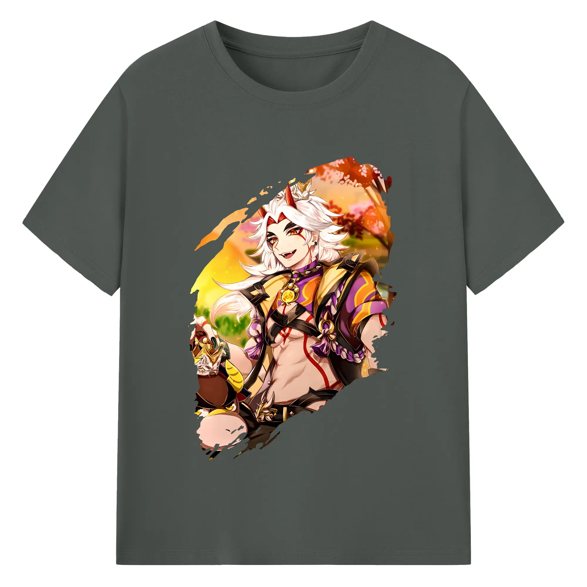 原 神 グッズ 荒瀧 一 斗 - 綿100% ヴィンテージ風 半袖Tシャツ ・ フロントプリント ・ 柔らか肌触り ・ 通気性 快適 ・ スポーツ カジュアル 外出用