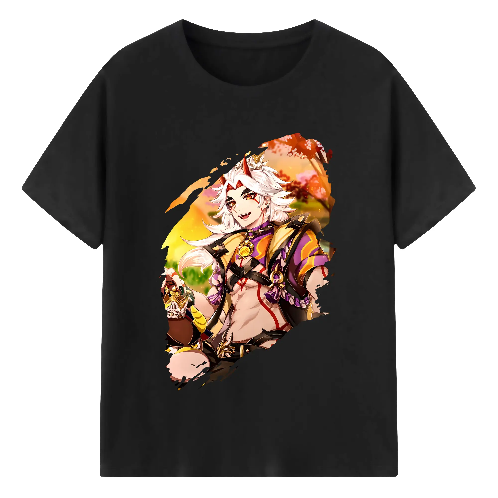 原 神 グッズ 荒瀧 一 斗 - 綿100% 半袖Tシャツ ・ バックプリント ・ 快適 通気性 ・ 日常使い 散歩 スポーツ用