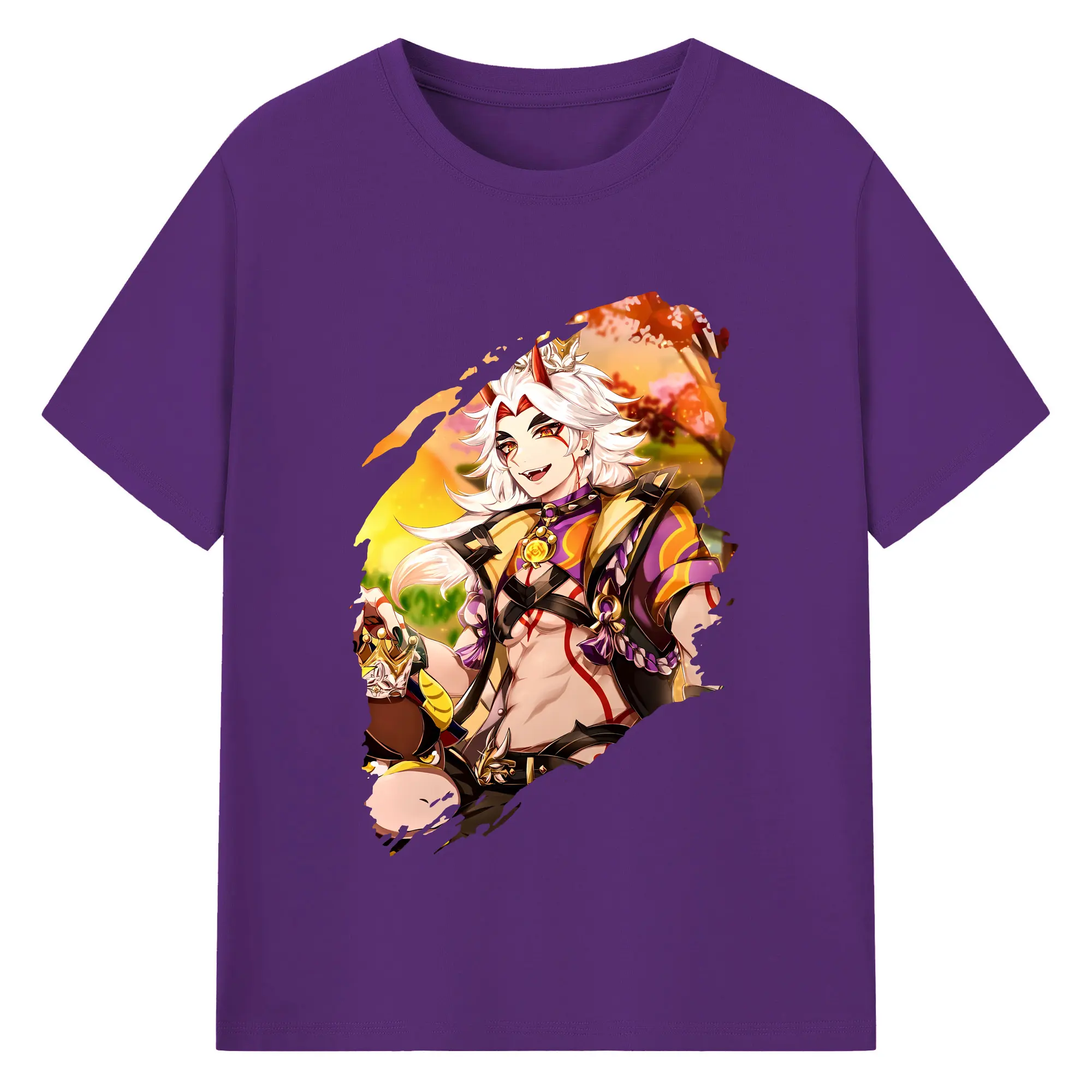 原 神 グッズ 雷電将軍 - 綿100% 半袖Tシャツ ・ フロントプリント ・ 快適 通気性 ・ 日常使い 散歩 スポーツ用