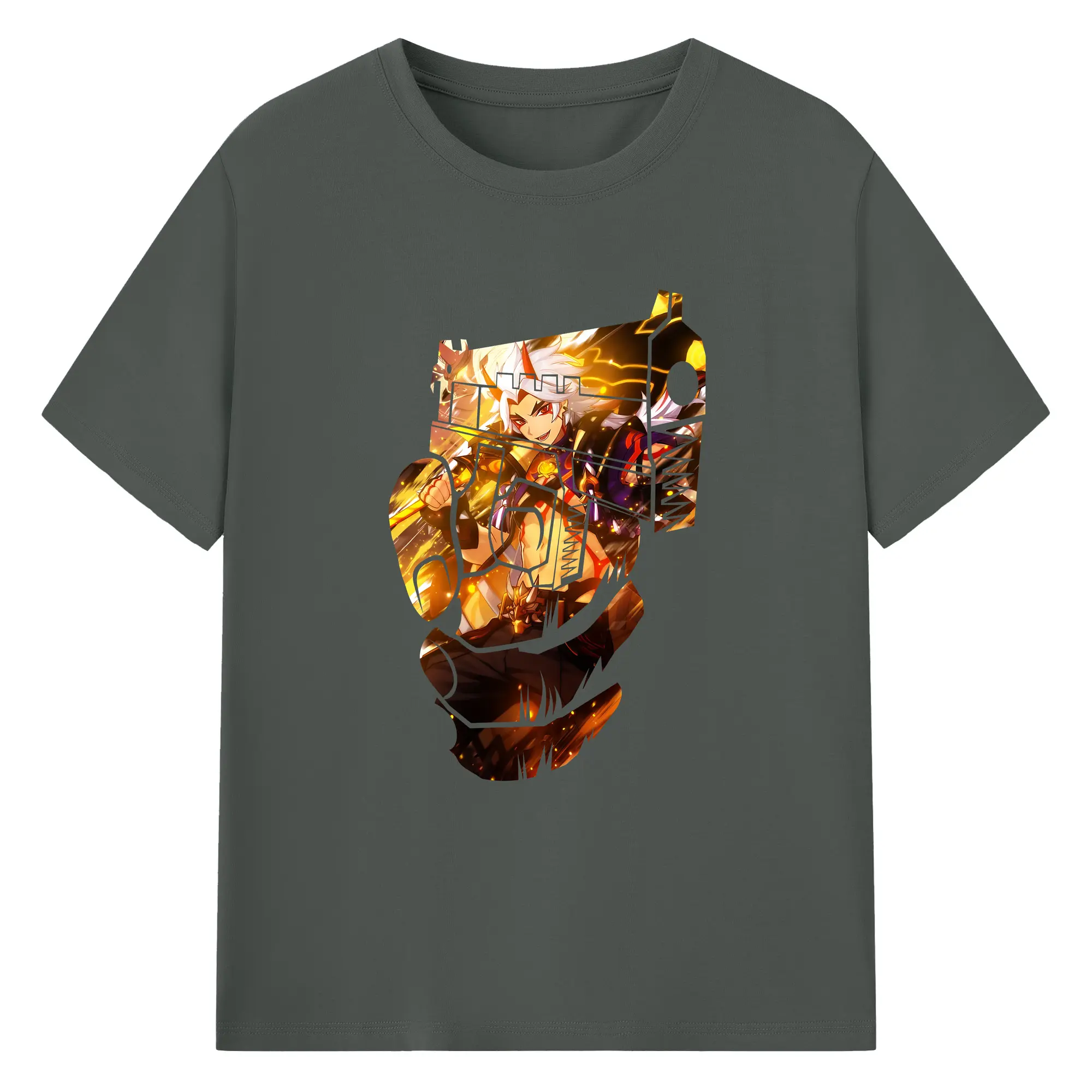 原 神 グッズ 荒瀧 一 斗 - 綿100% ヴィンテージ風 半袖Tシャツ ・ フロントプリント ・ 柔らか肌触り ・ 通気性 快適 ・ スポーツ カジュアル 外出用