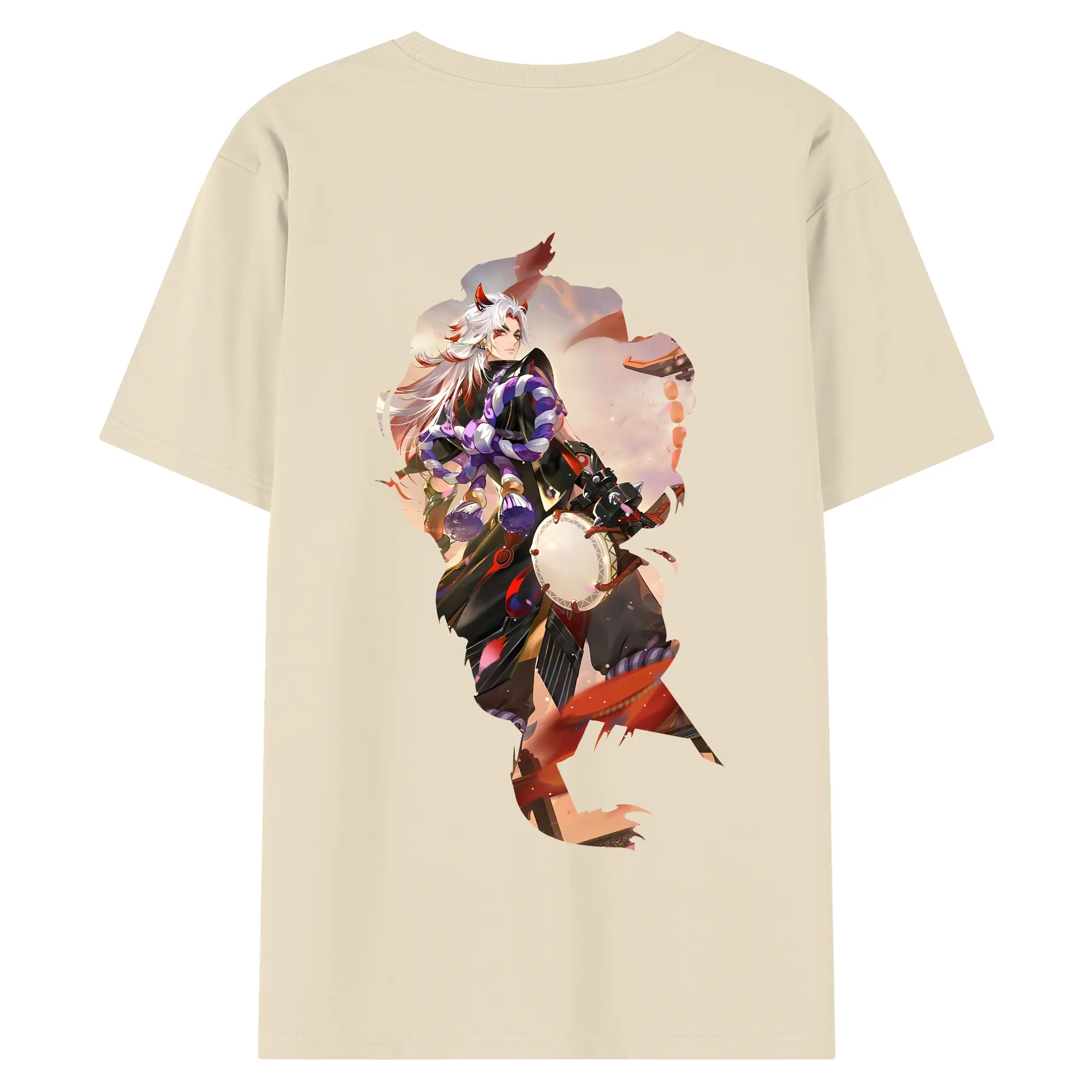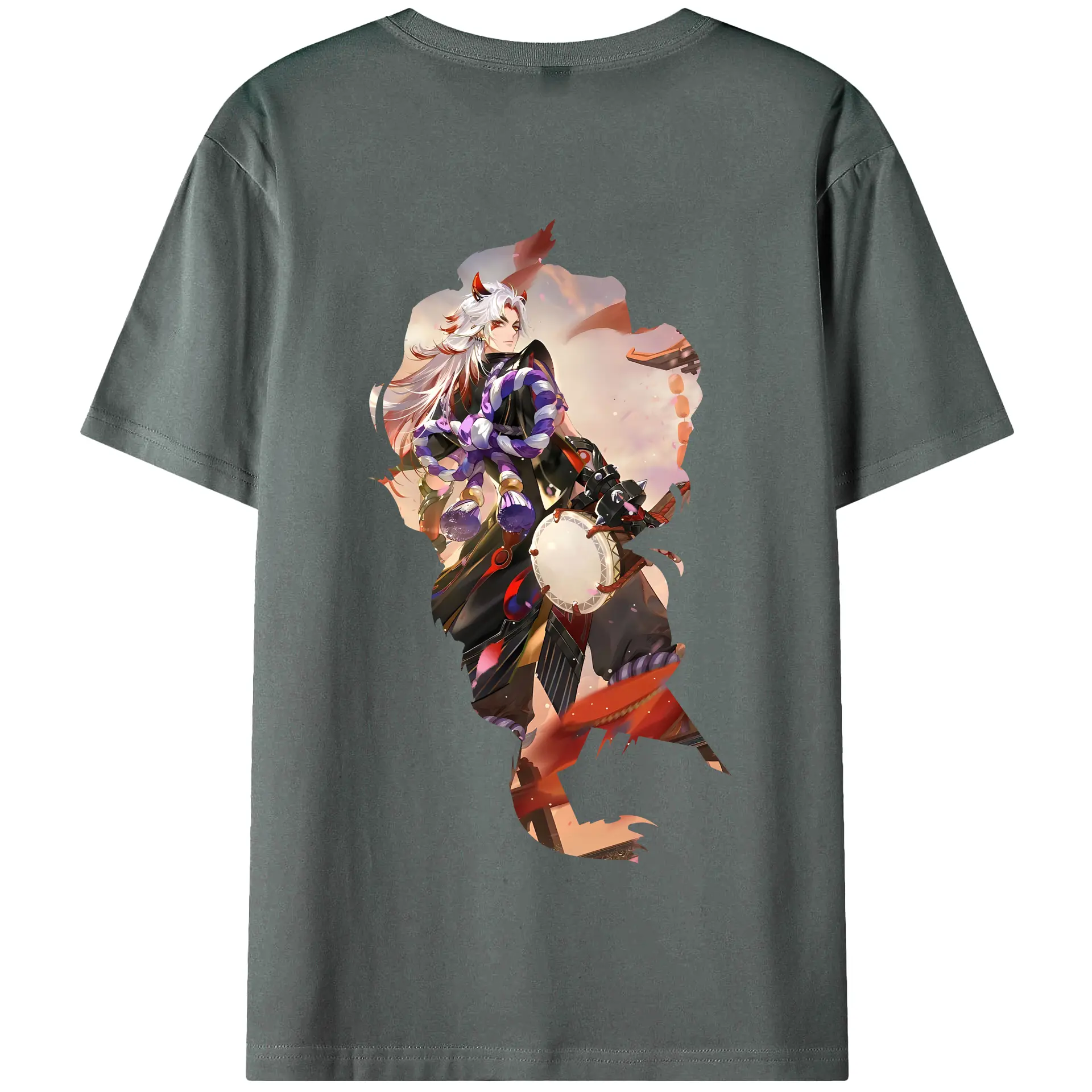 原 神 グッズ 荒瀧 一 斗 - 綿100% ヴィンテージ風 半袖Tシャツ ・ 背面プリント ・ 柔らか肌触り ・ 通気性 快適 ・ スポーツ カジュアル 外出用