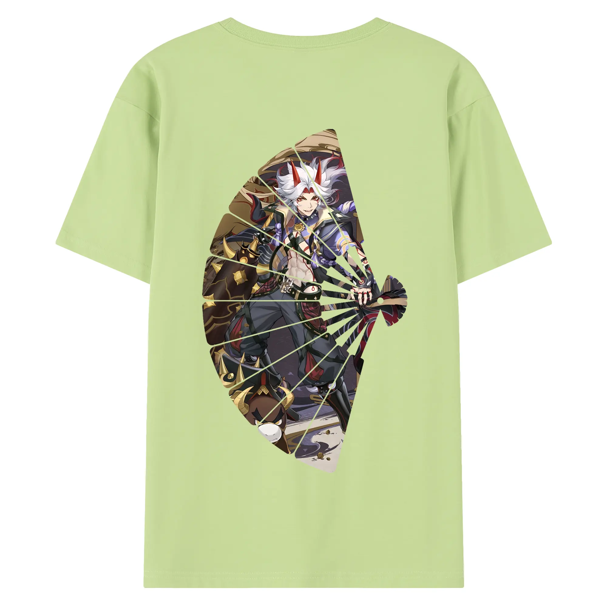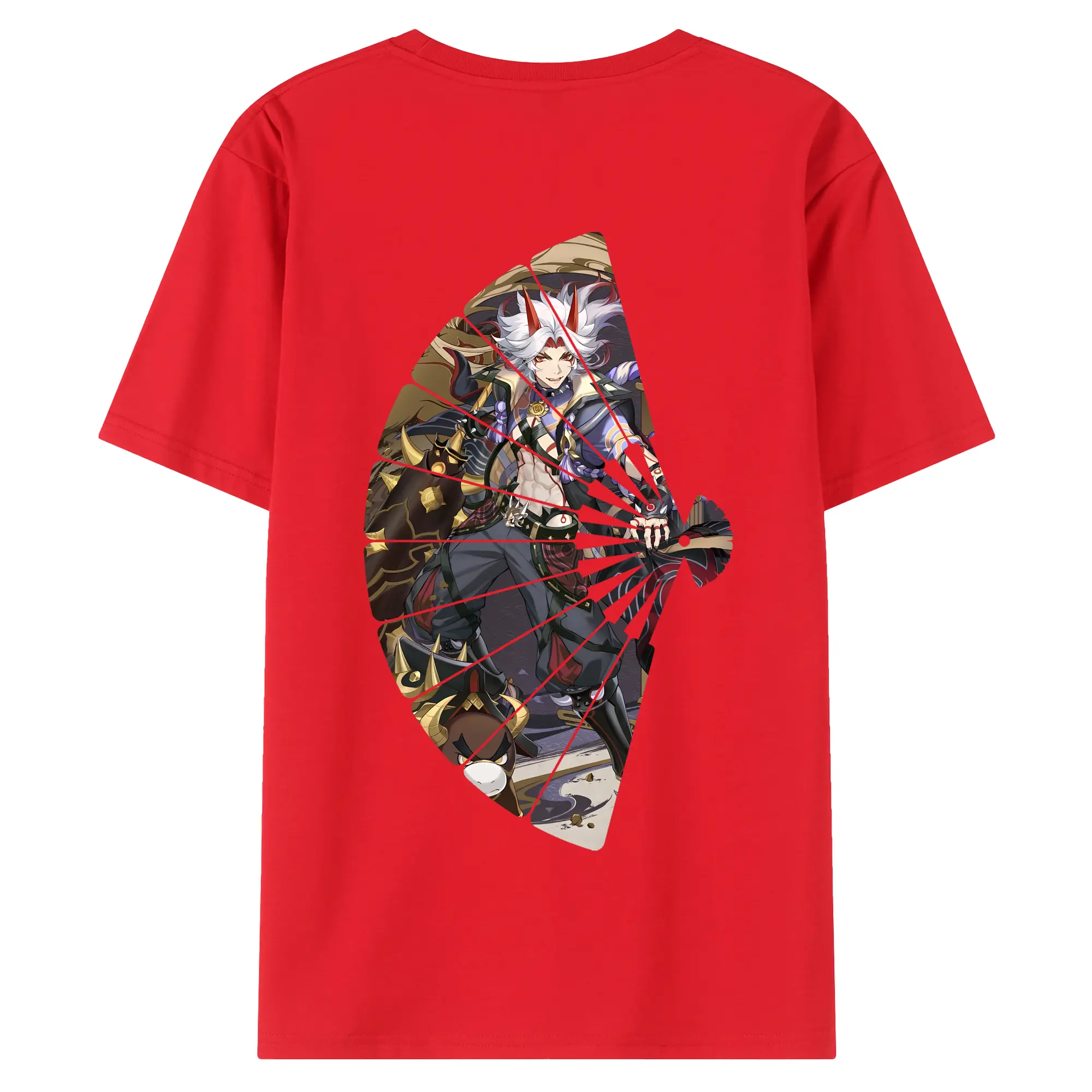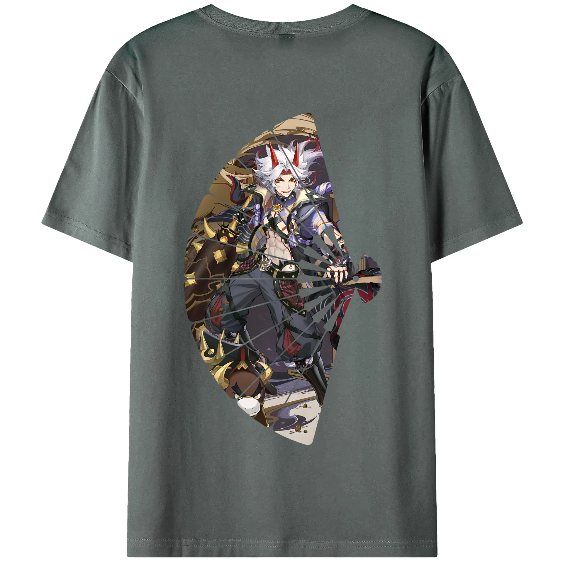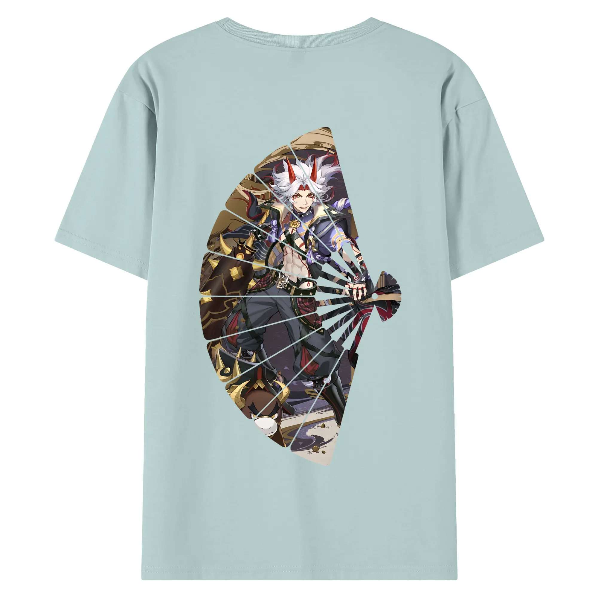 原 神 グッズ 荒瀧 一 斗 - 綿100% 半袖Tシャツ ・ フロントプリント ・ 快適 通気性 ・ 日常使い 散歩 スポーツ用