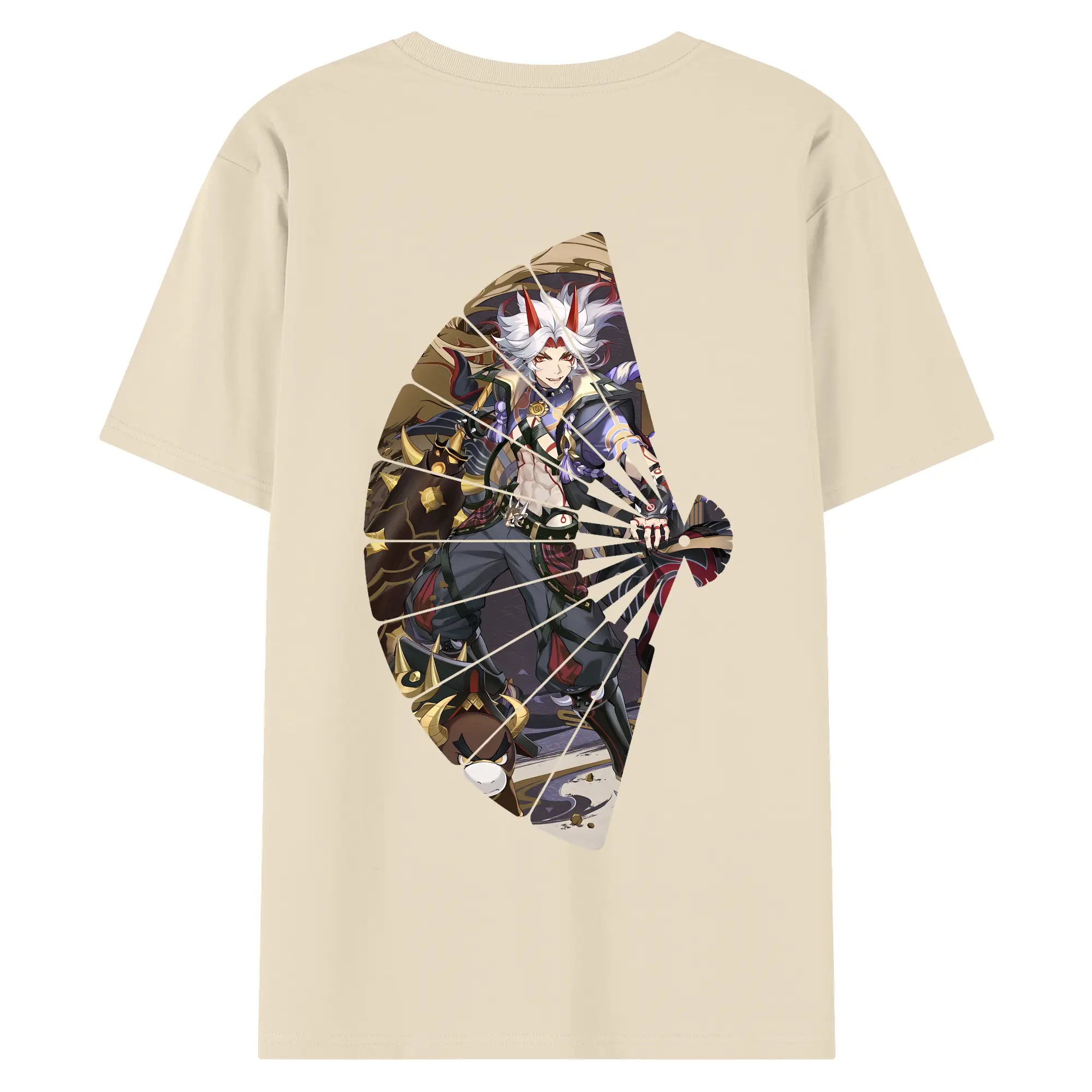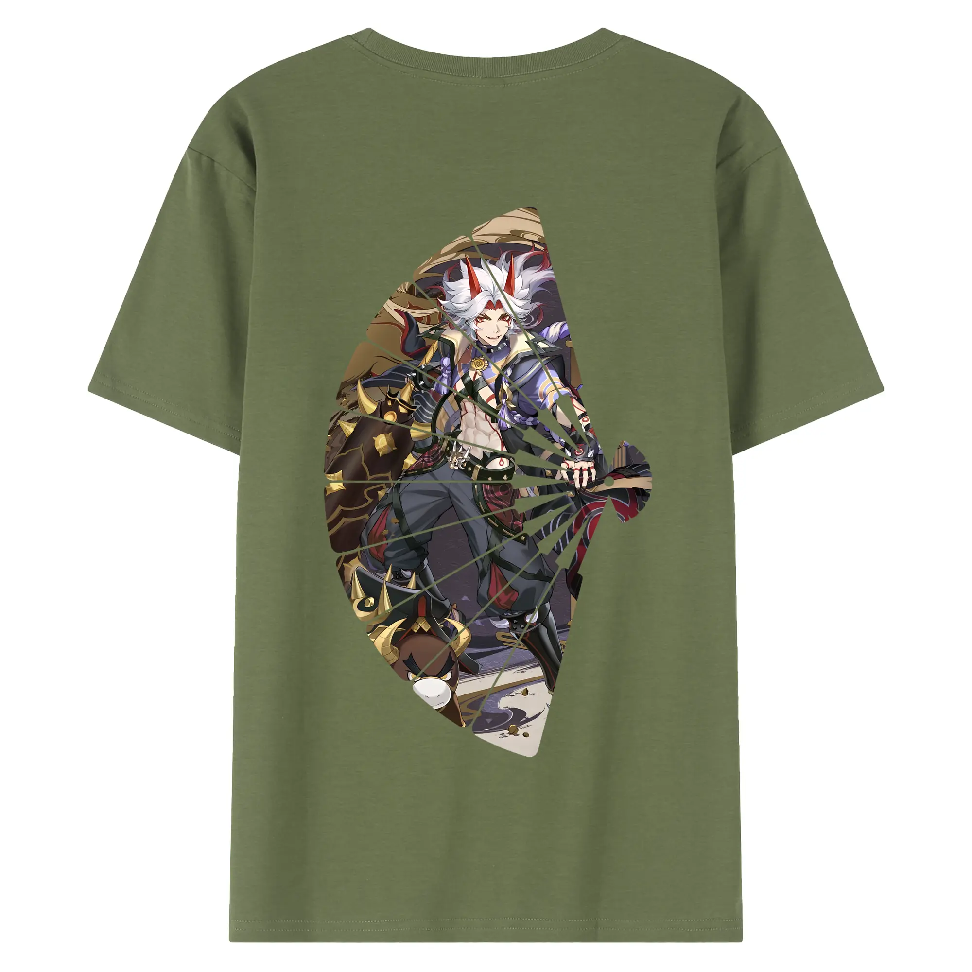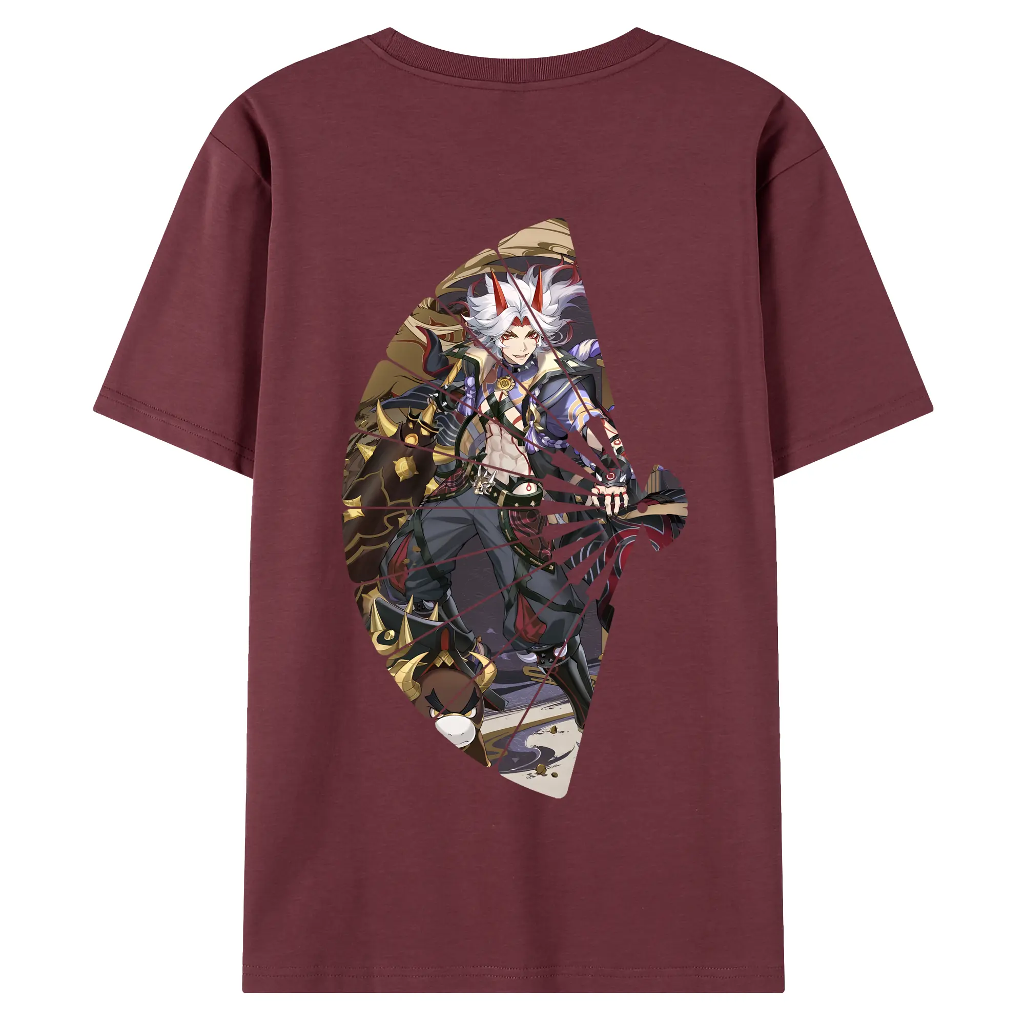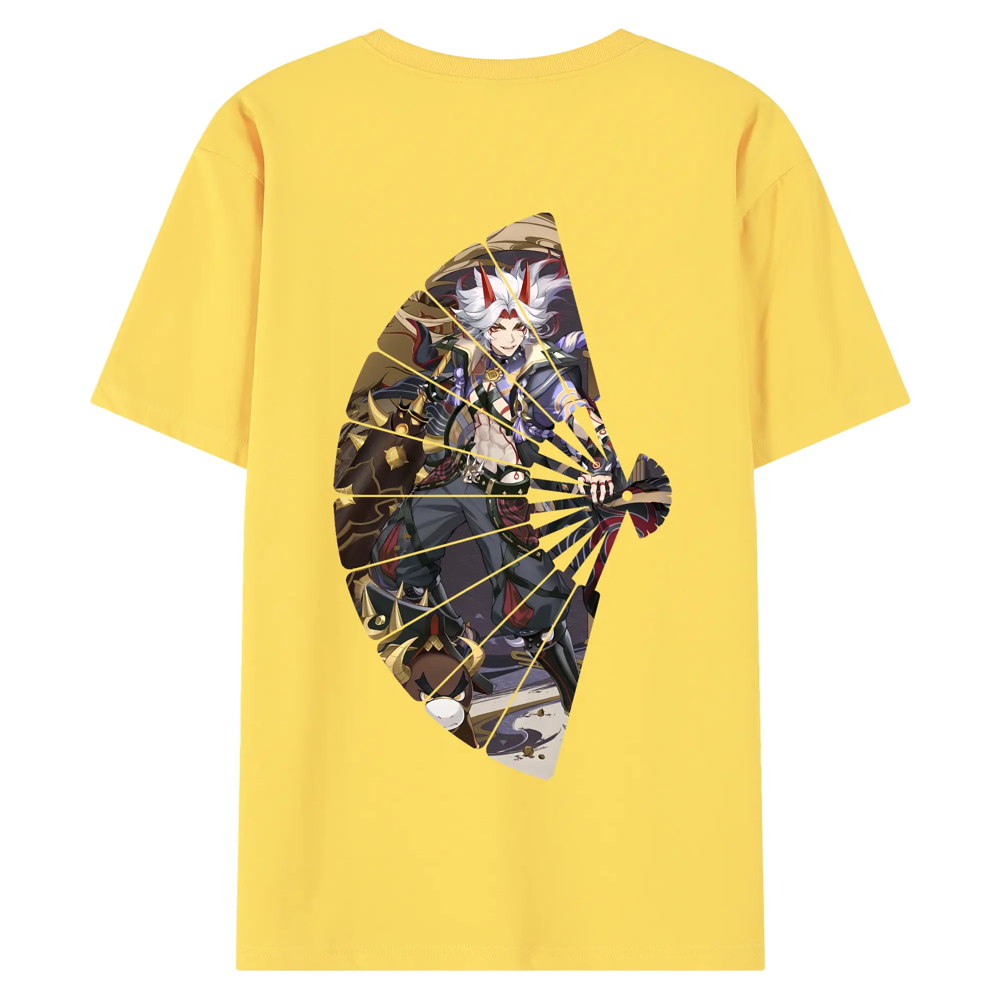 原 神 グッズ 荒瀧 一 斗 - 綿100% 半袖Tシャツ ・ フロントプリント ・ 快適 通気性 ・ 日常使い 散歩 スポーツ用