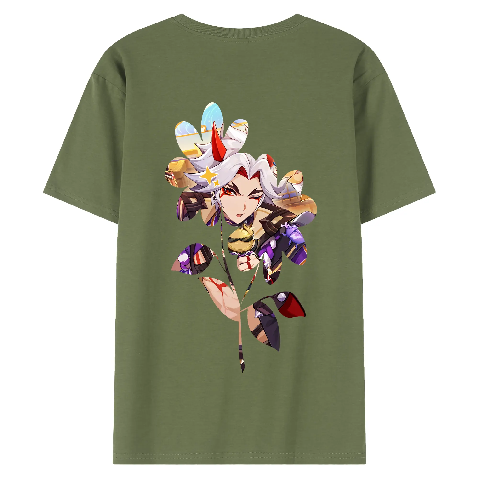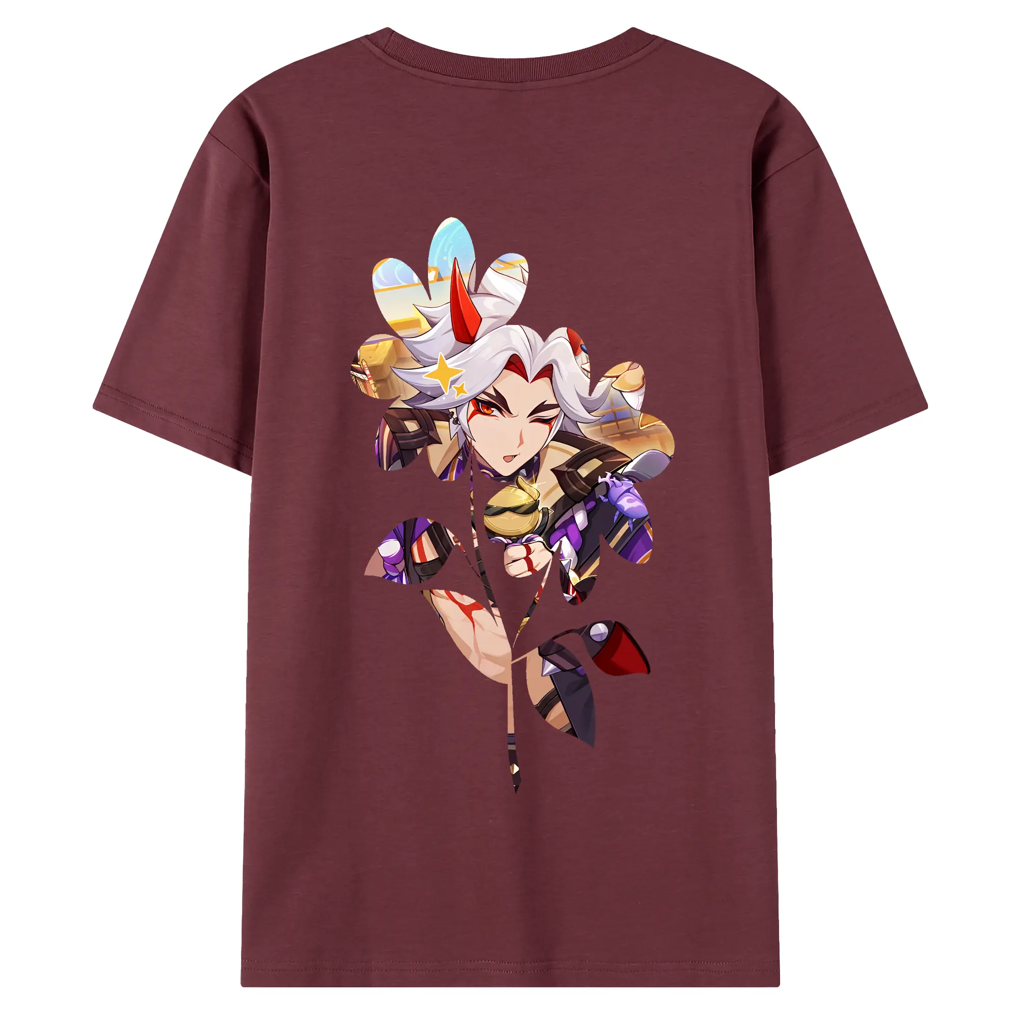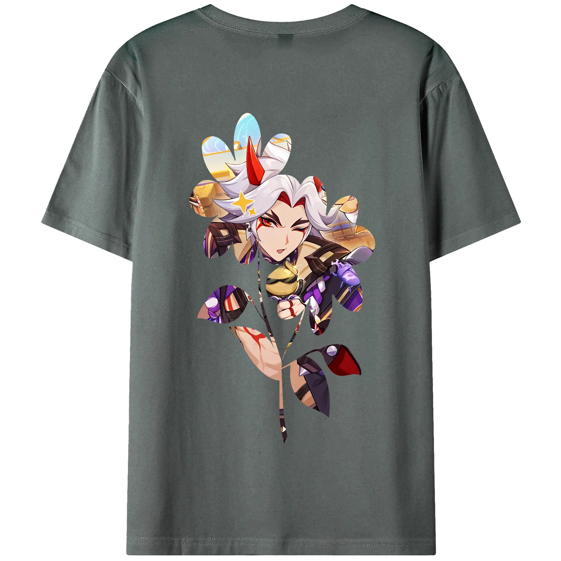 原 神 グッズ 荒瀧 一 斗 - 綿100% 半袖Tシャツ ・ フロントプリント ・ 快適 通気性 ・ 日常使い 散歩 スポーツ用