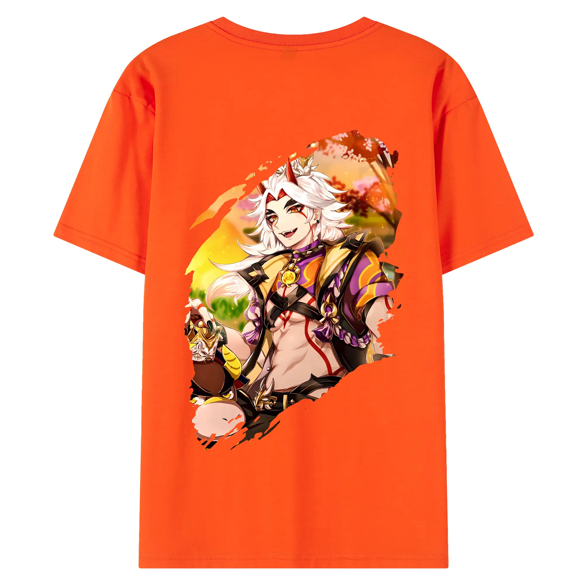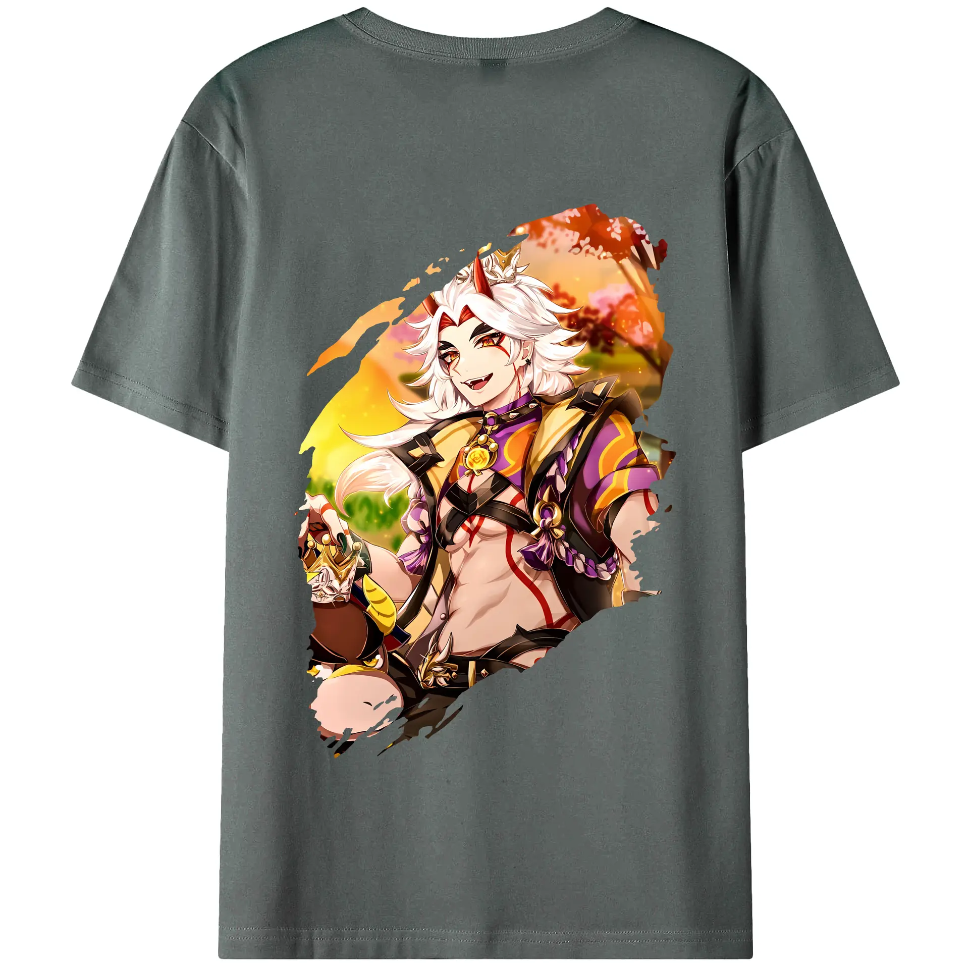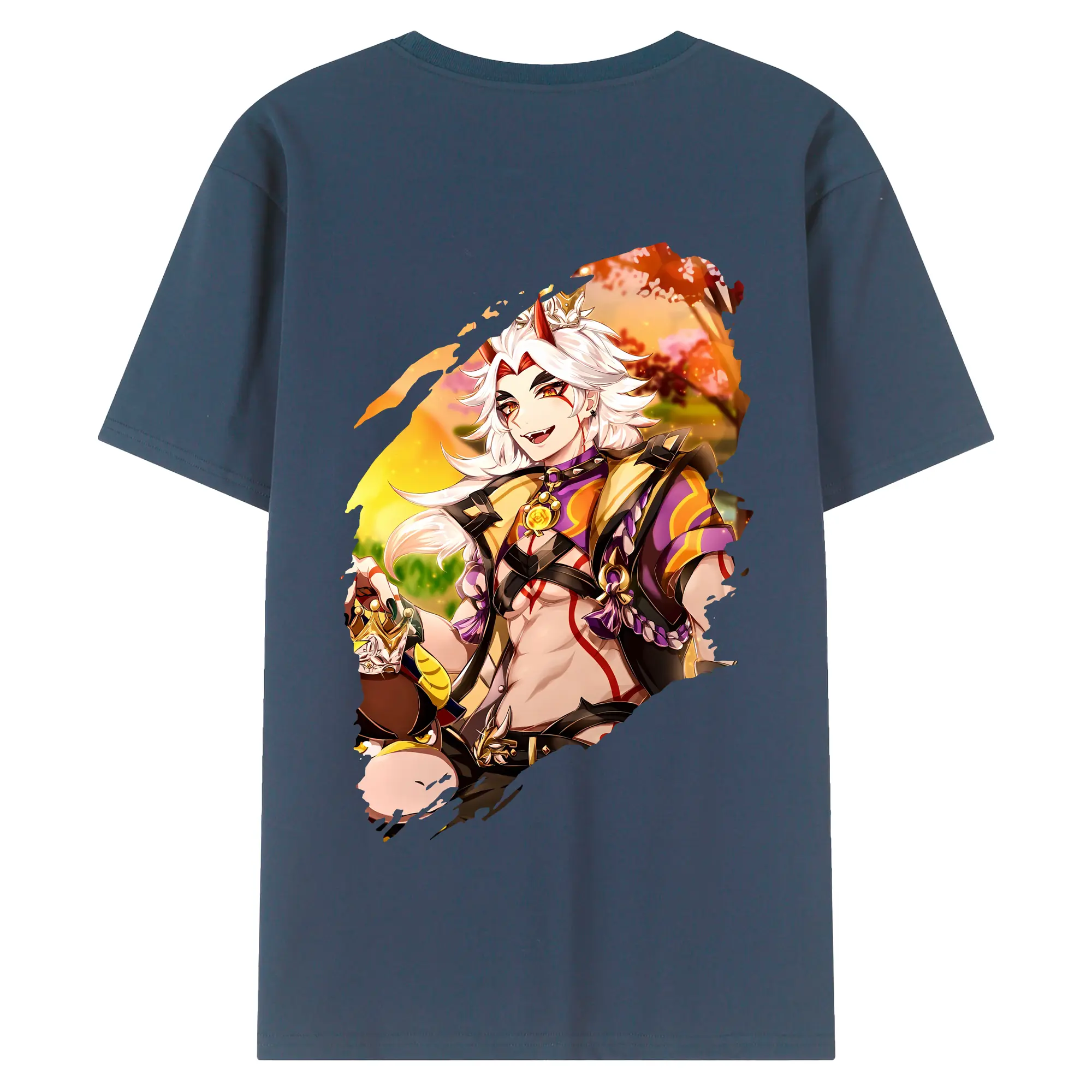原 神 グッズ 荒瀧 一 斗 - 綿100% ヴィンテージ風 半袖Tシャツ ・ 背面プリント ・ 柔らか肌触り ・ 通気性 快適 ・ スポーツ カジュアル 外出用