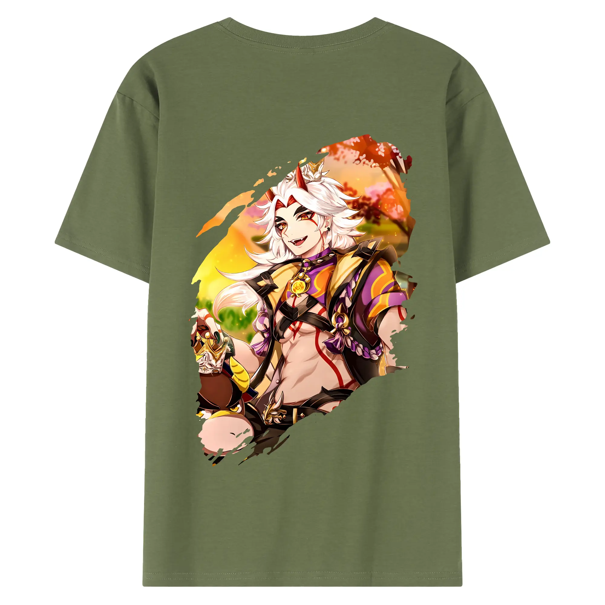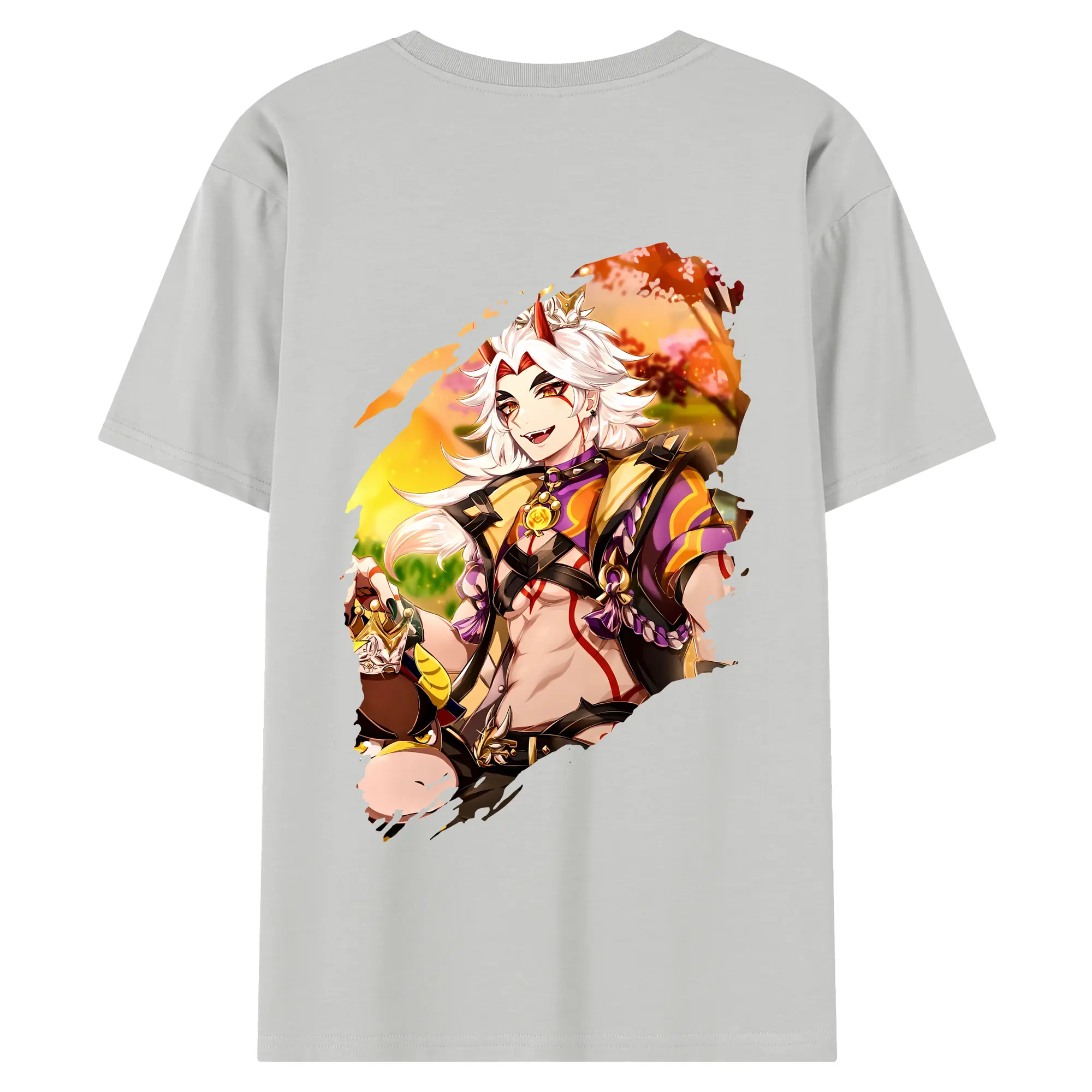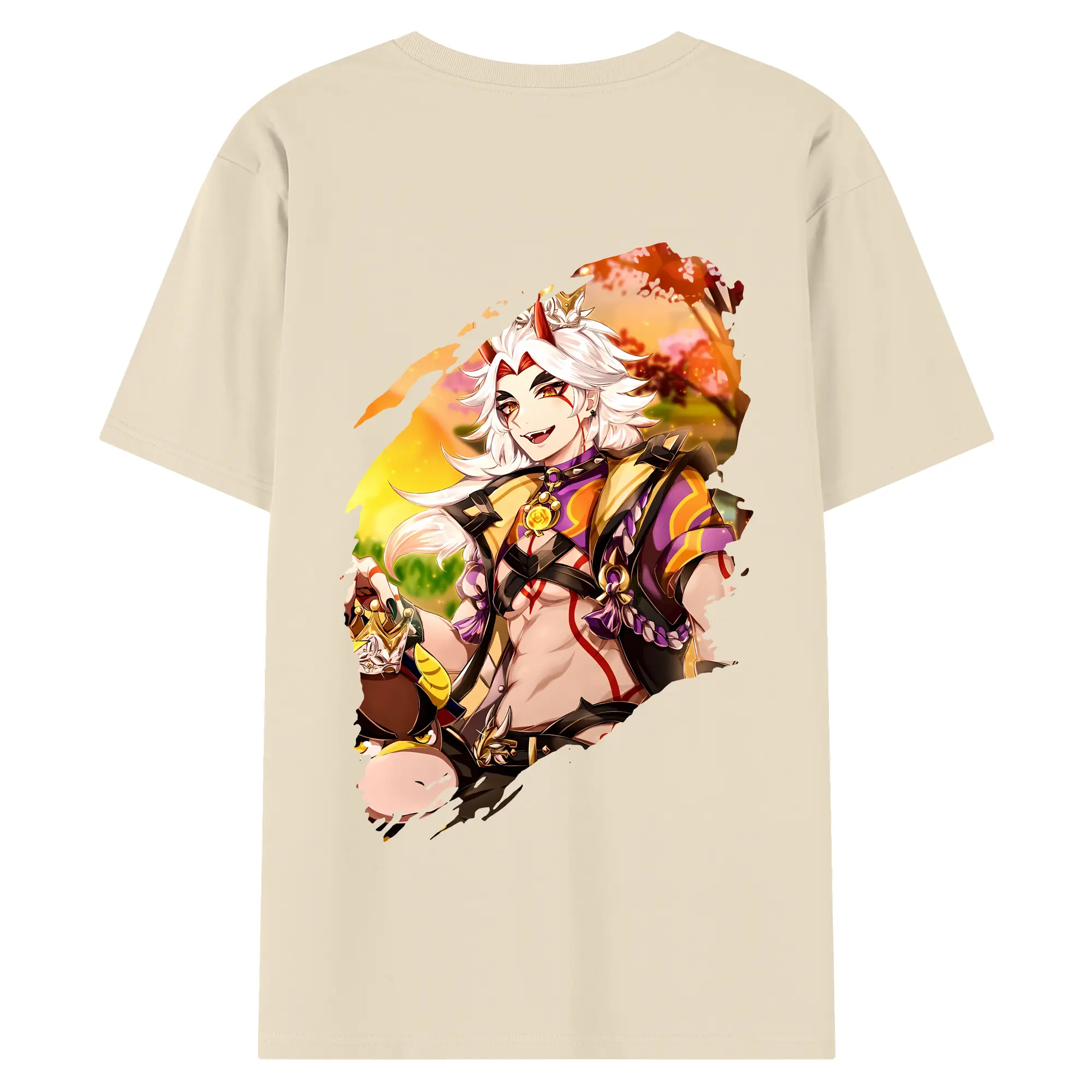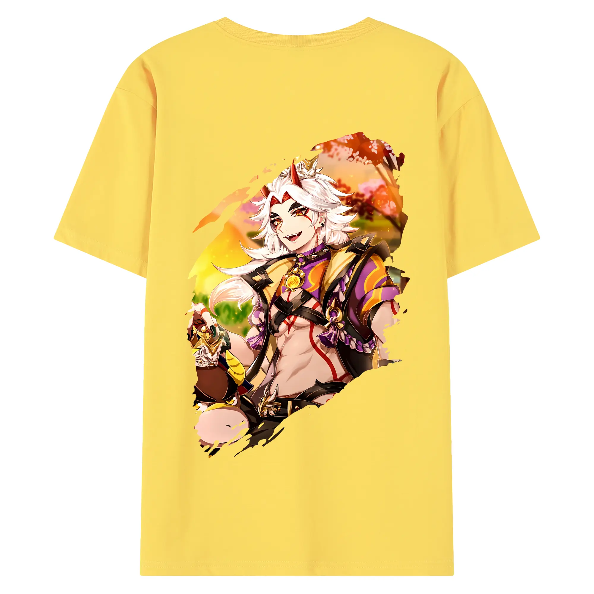 原 神 グッズ 荒瀧 一 斗 - 綿100% ヴィンテージ風 半袖Tシャツ ・ 背面プリント ・ 柔らか肌触り ・ 通気性 快適 ・ スポーツ カジュアル 外出用