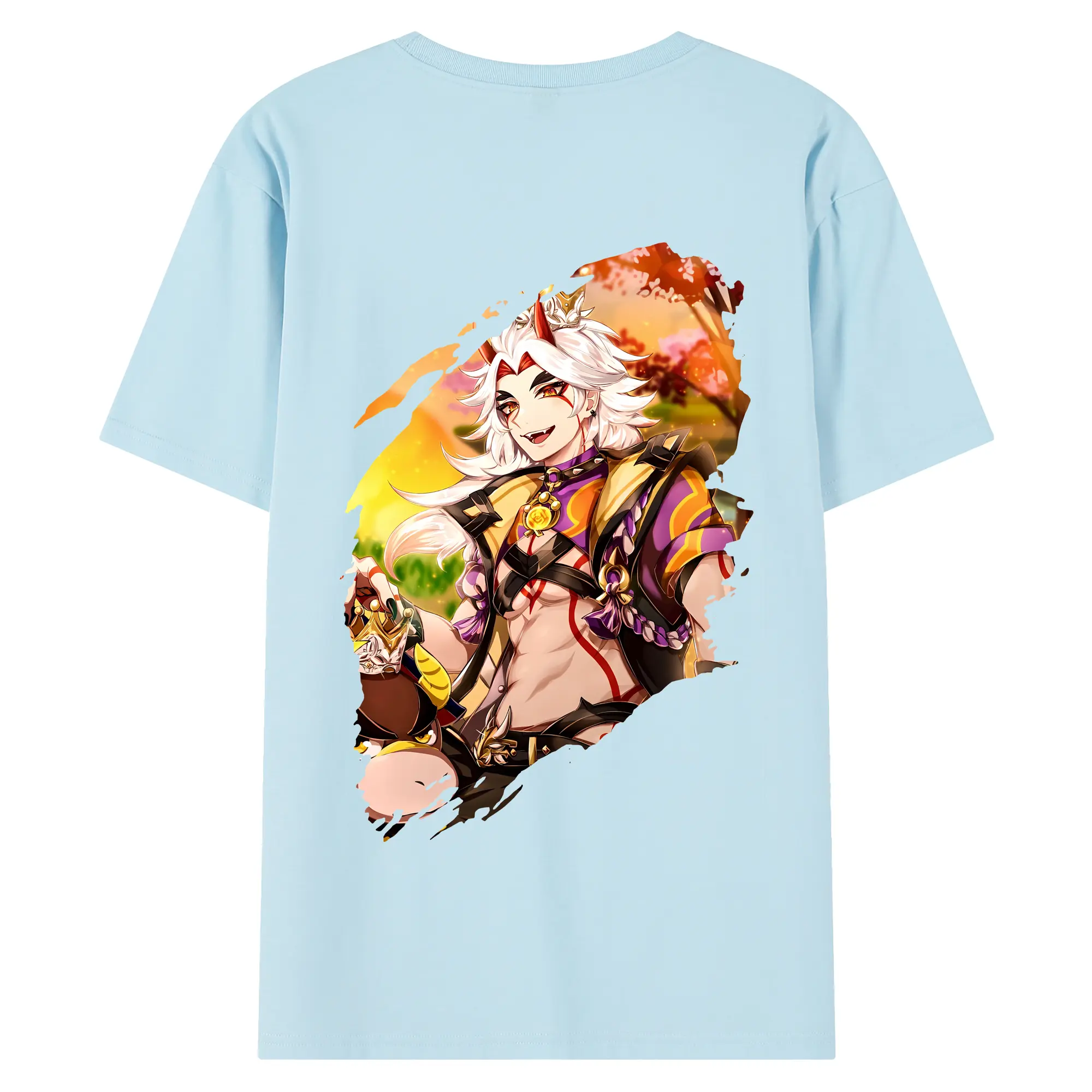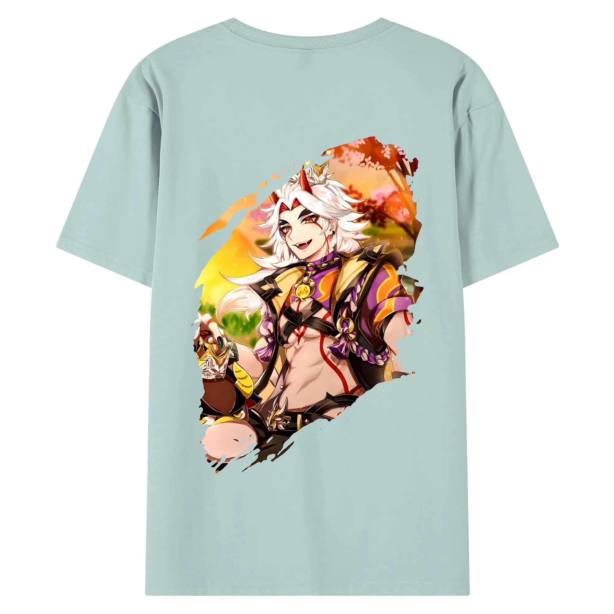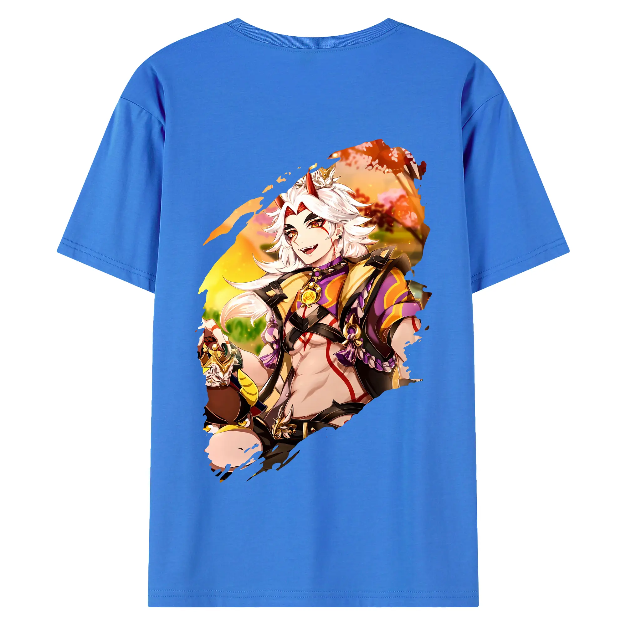 原 神 グッズ 荒瀧 一 斗 - 綿100% 半袖Tシャツ ・ フロントプリント ・ 快適 通気性 ・ 日常使い 散歩 スポーツ用