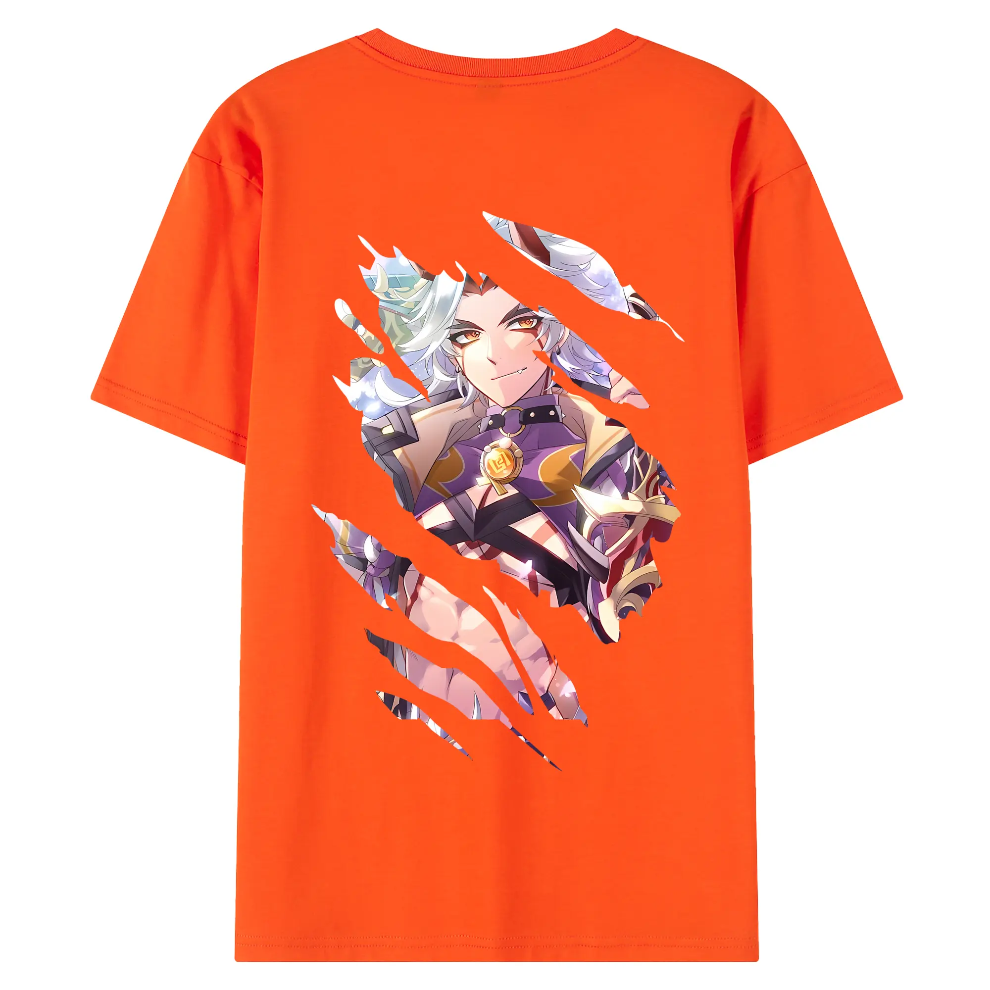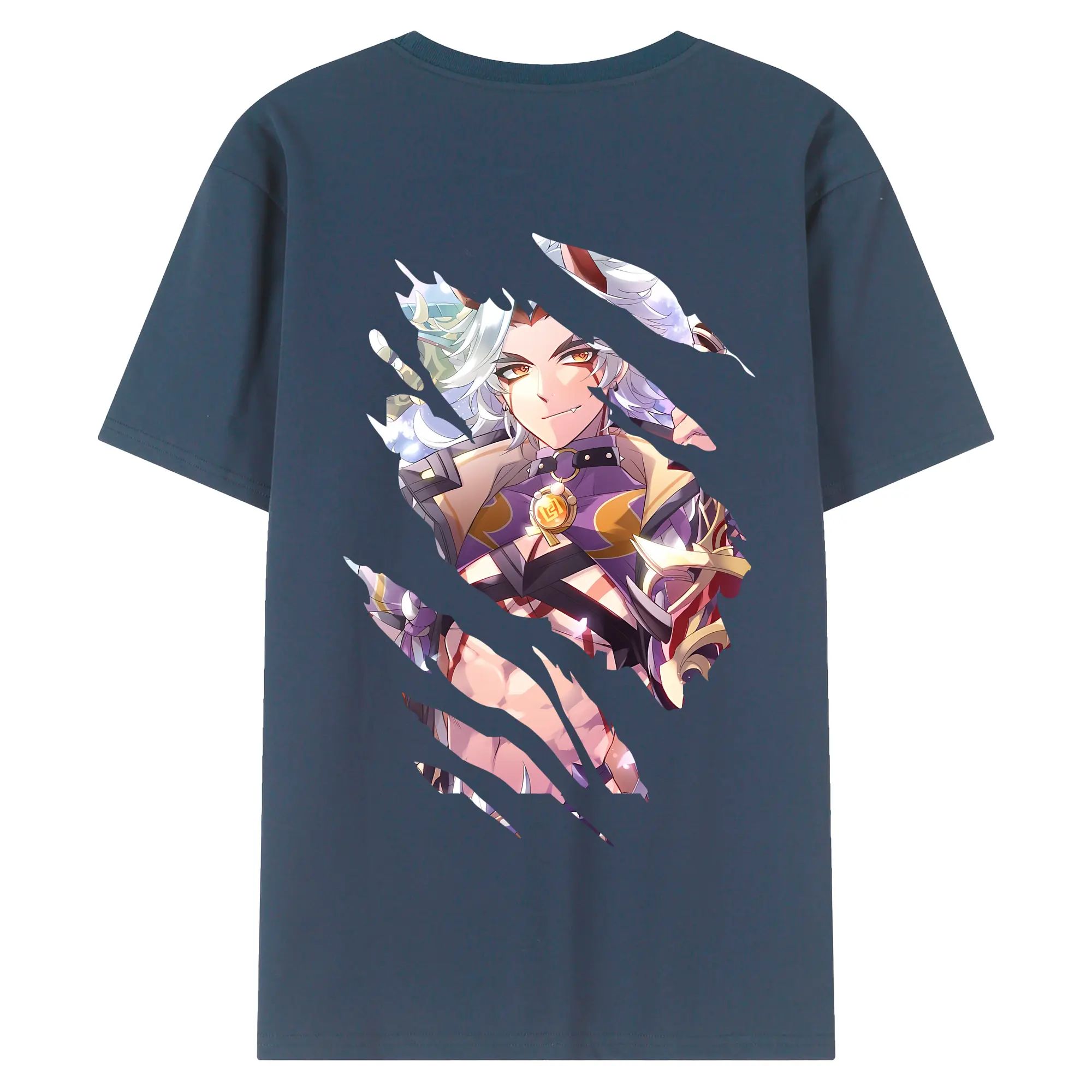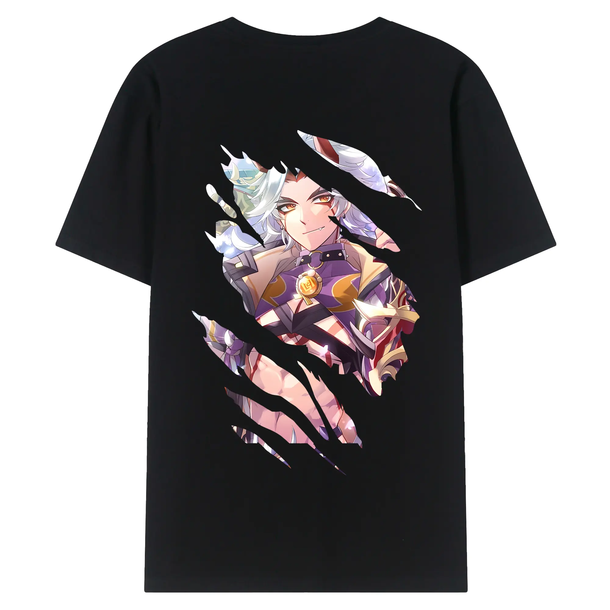 原 神 グッズ 荒瀧 一 斗 - 綿100% ヴィンテージ風 半袖Tシャツ ・ 背面プリント ・ 柔らか肌触り ・ 通気性 快適 ・ スポーツ カジュアル 外出用