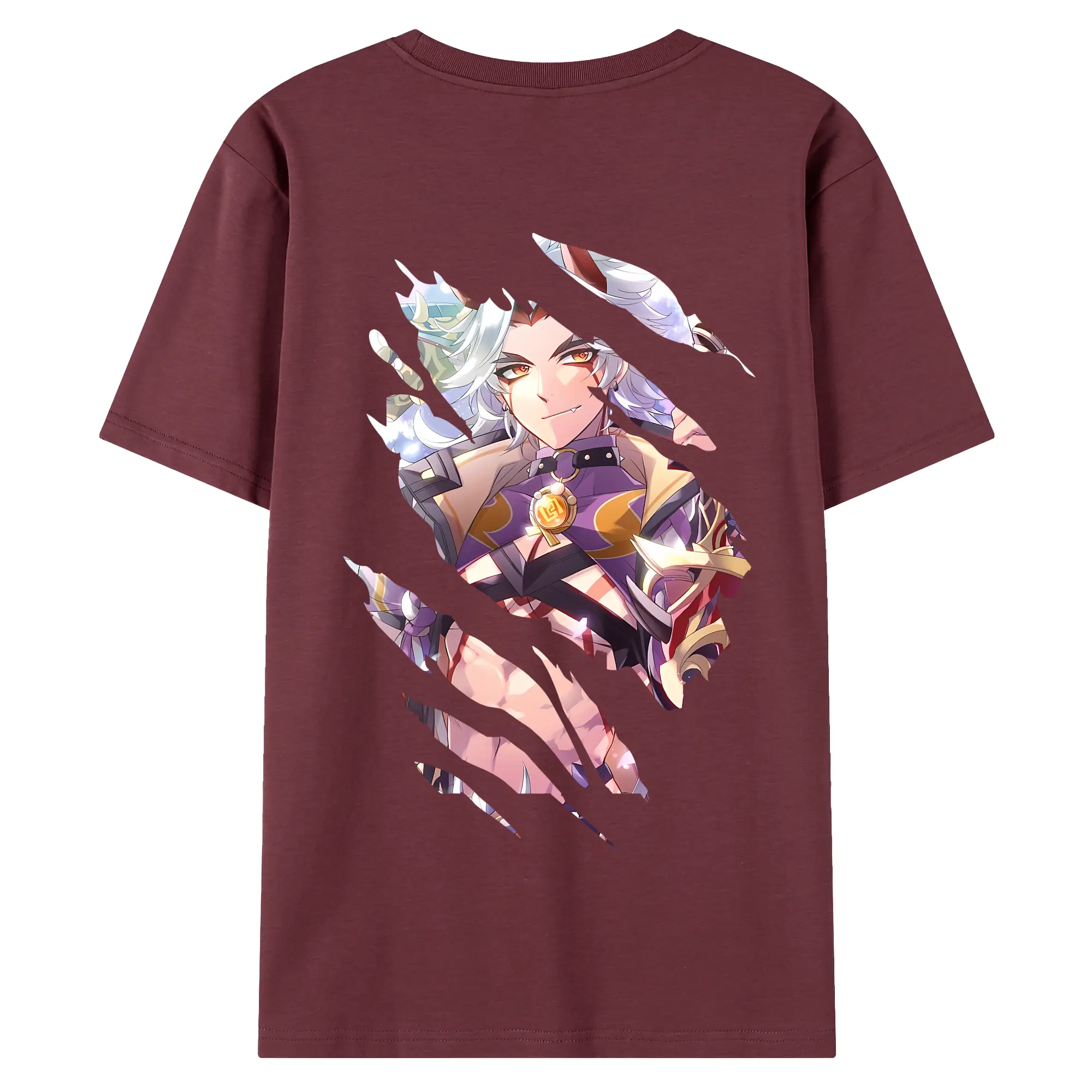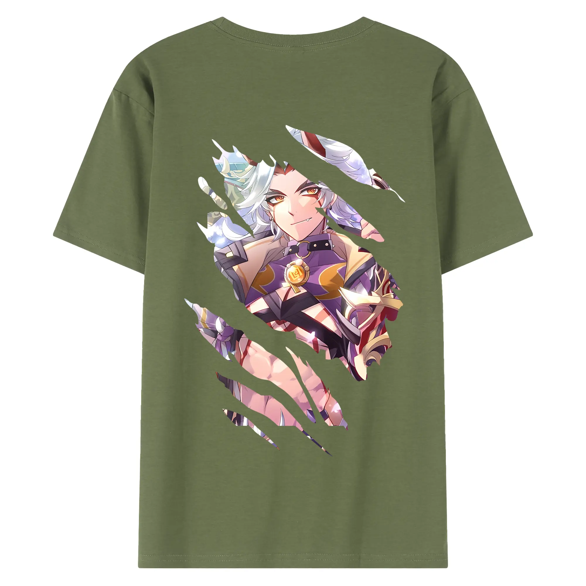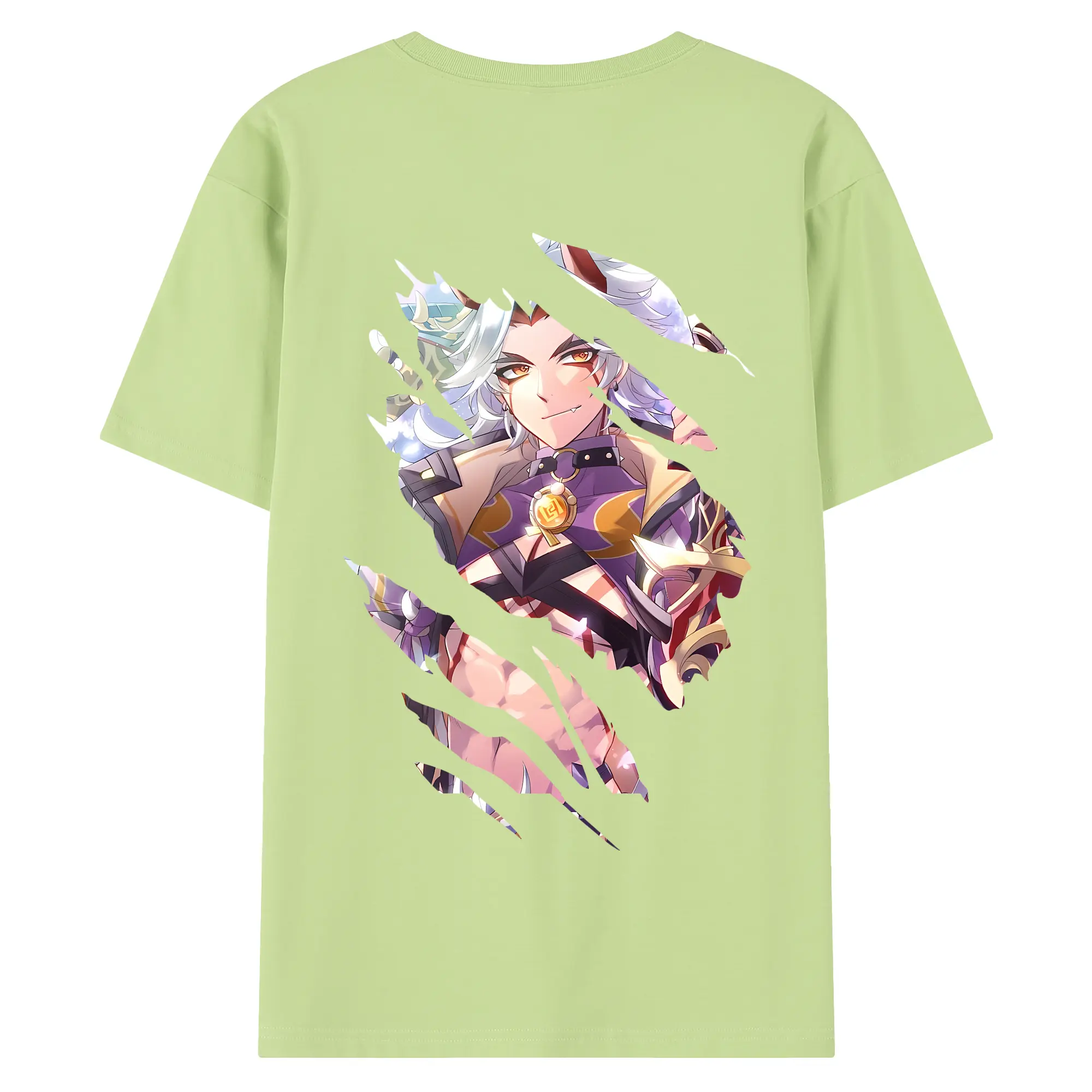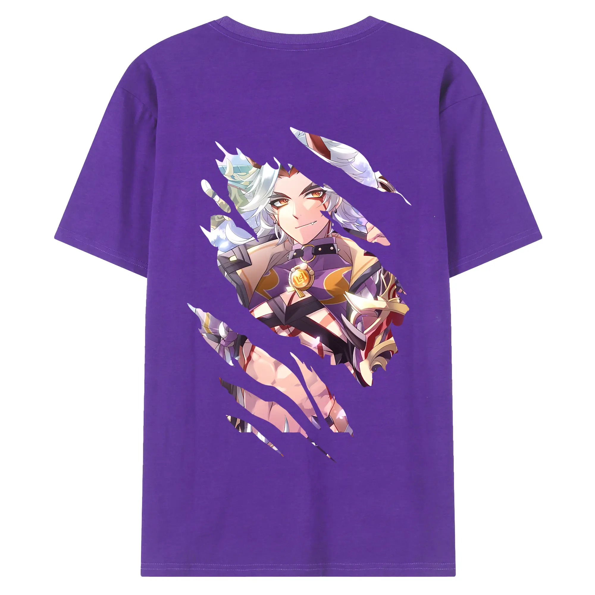 原 神 グッズ 荒瀧 一 斗 - 綿100% ヴィンテージ風 半袖Tシャツ ・ 背面プリント ・ 柔らか肌触り ・ 通気性 快適 ・ スポーツ カジュアル 外出用