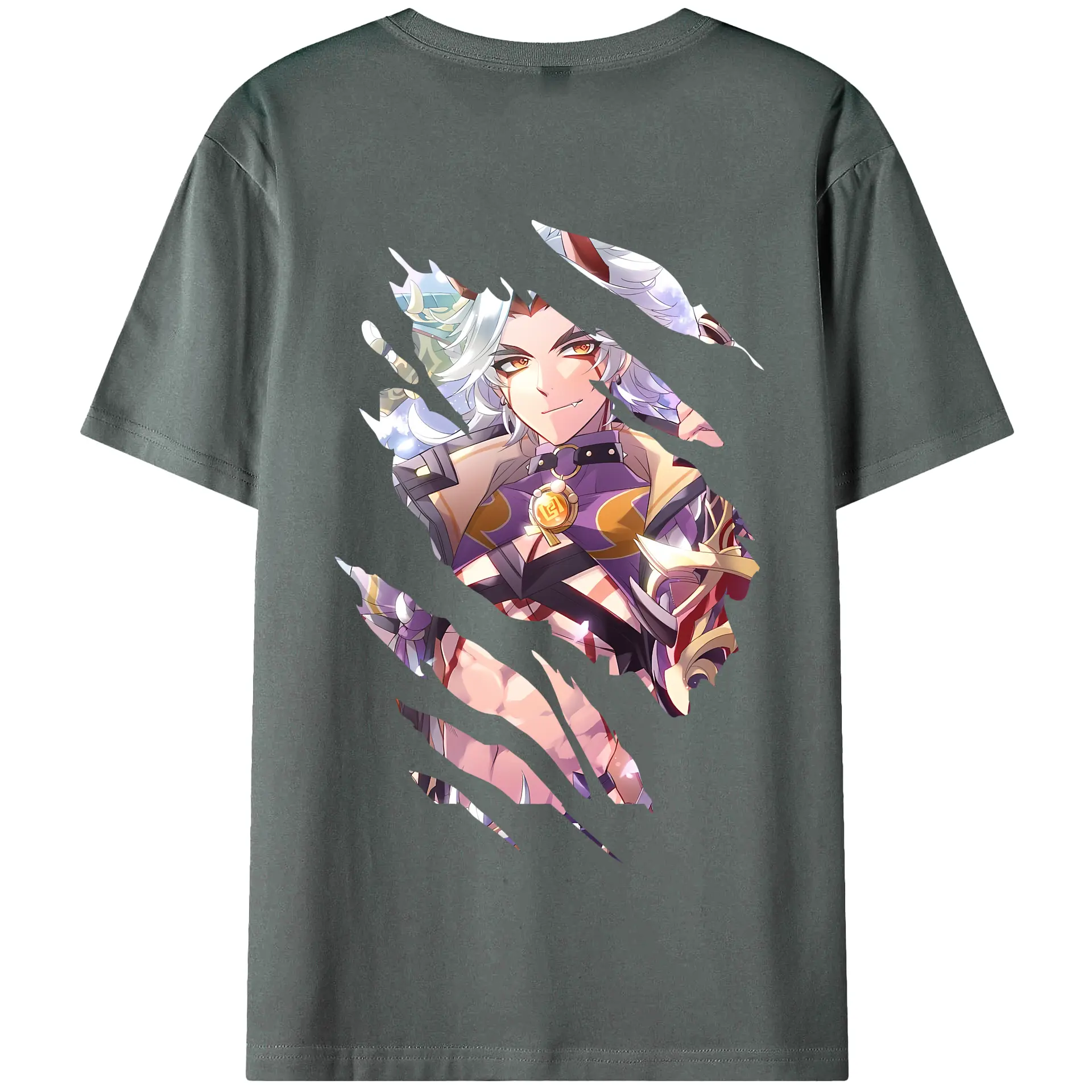 原 神 グッズ 荒瀧 一 斗 - 綿100% 半袖Tシャツ ・ フロントプリント ・ 快適 通気性 ・ 日常使い 散歩 スポーツ用