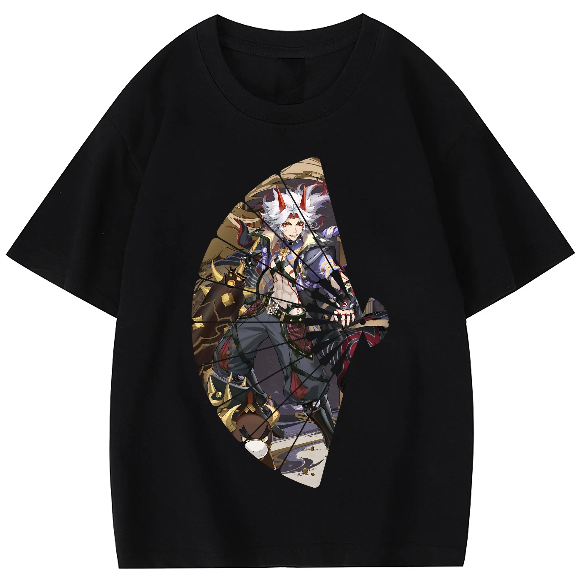 原 神 グッズ 荒瀧 一 斗 - 綿100% 半袖Tシャツ ・ バックプリント ・ 快適 通気性 ・ 日常使い 散歩 スポーツ用