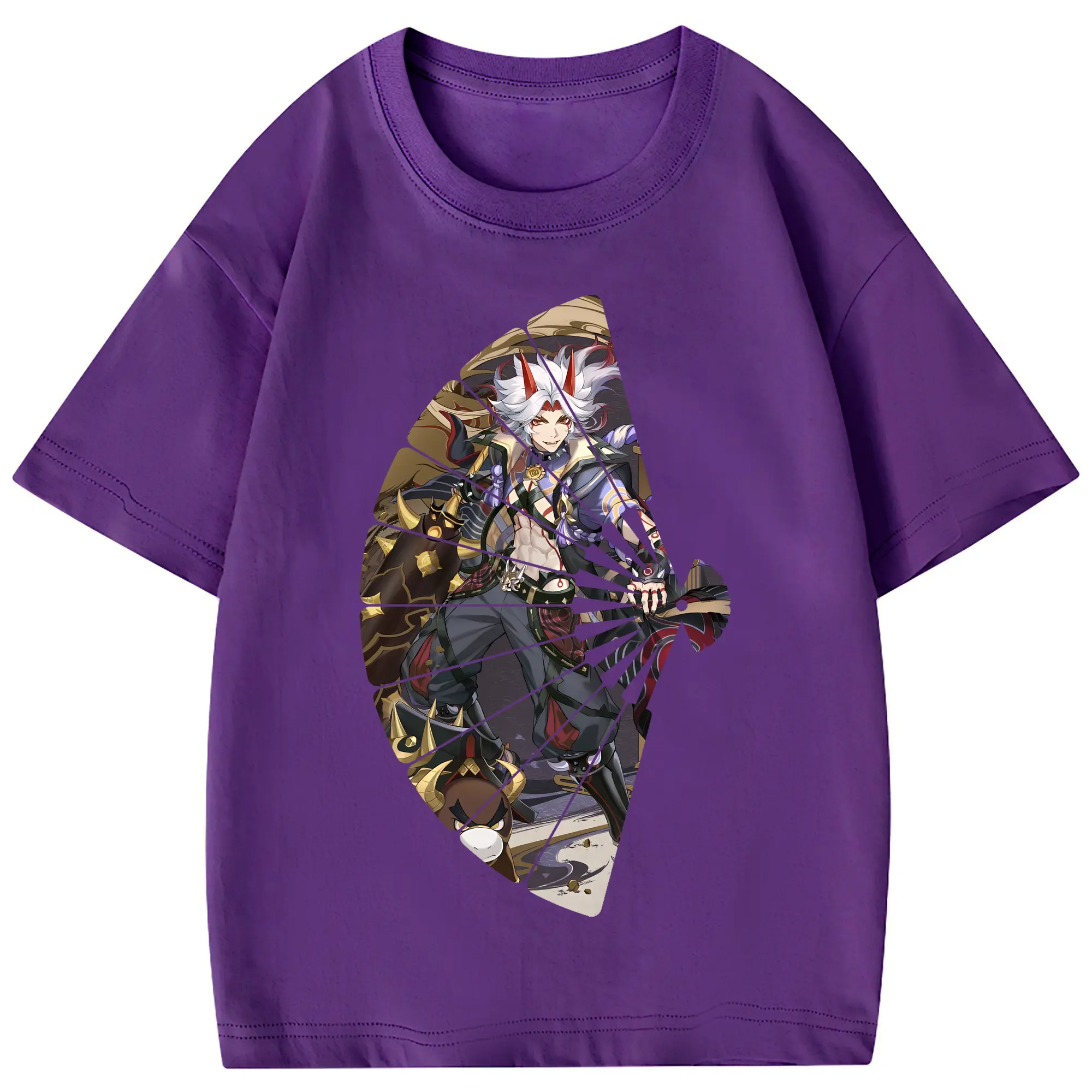 原 神 グッズ 荒瀧 一 斗 - 綿100% 半袖Tシャツ ・ フロントプリント ・ 快適 通気性 ・ 日常使い 散歩 スポーツ用