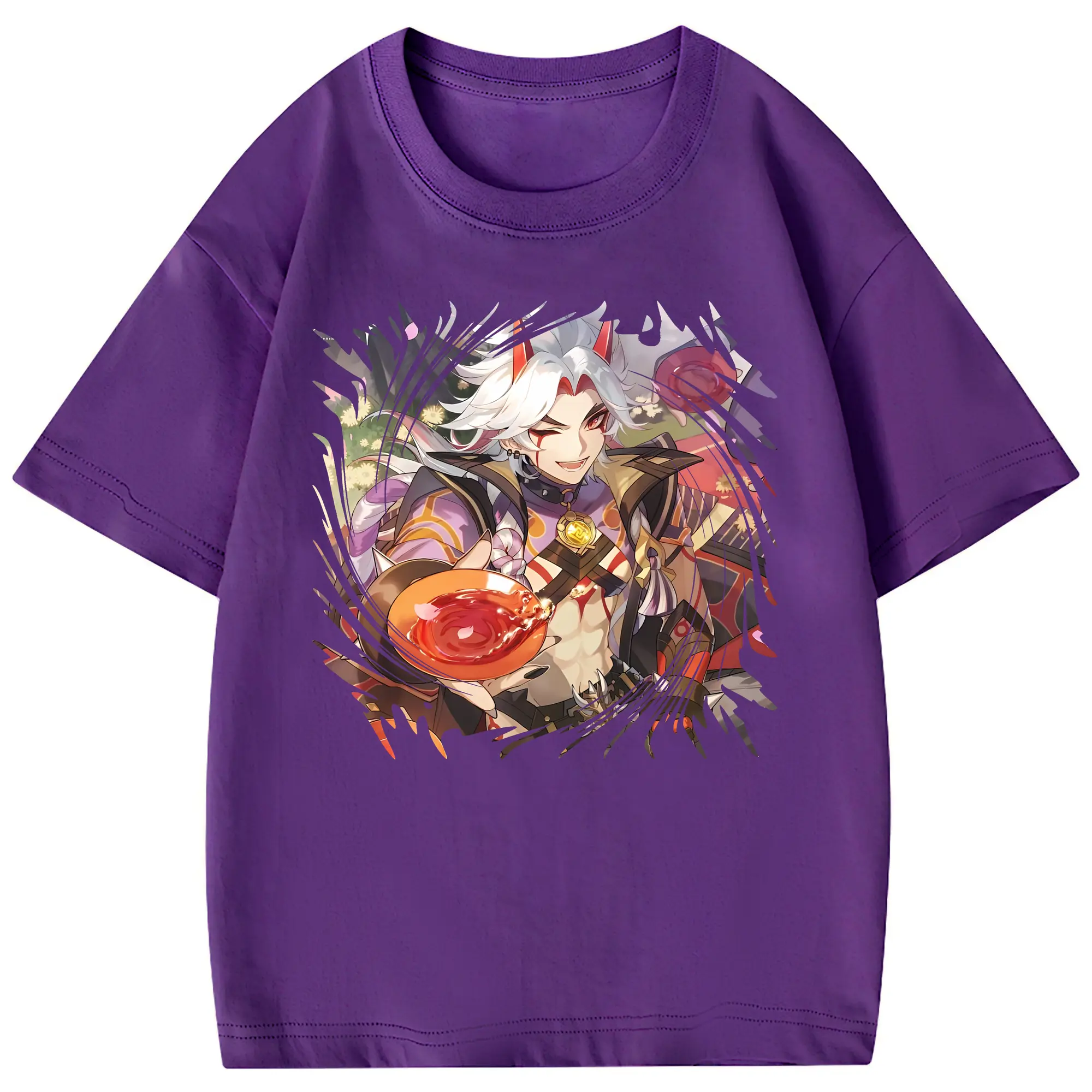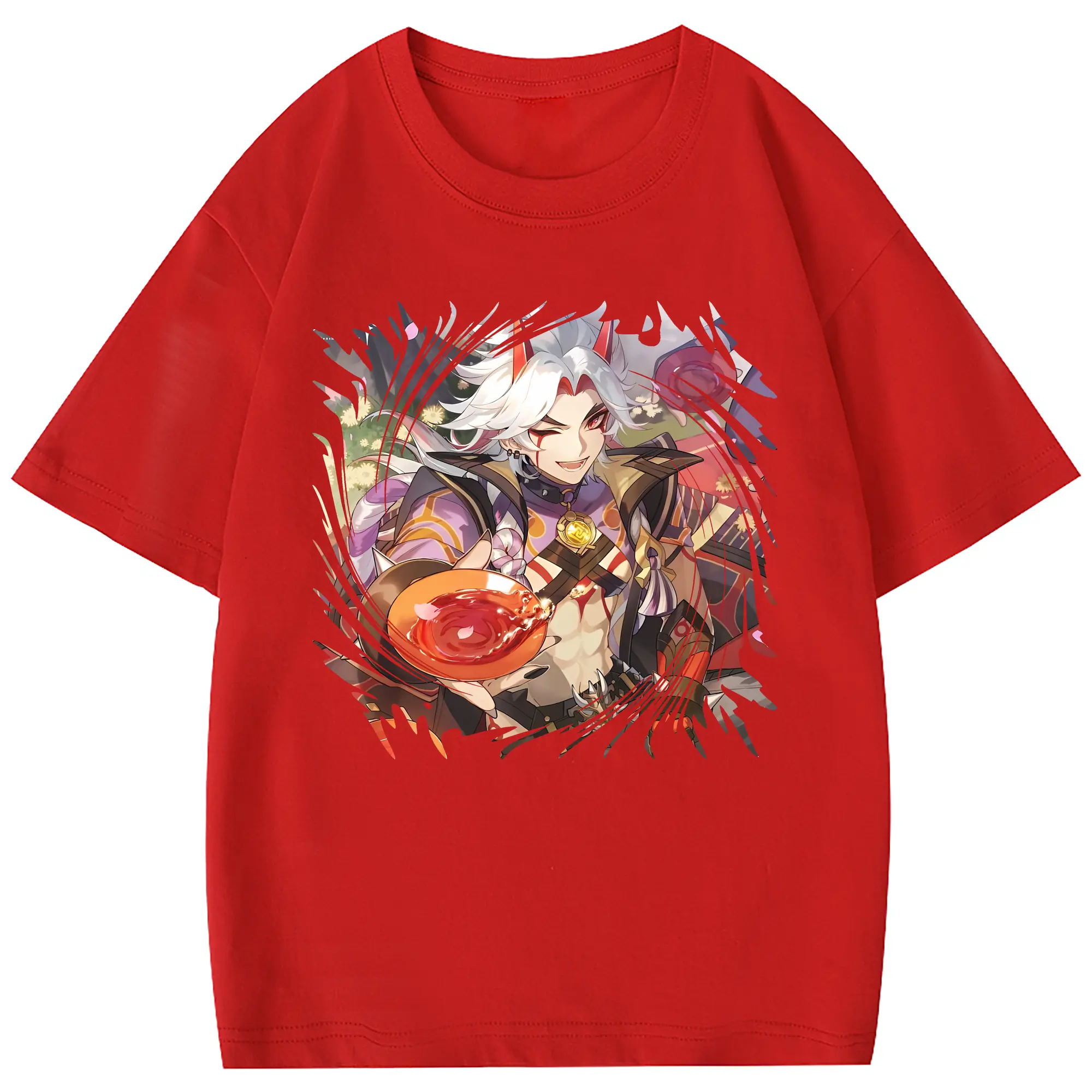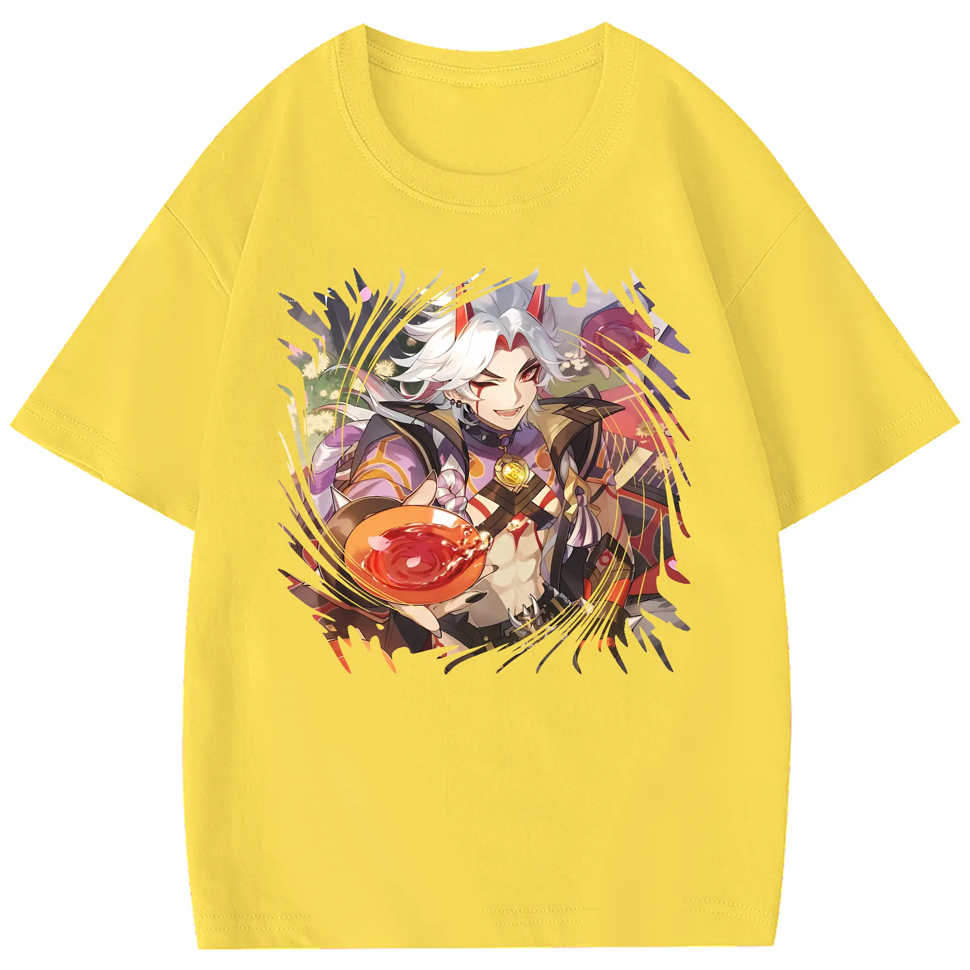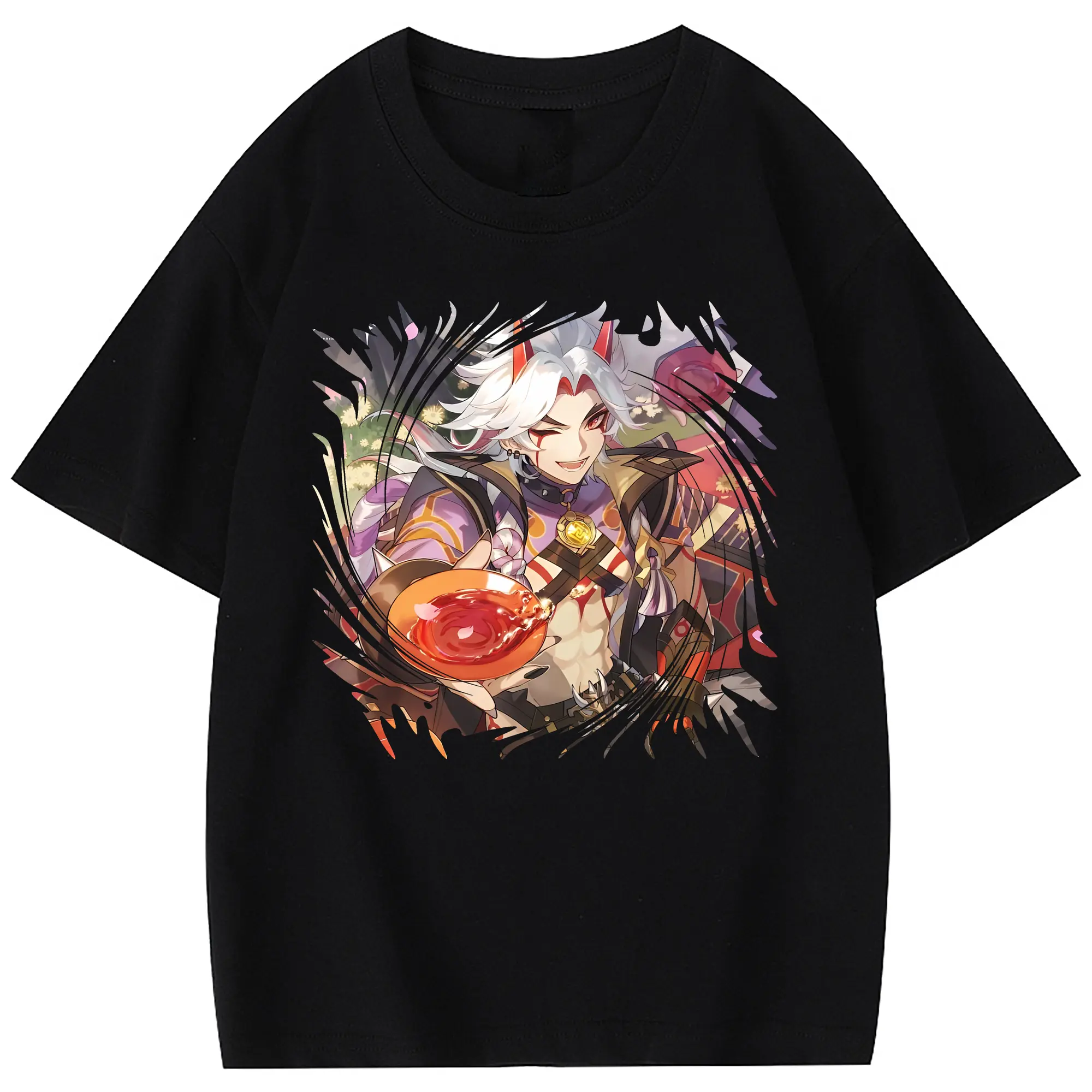原 神 グッズ 荒瀧 一 斗 - 綿100% 半袖Tシャツ ・ フロントプリント ・ 快適 通気性 ・ 日常使い 散歩 スポーツ用