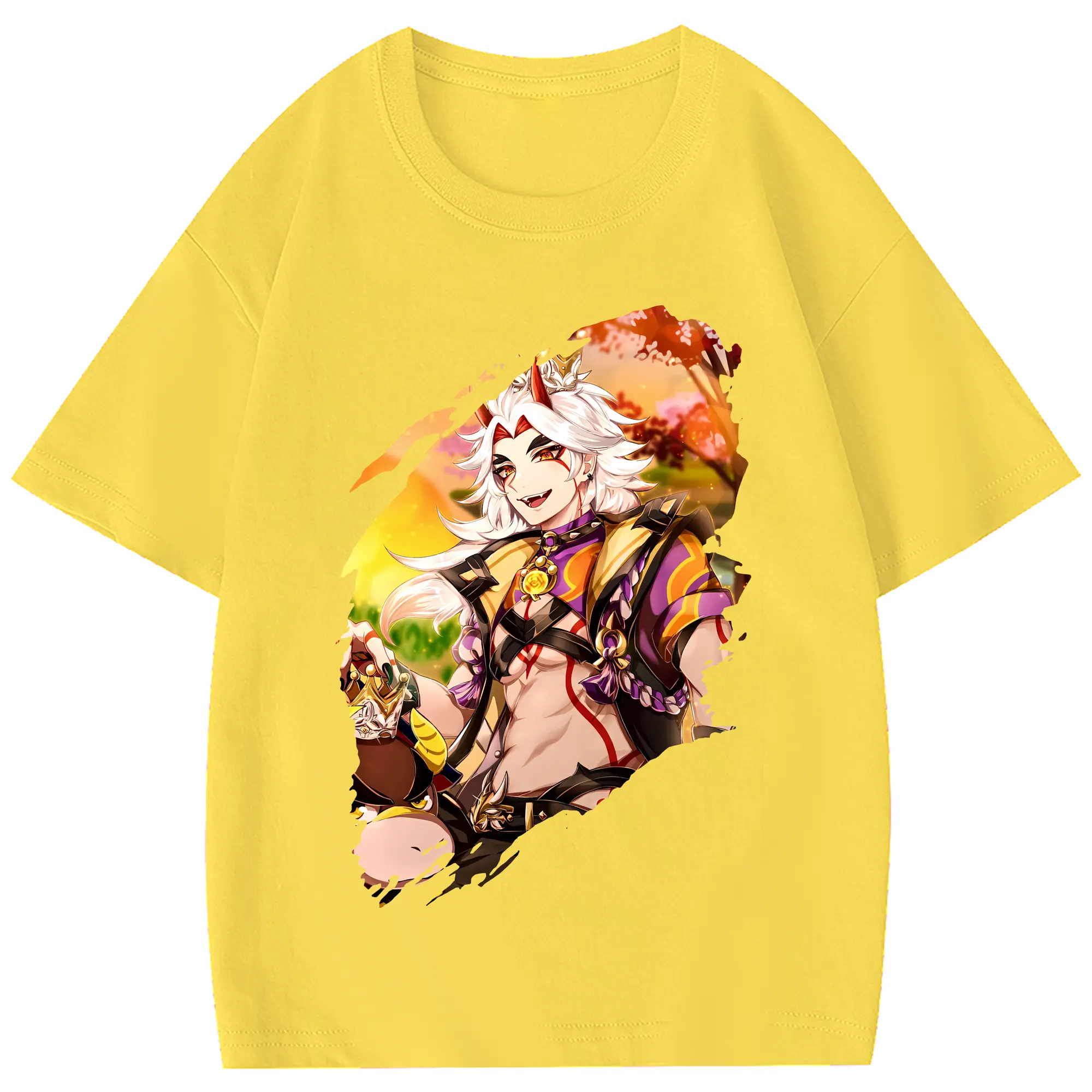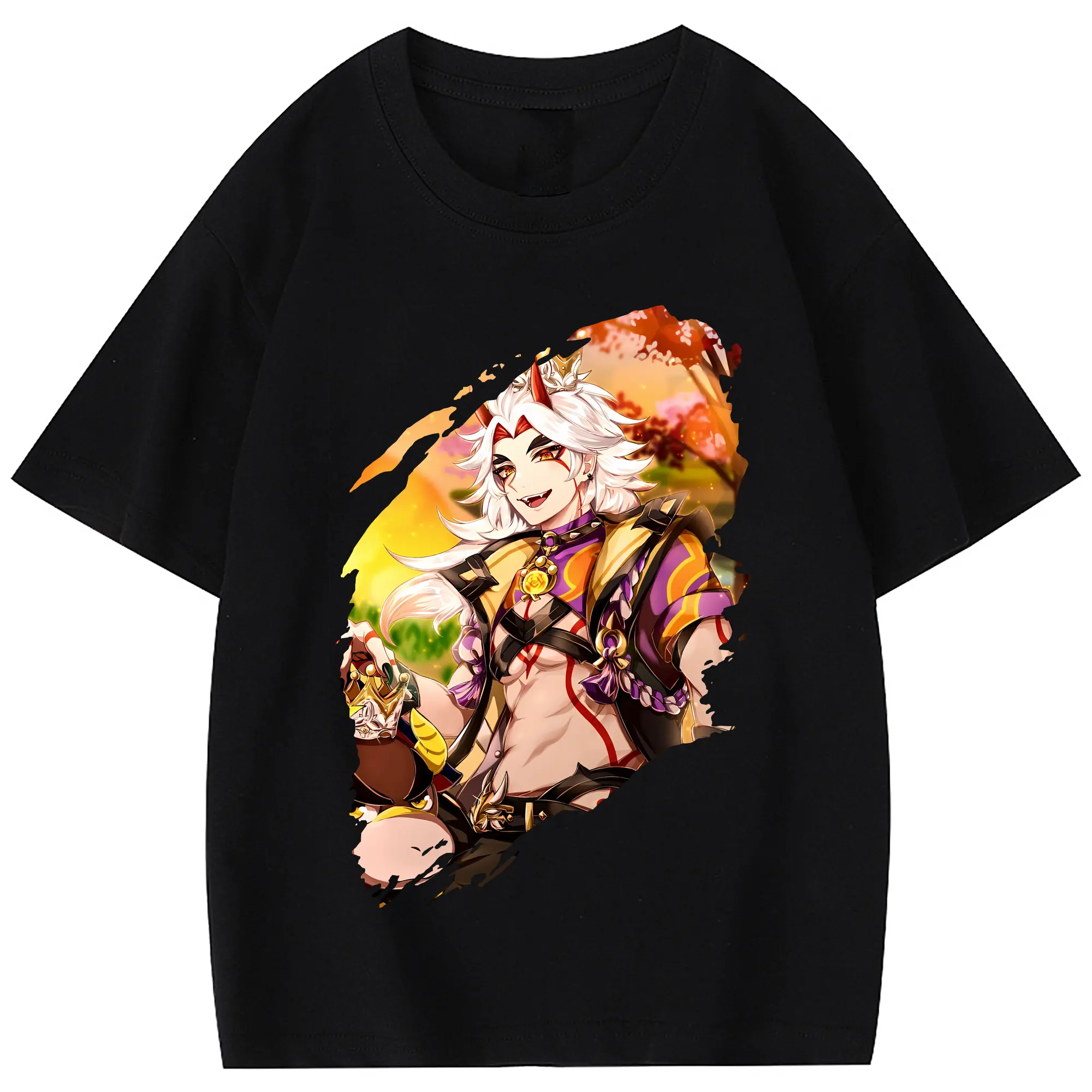 原 神 グッズ 荒瀧 一 斗 - 綿100% 半袖Tシャツ ・ フロントプリント ・ 快適 通気性 ・ 日常使い 散歩 スポーツ用