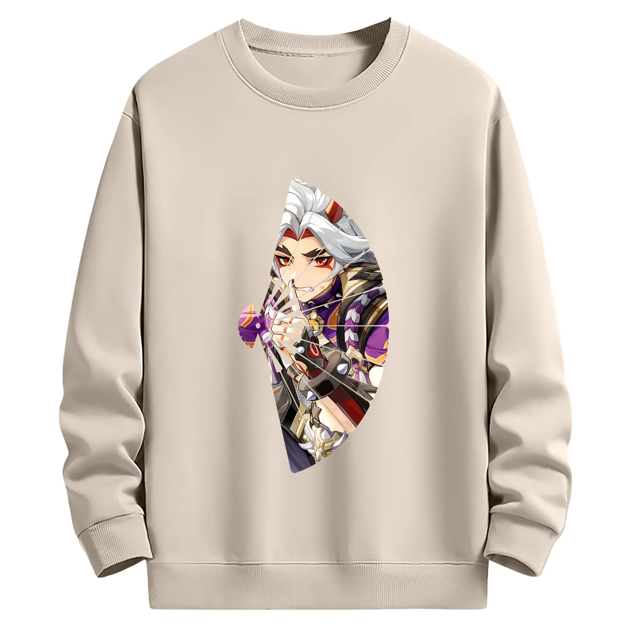 原 神 グッズ 荒瀧 一 斗 - 薄手 クルーネック スウェット 裏毛260g · ポリエステル 春秋向け カジュアル 男女兼用 · トレーナー デイリー スポーツ 散歩に最適