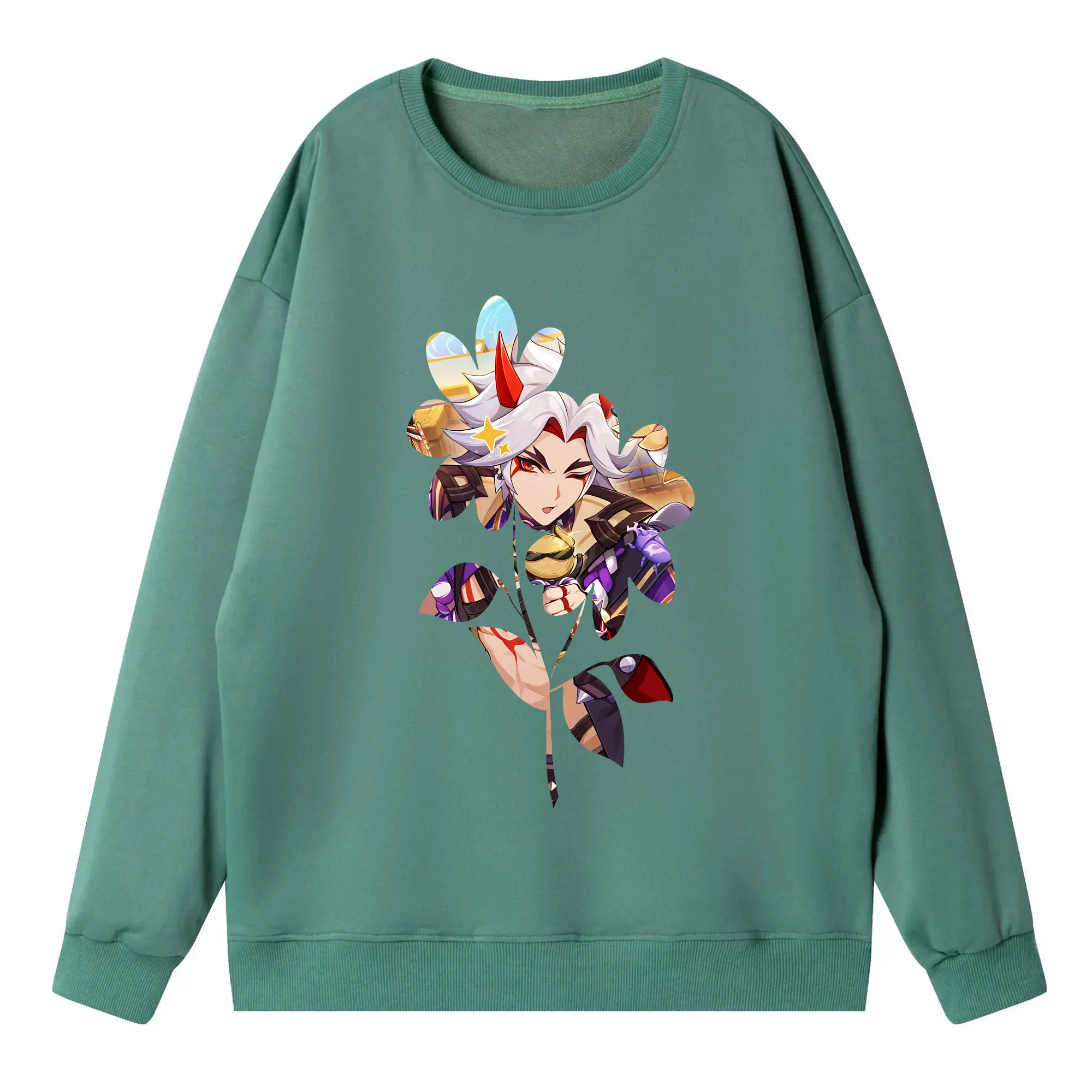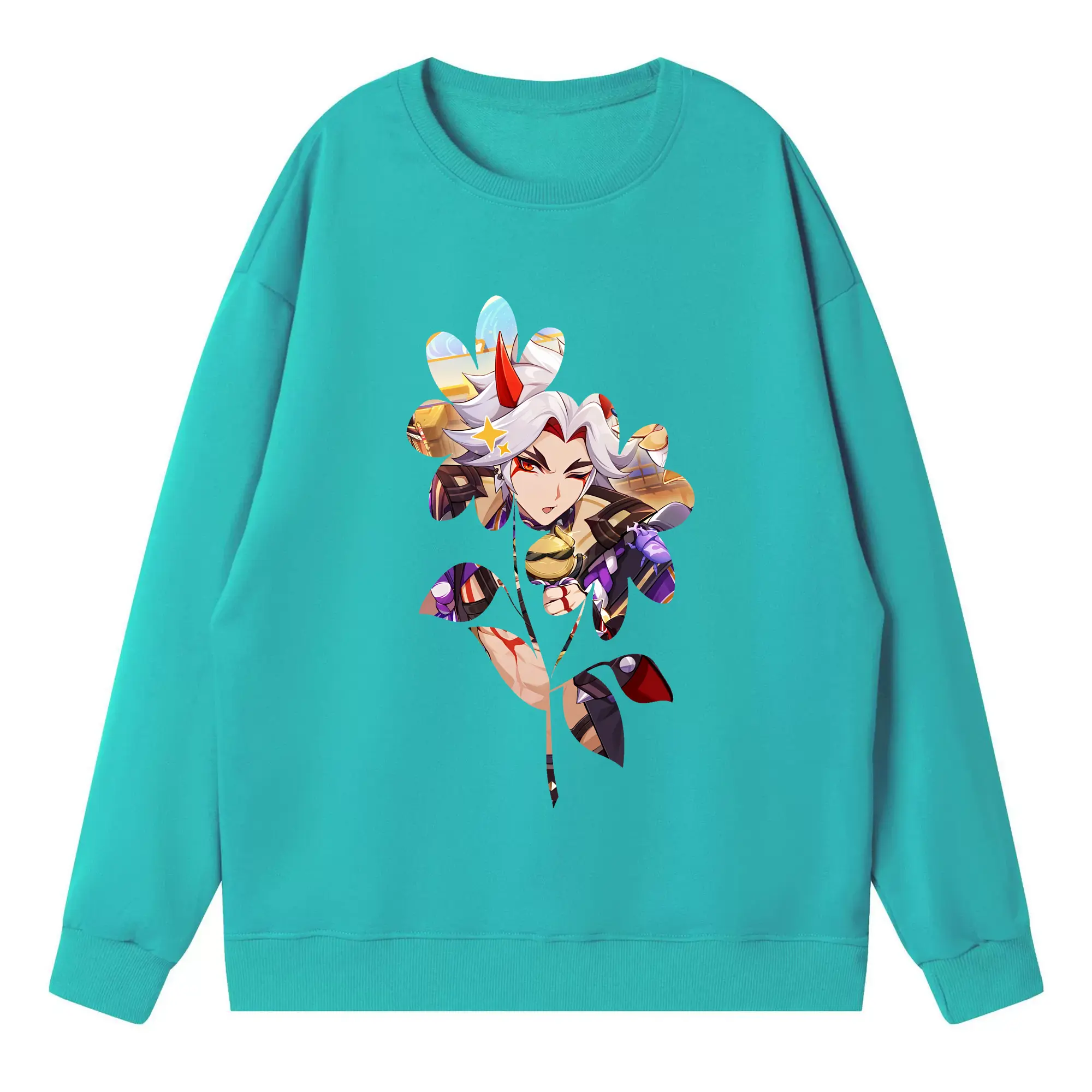 原 神 グッズ アイノ - 薄手 クルーネック スウェット 裏毛260g · ポリエステル 春秋向け カジュアル 男女兼用 · トレーナー デイリー スポーツ 散歩に最適