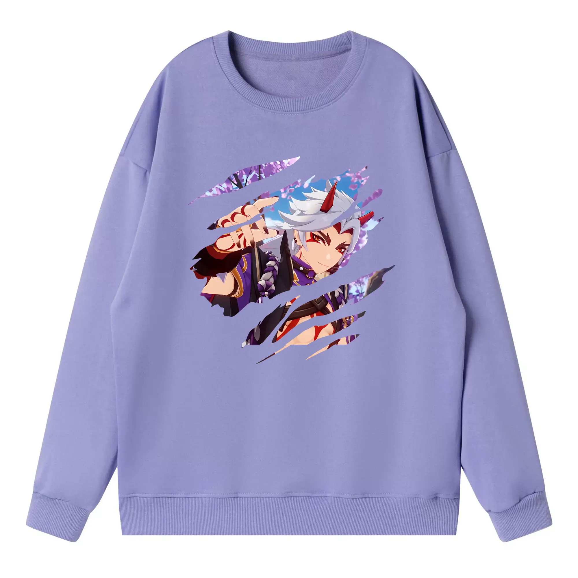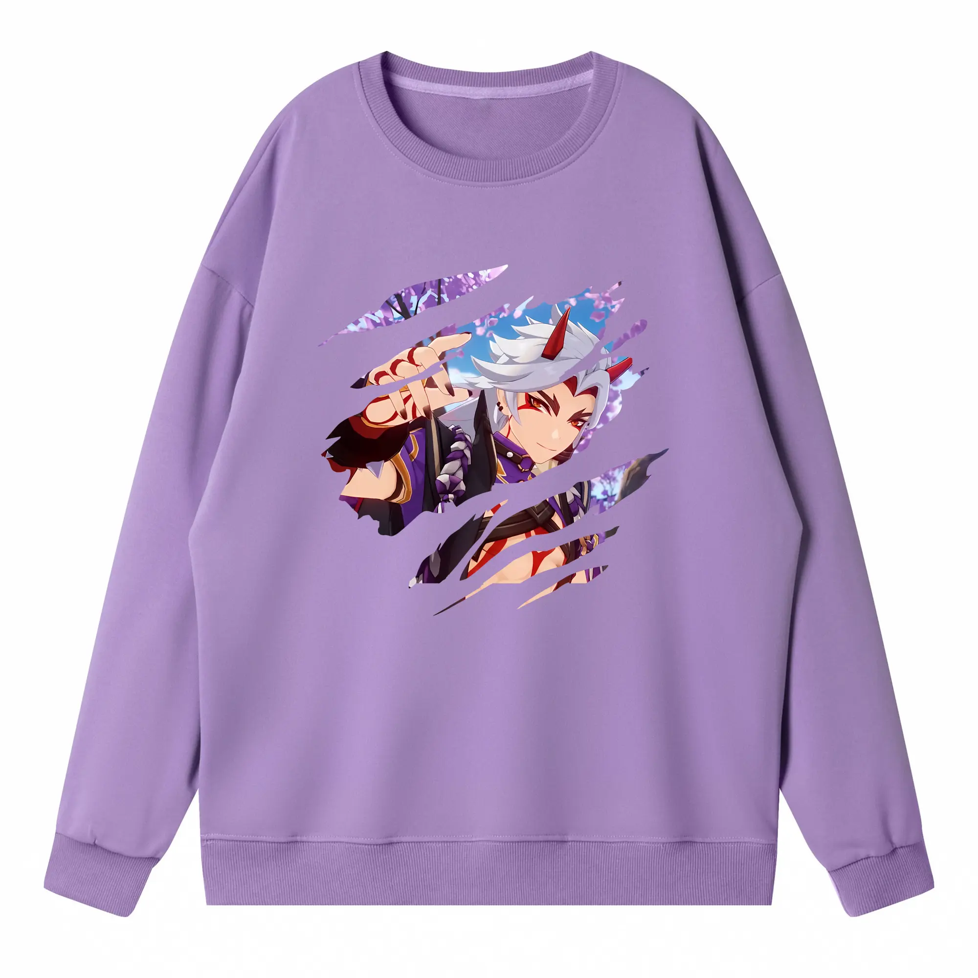 原 神 グッズ 雷電将軍 - 薄手 クルーネック スウェット 裏毛260g · ポリエステル 春秋向け カジュアル 男女兼用 · トレーナー デイリー スポーツ 散歩に最適