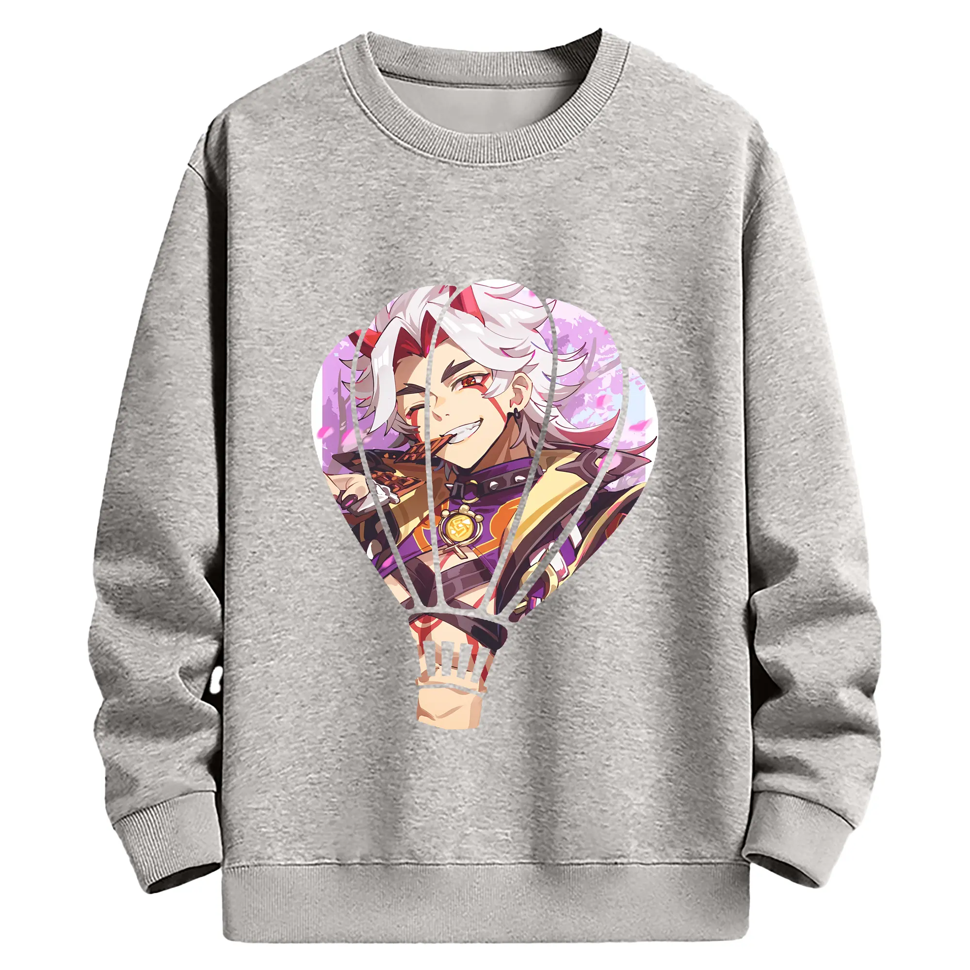 原 神 グッズ 荒瀧 一 斗 - 薄手 クルーネック スウェット 裏毛260g · ポリエステル 春秋向け カジュアル 男女兼用 · トレーナー デイリー スポーツ 散歩に最適