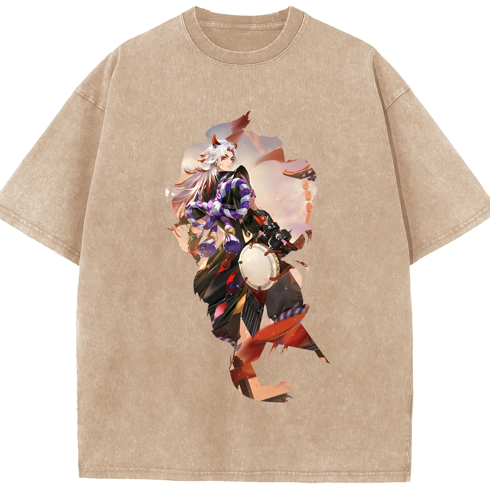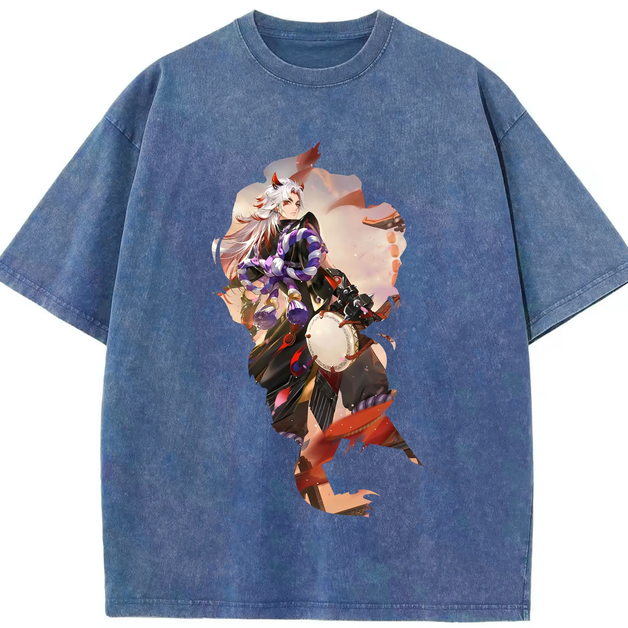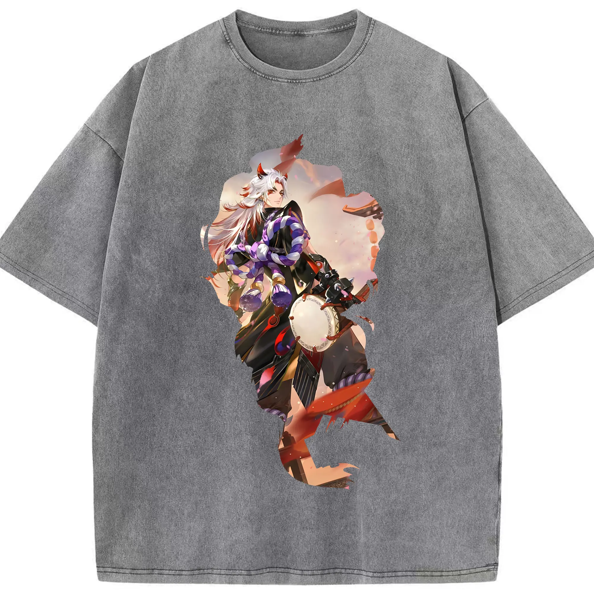 原 神 グッズ 荒瀧 一 斗 - 綿100% ヴィンテージ風 半袖Tシャツ ・ 背面プリント ・ 柔らか肌触り ・ 通気性 快適 ・ スポーツ カジュアル 外出用