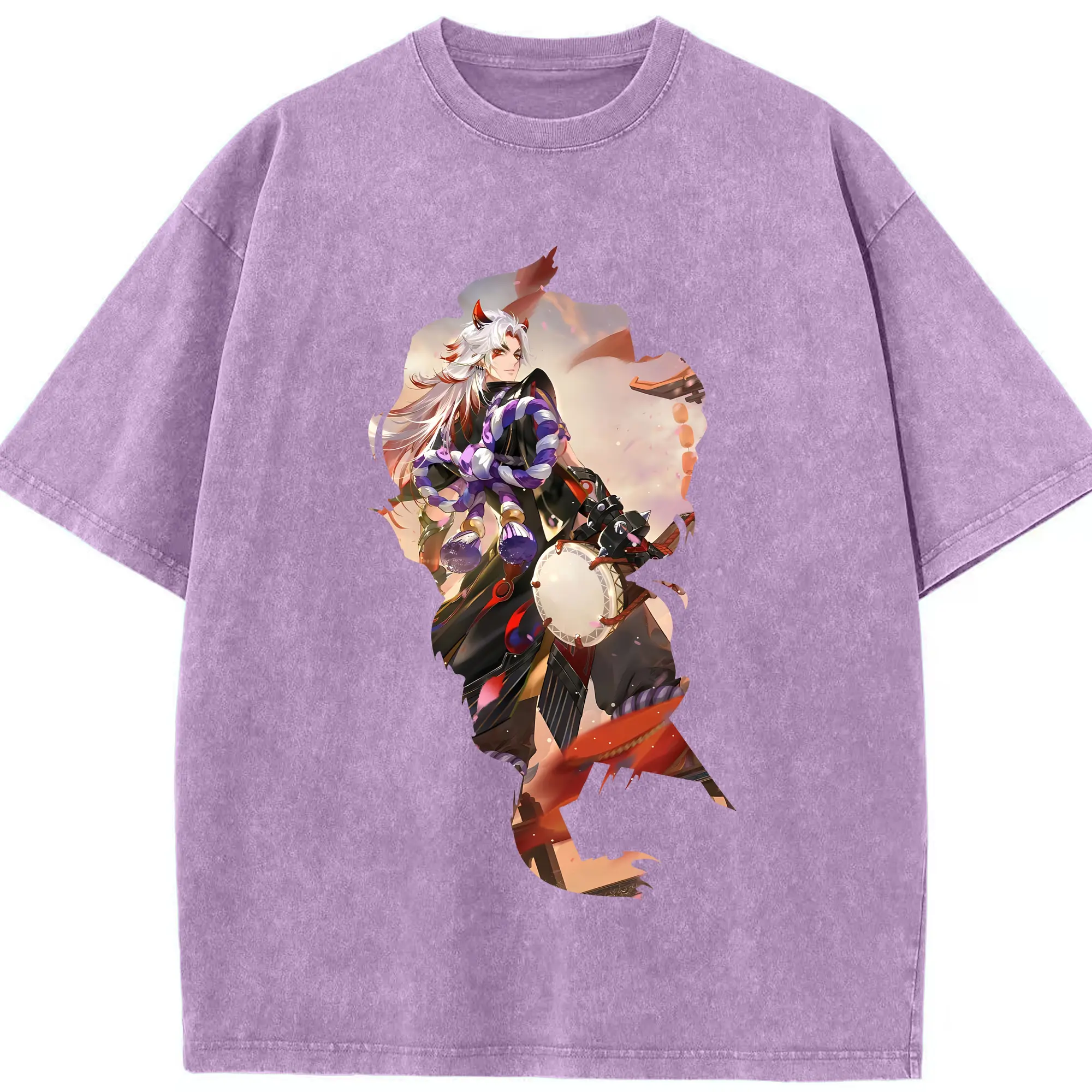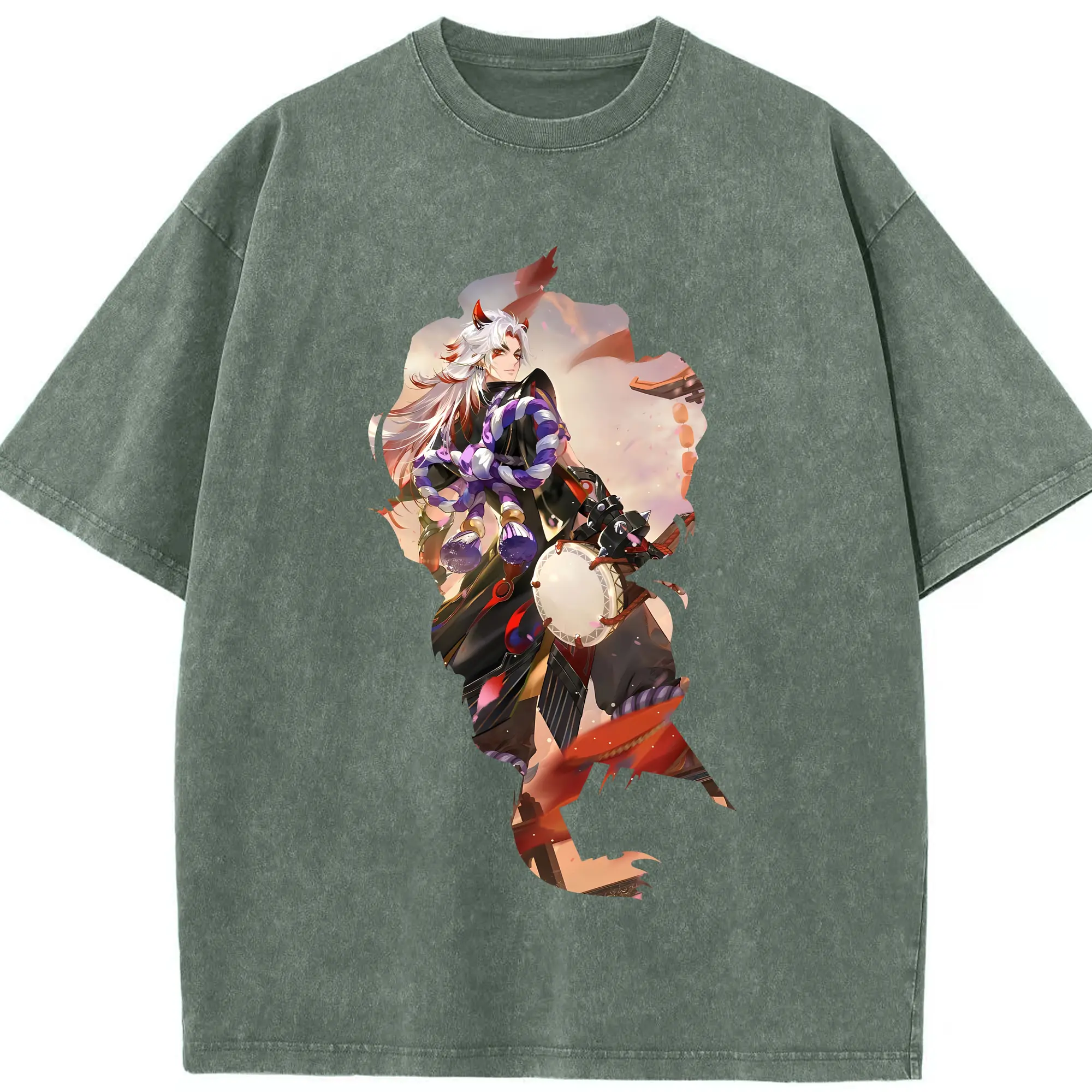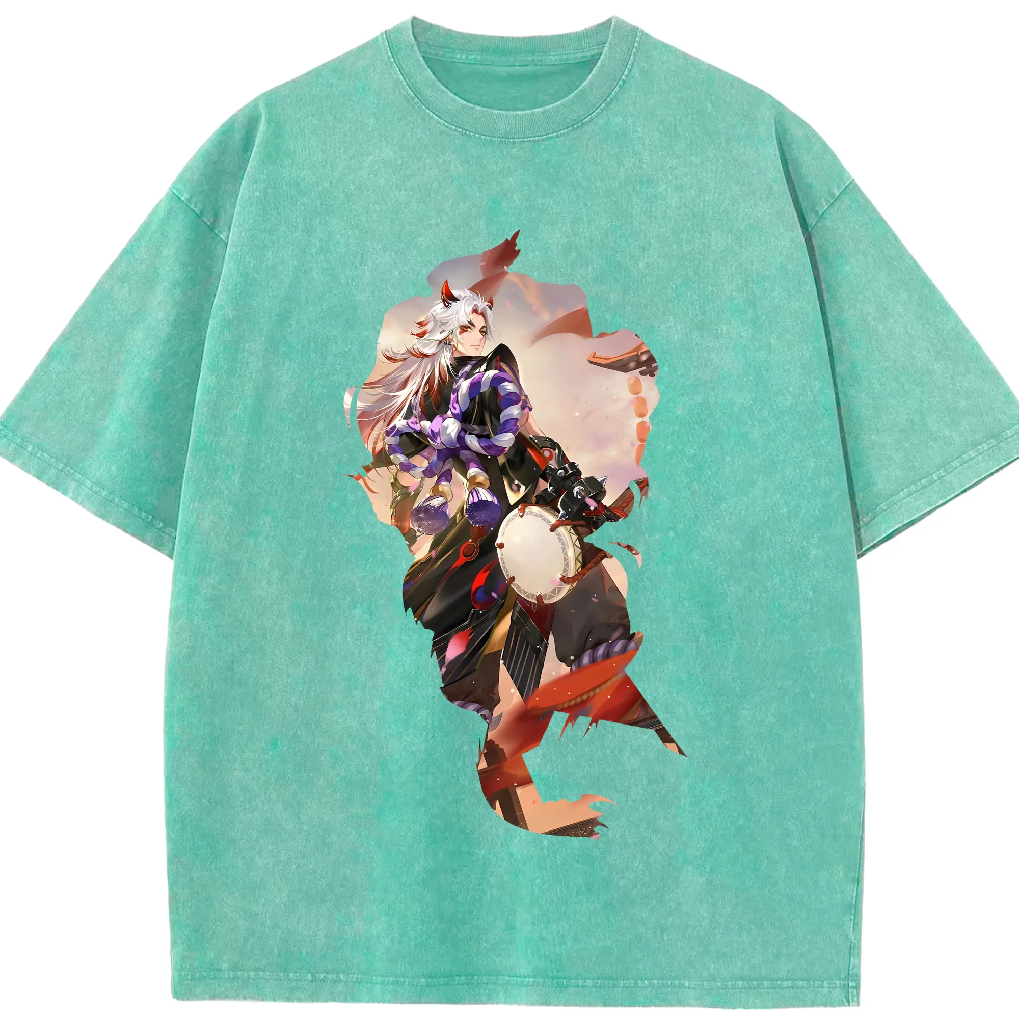 原 神 グッズ 荒瀧 一 斗 - 綿100% ヴィンテージ風 半袖Tシャツ ・ 背面プリント ・ 柔らか肌触り ・ 通気性 快適 ・ スポーツ カジュアル 外出用