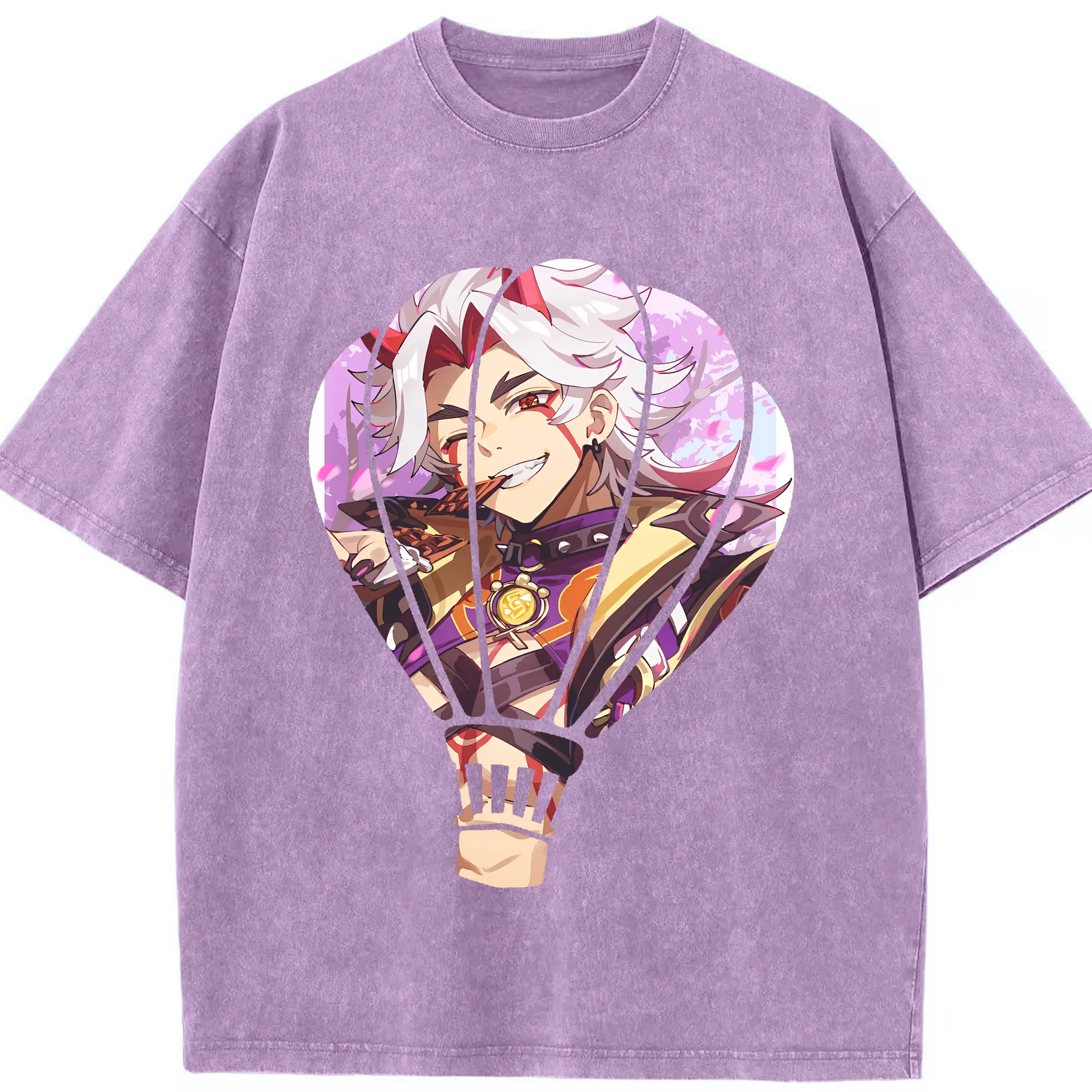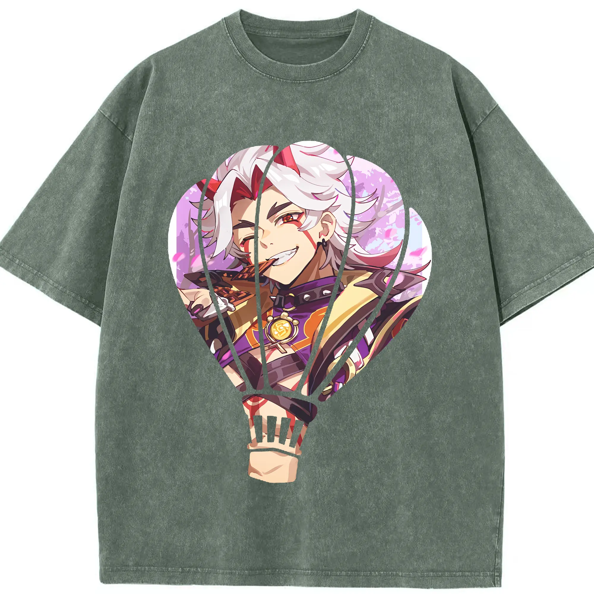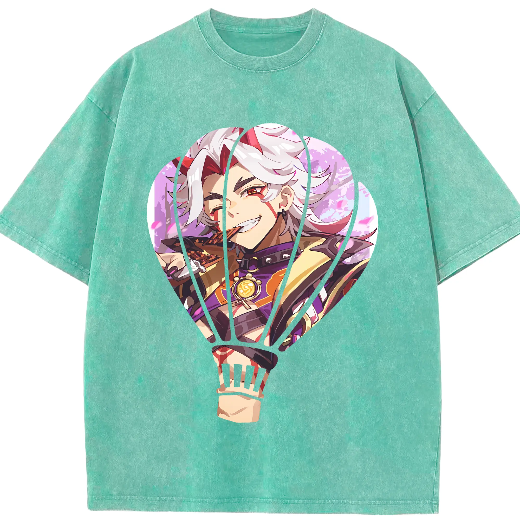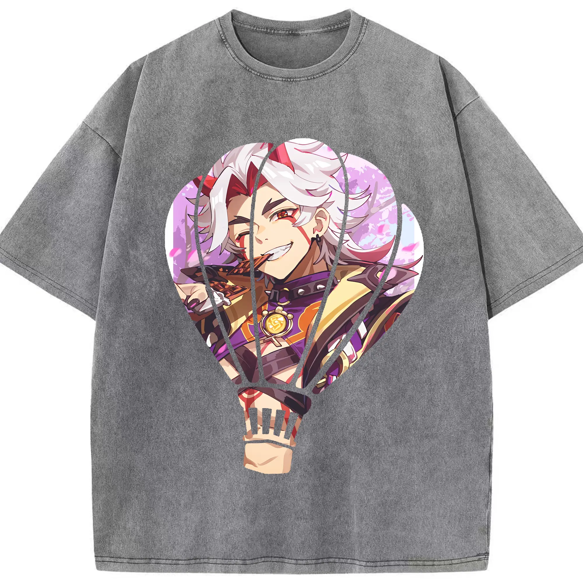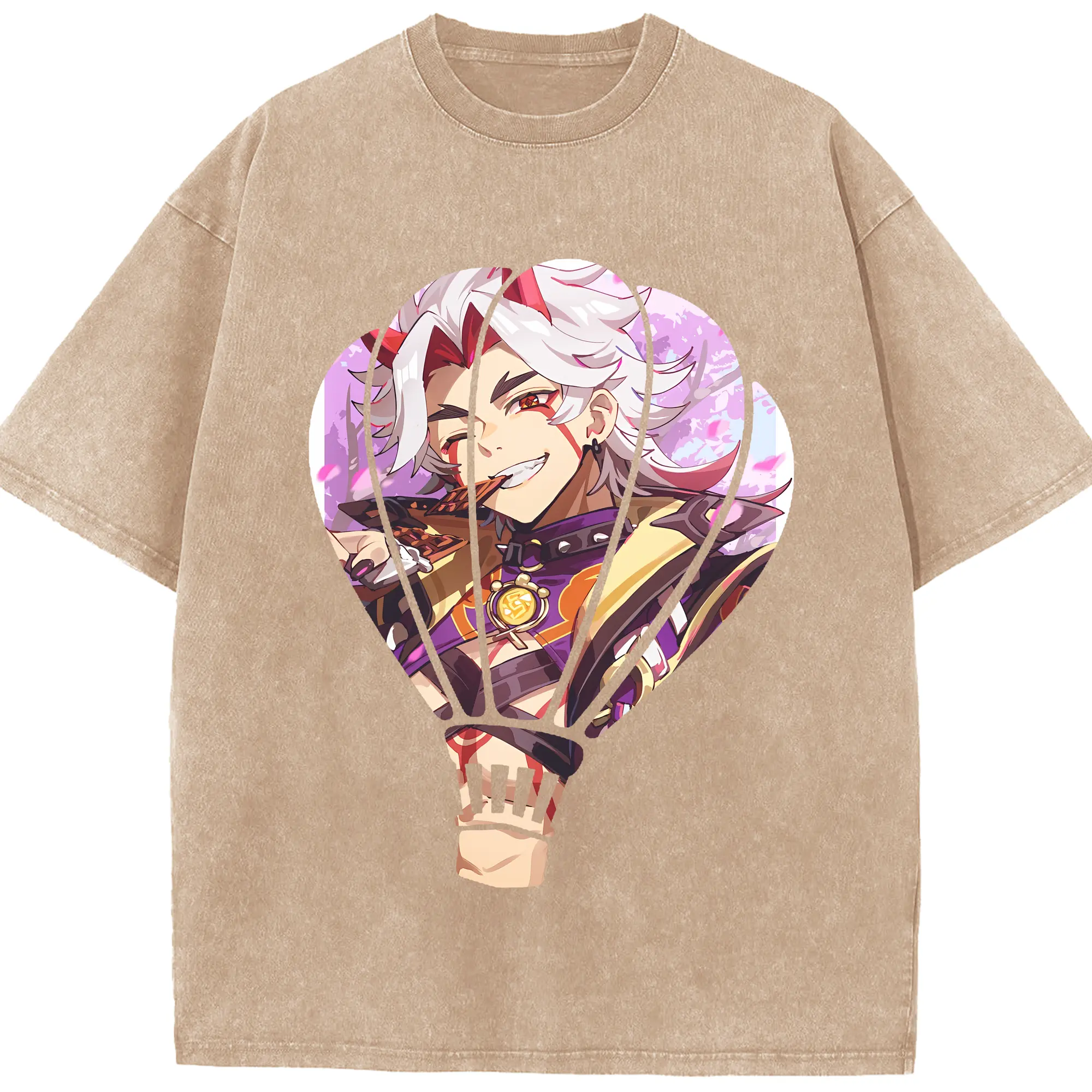 原 神 グッズ 荒瀧 一 斗 - 綿100% ヴィンテージ風 半袖Tシャツ ・ 背面プリント ・ 柔らか肌触り ・ 通気性 快適 ・ スポーツ カジュアル 外出用