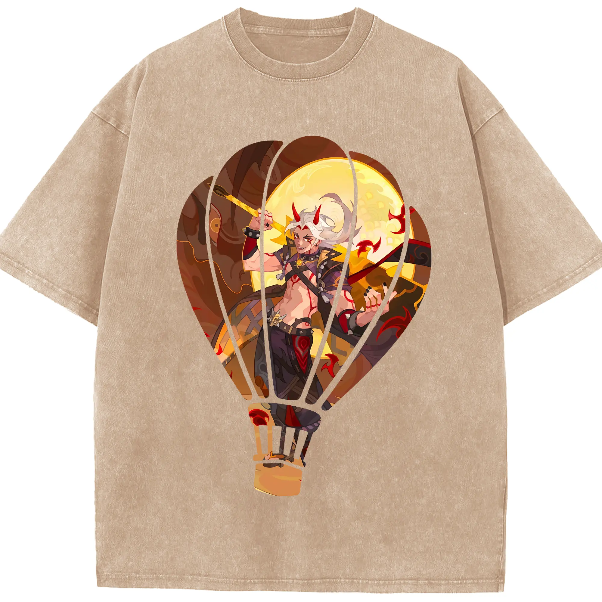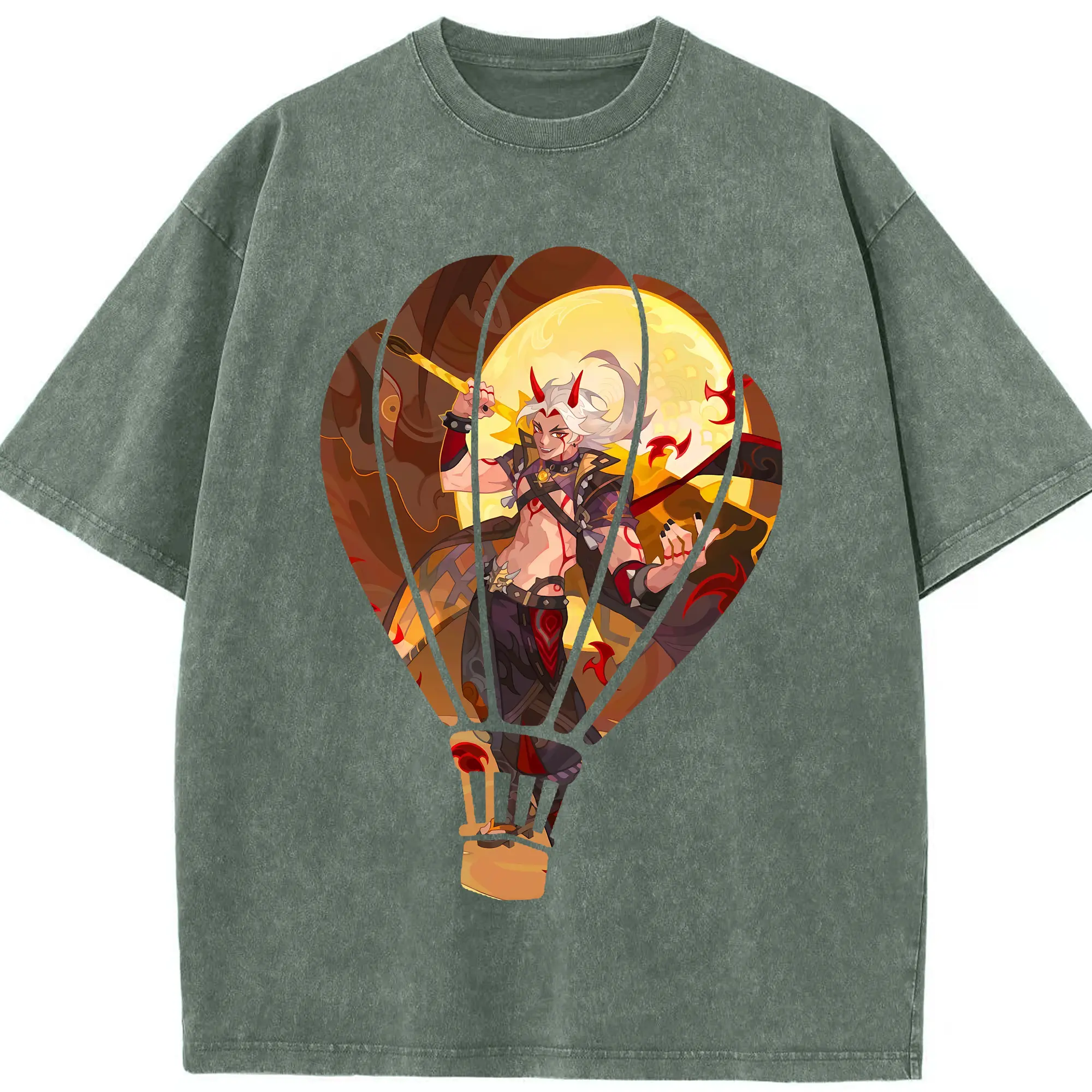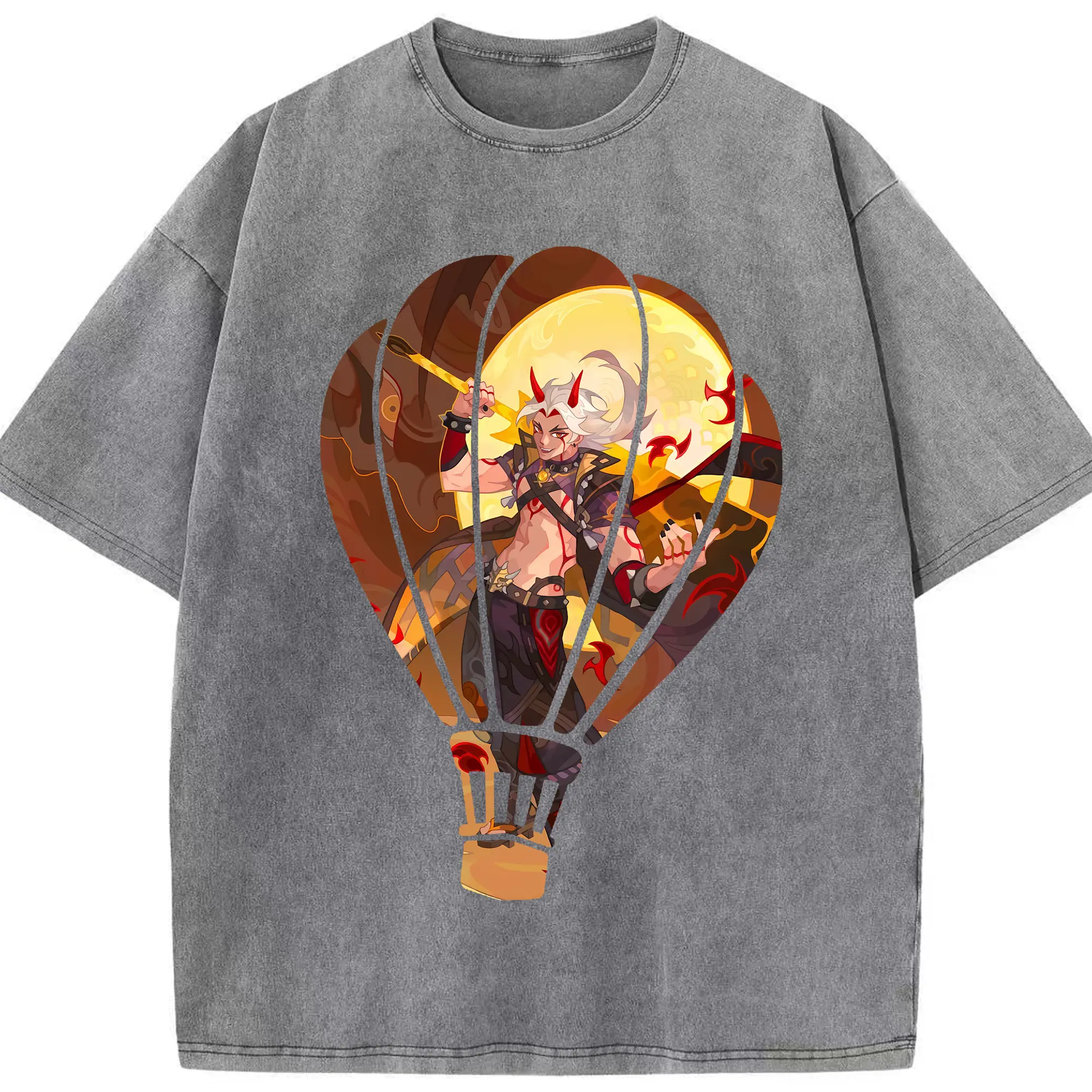 原 神 グッズ 荒瀧 一 斗 - 綿100% ヴィンテージ風 半袖Tシャツ ・ 背面プリント ・ 柔らか肌触り ・ 通気性 快適 ・ スポーツ カジュアル 外出用