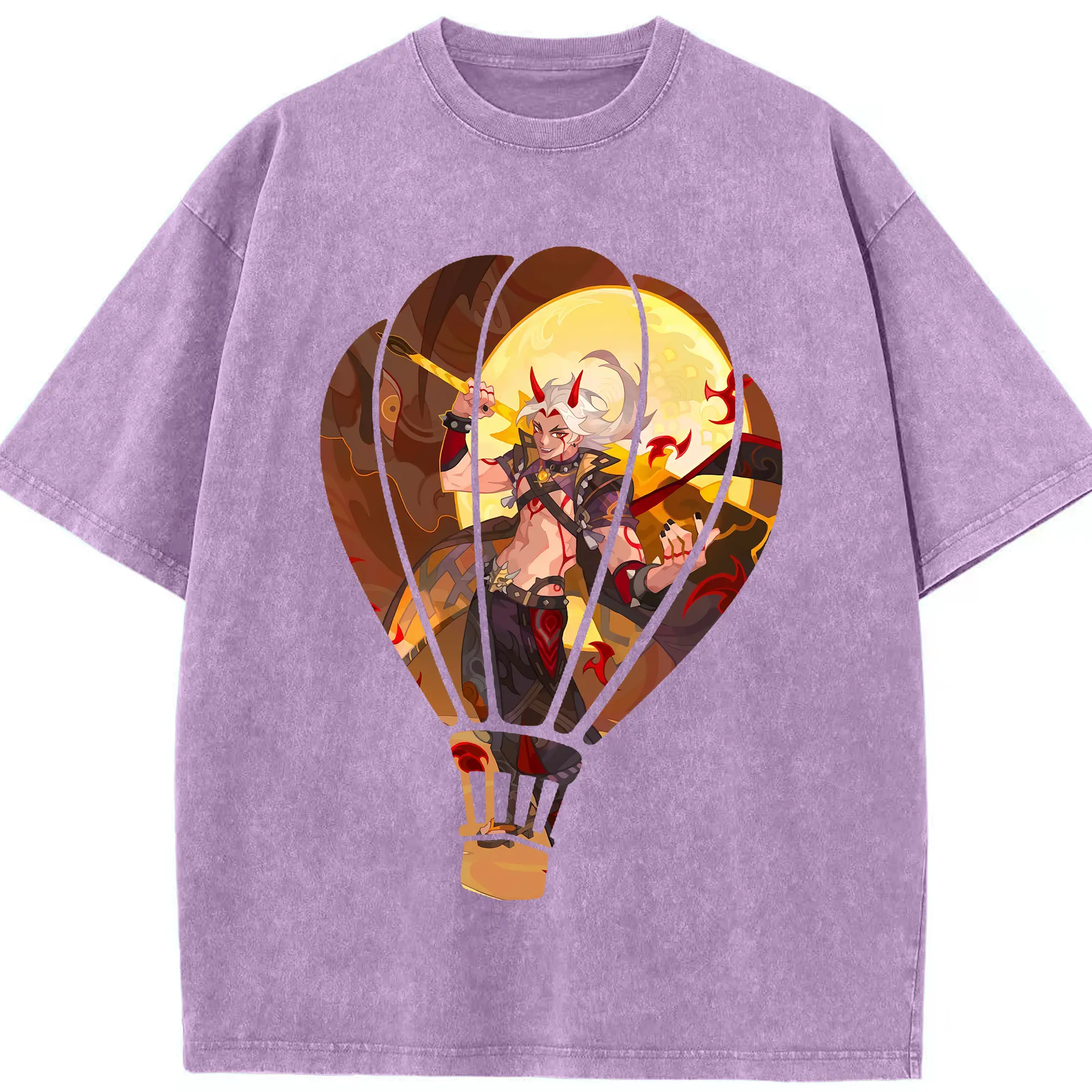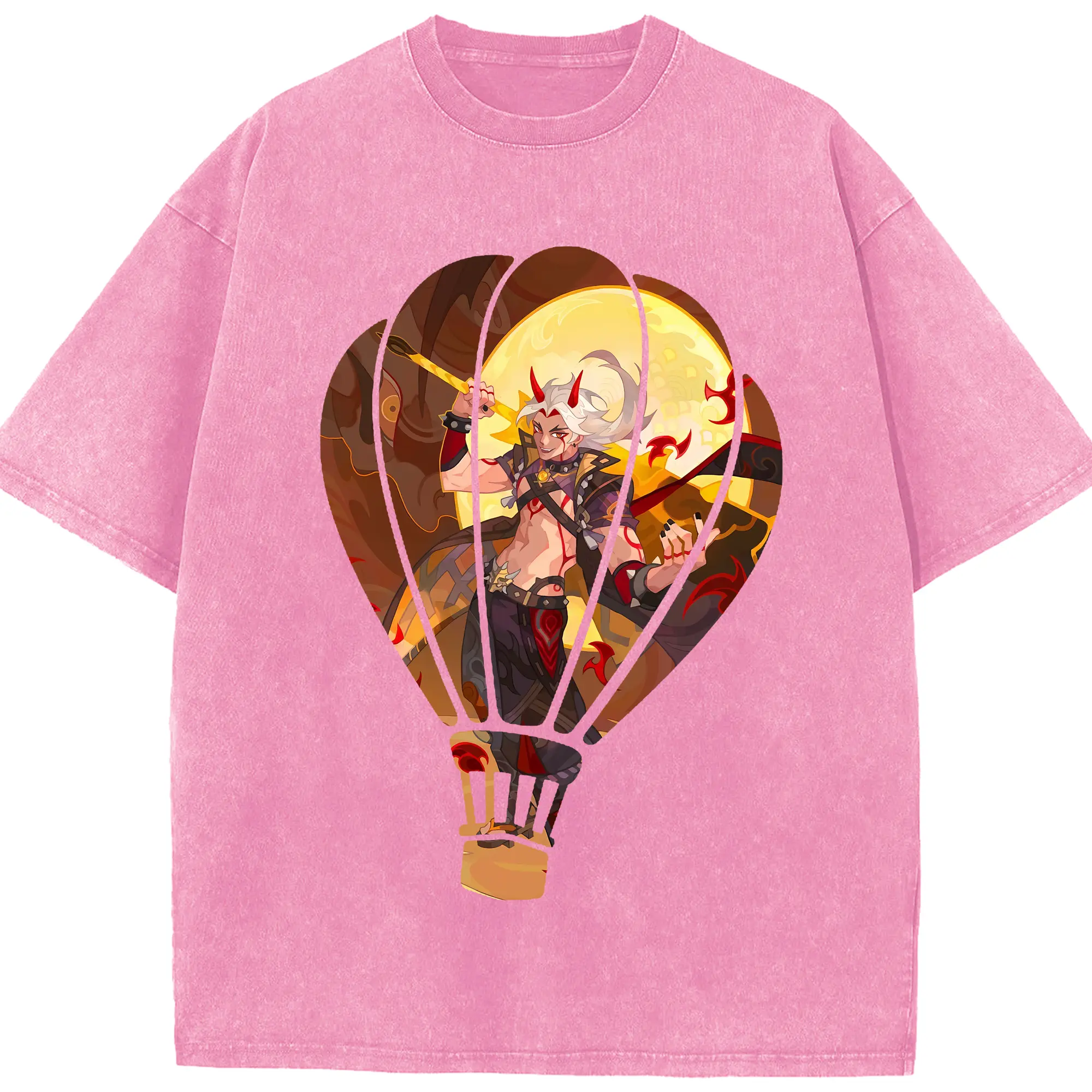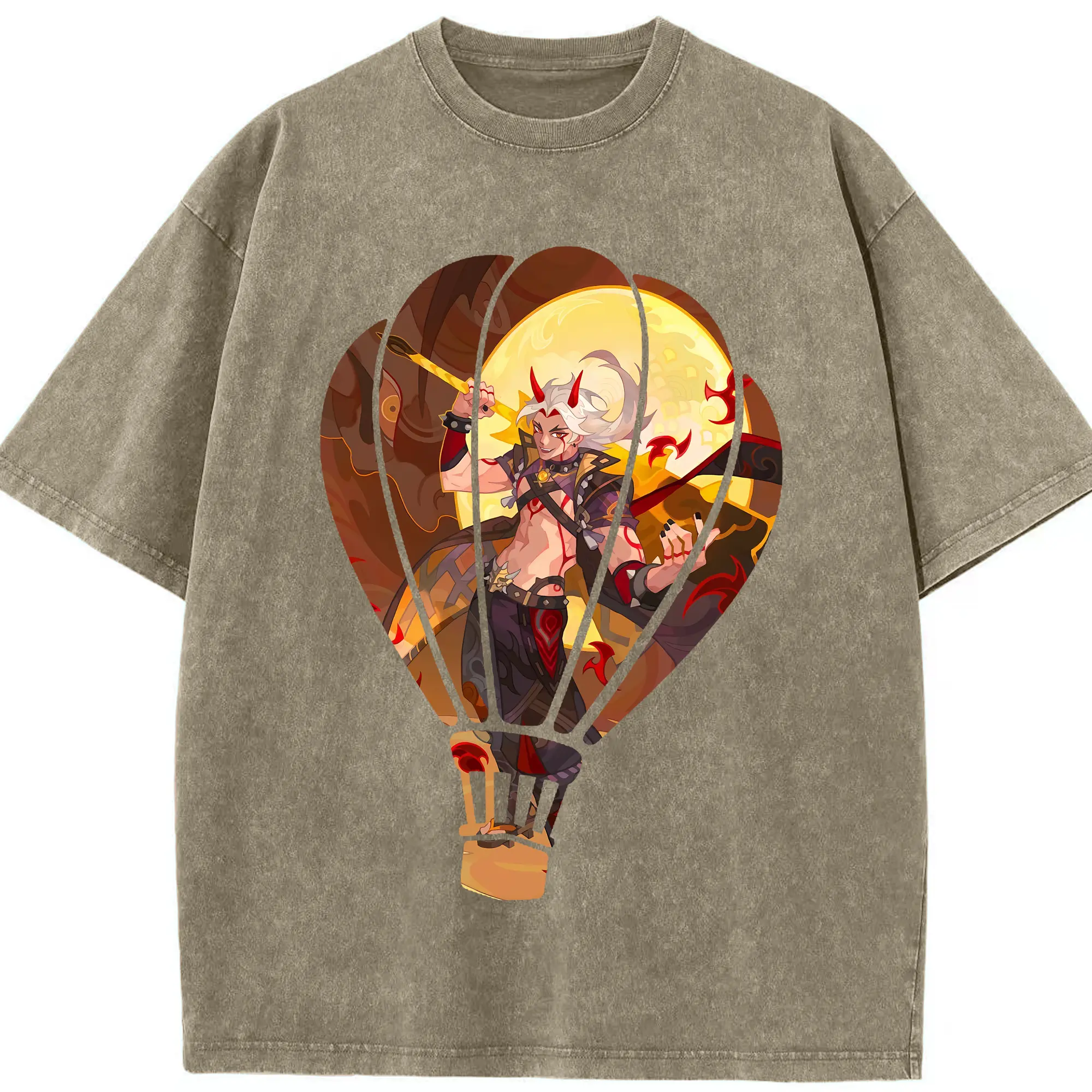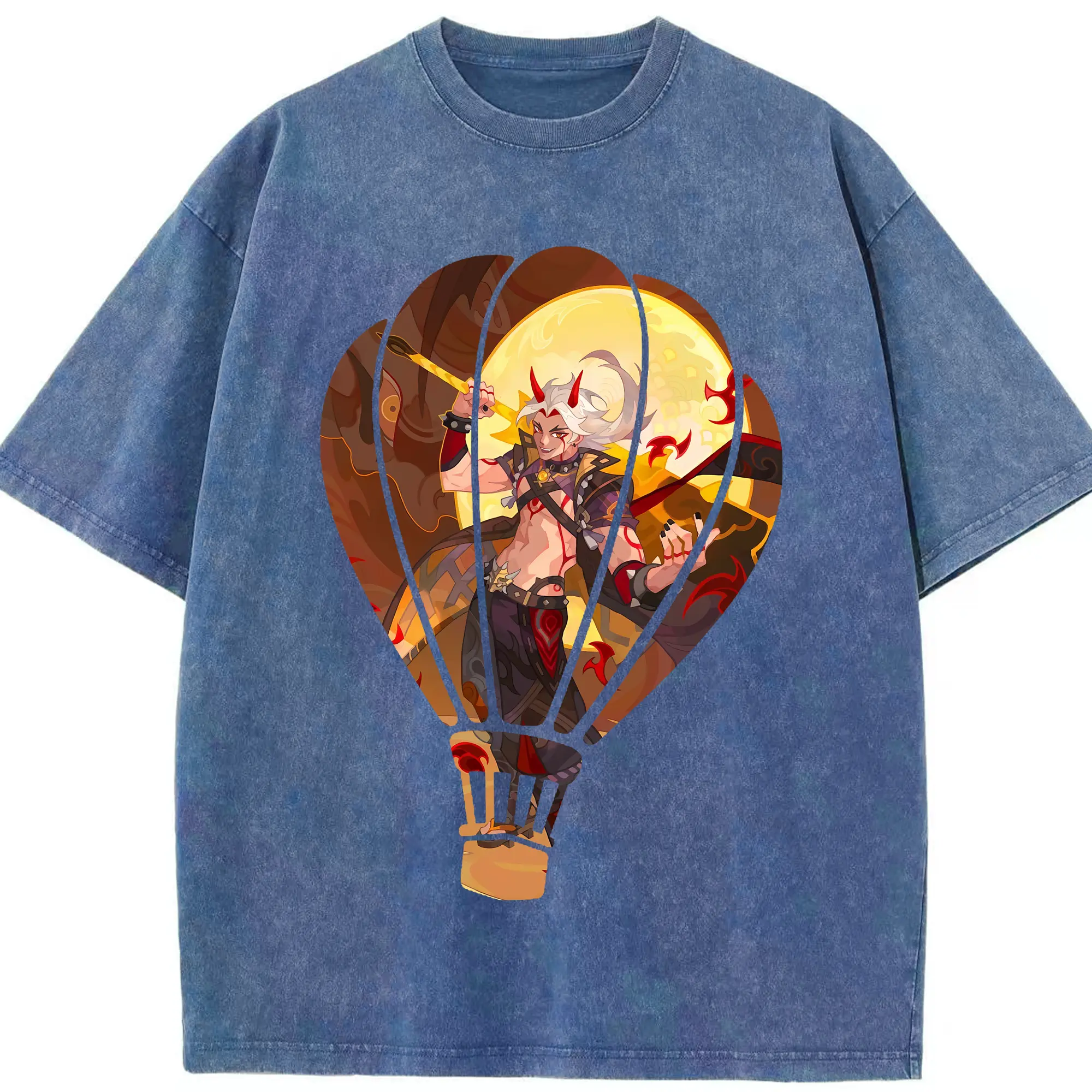 原 神 グッズ 荒瀧 一 斗 - 綿100% ヴィンテージ風 半袖Tシャツ ・ 背面プリント ・ 柔らか肌触り ・ 通気性 快適 ・ スポーツ カジュアル 外出用