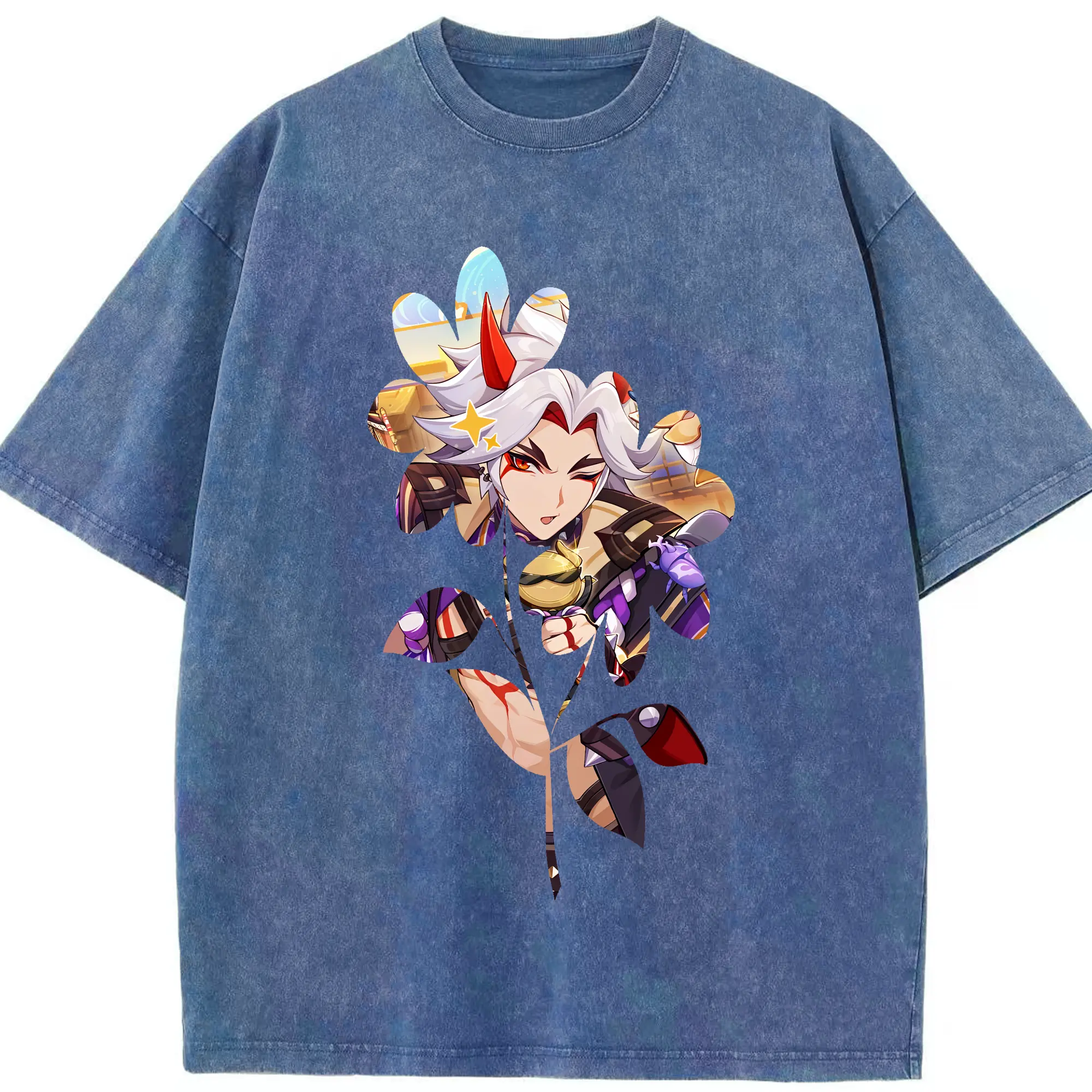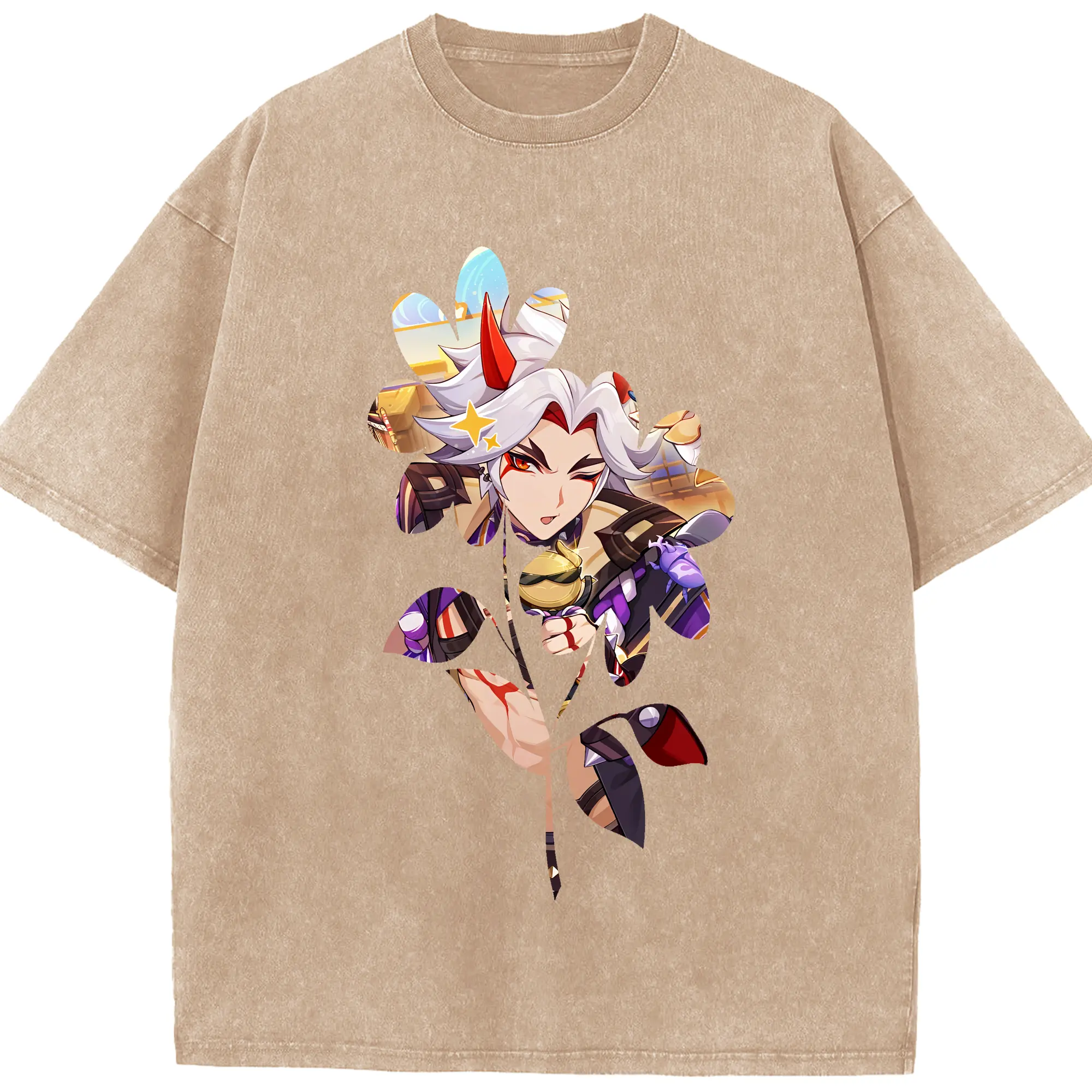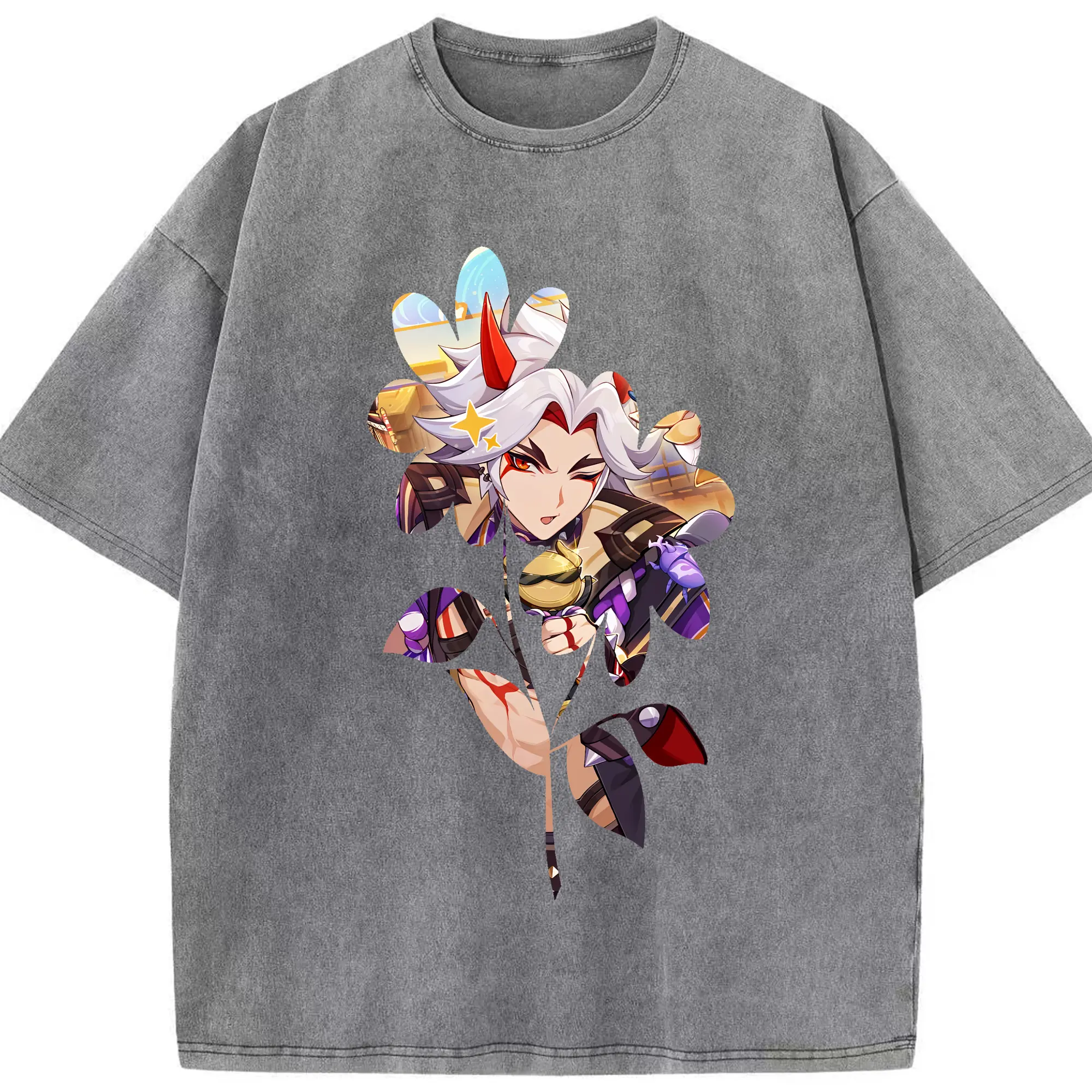 鳴潮 グッズ アンコ - 綿100% ヴィンテージ風 半袖Tシャツ ・ フロントプリント ・ 柔らか肌触り ・ 通気性 快適 ・ スポーツ カジュアル 外出用