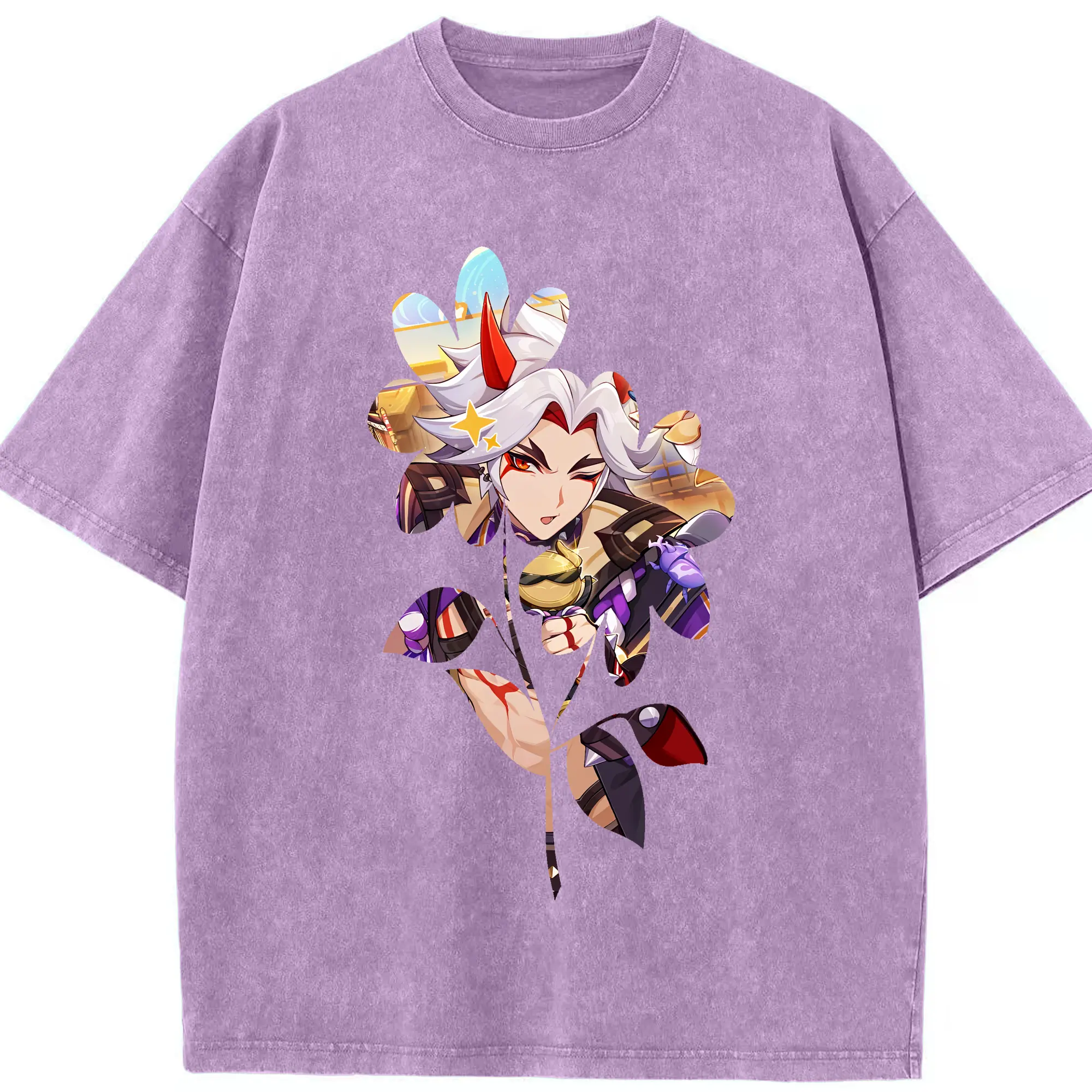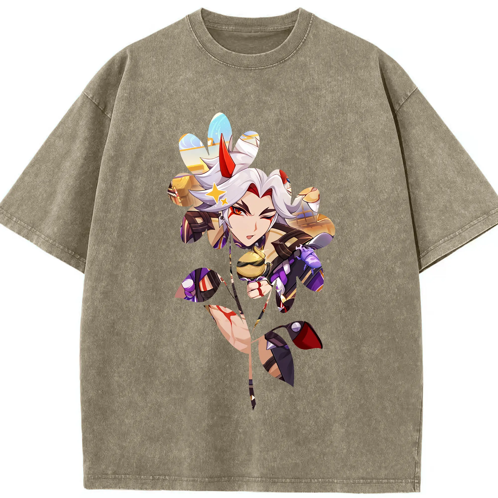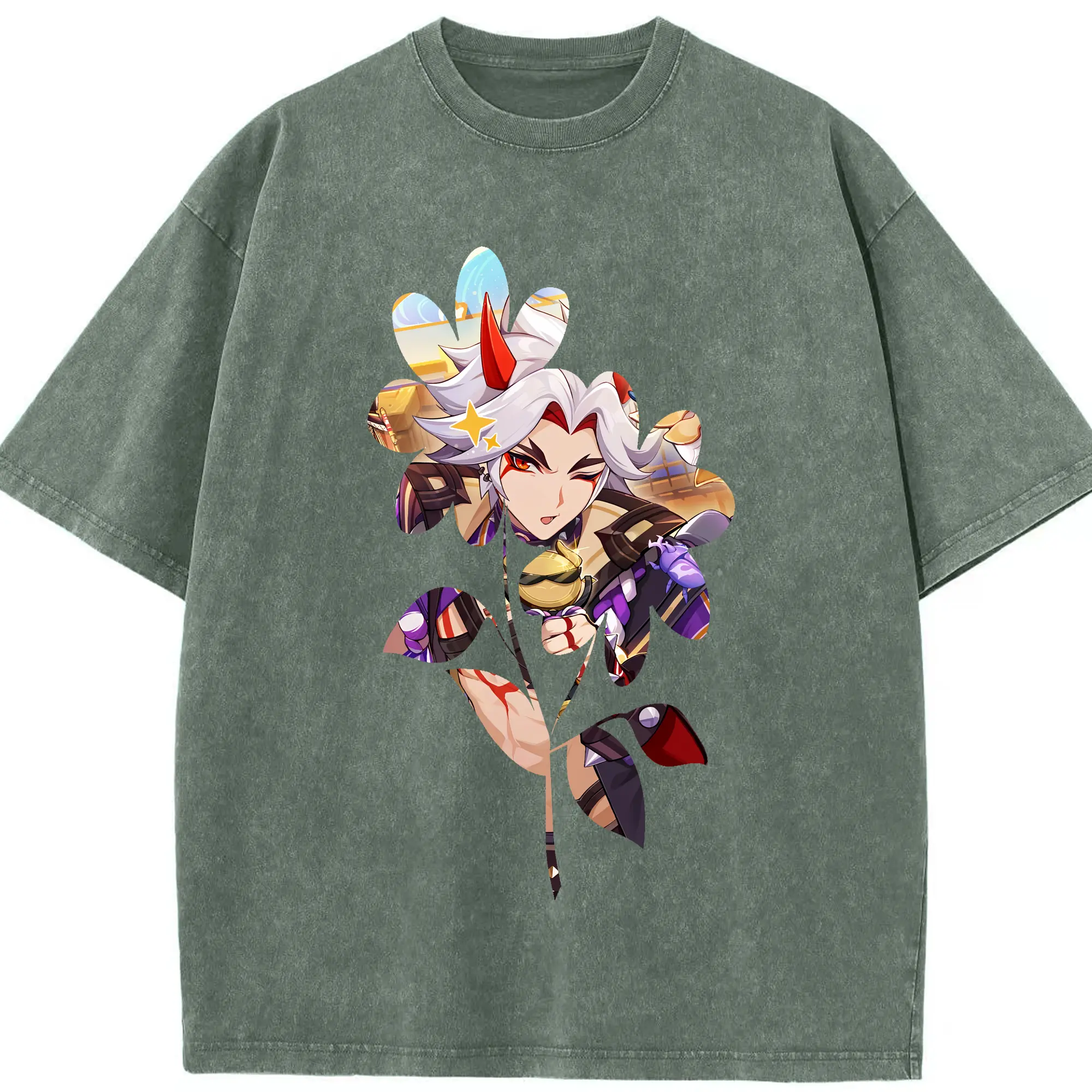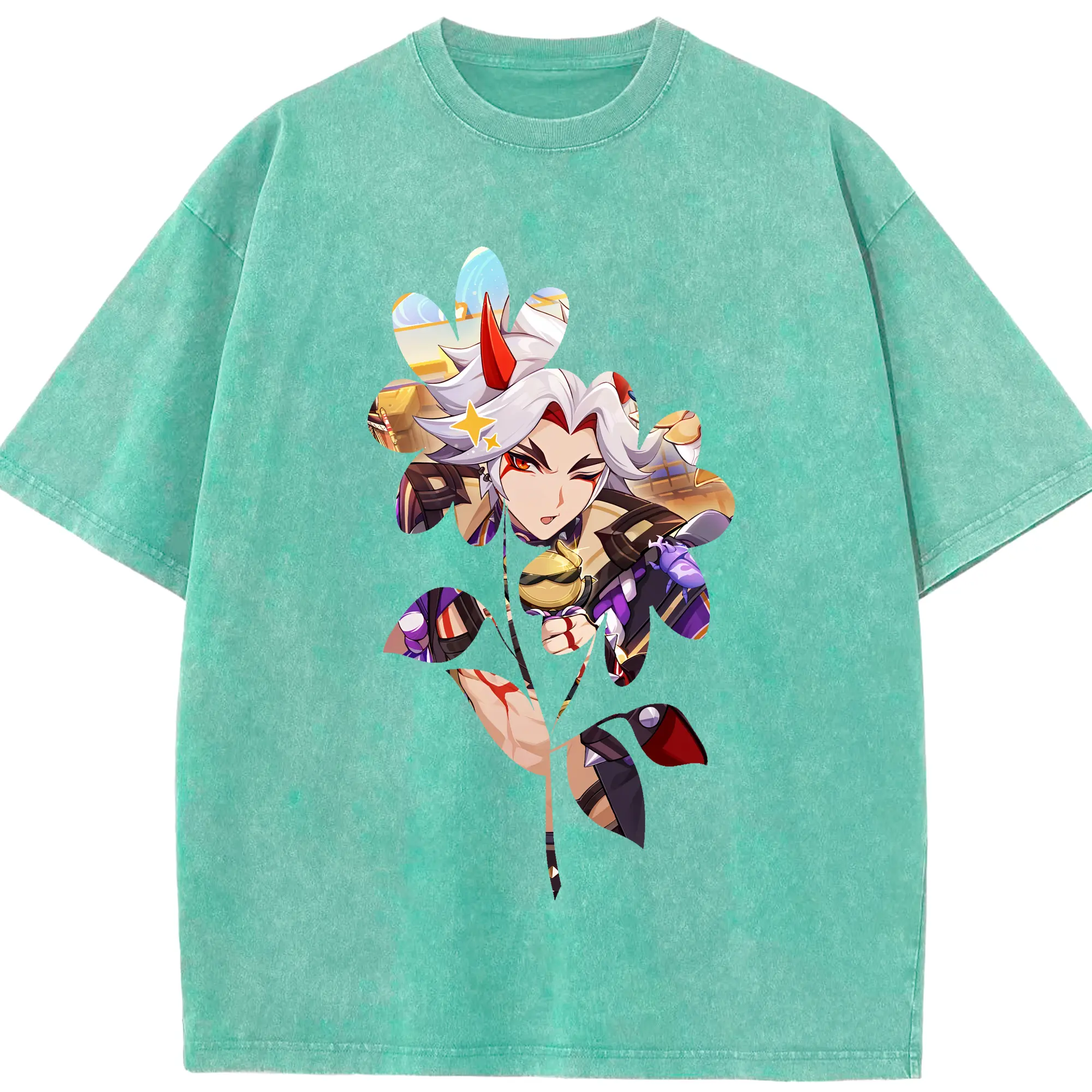 鳴潮 グッズ アンコ - 綿100% ヴィンテージ風 半袖Tシャツ ・ フロントプリント ・ 柔らか肌触り ・ 通気性 快適 ・ スポーツ カジュアル 外出用