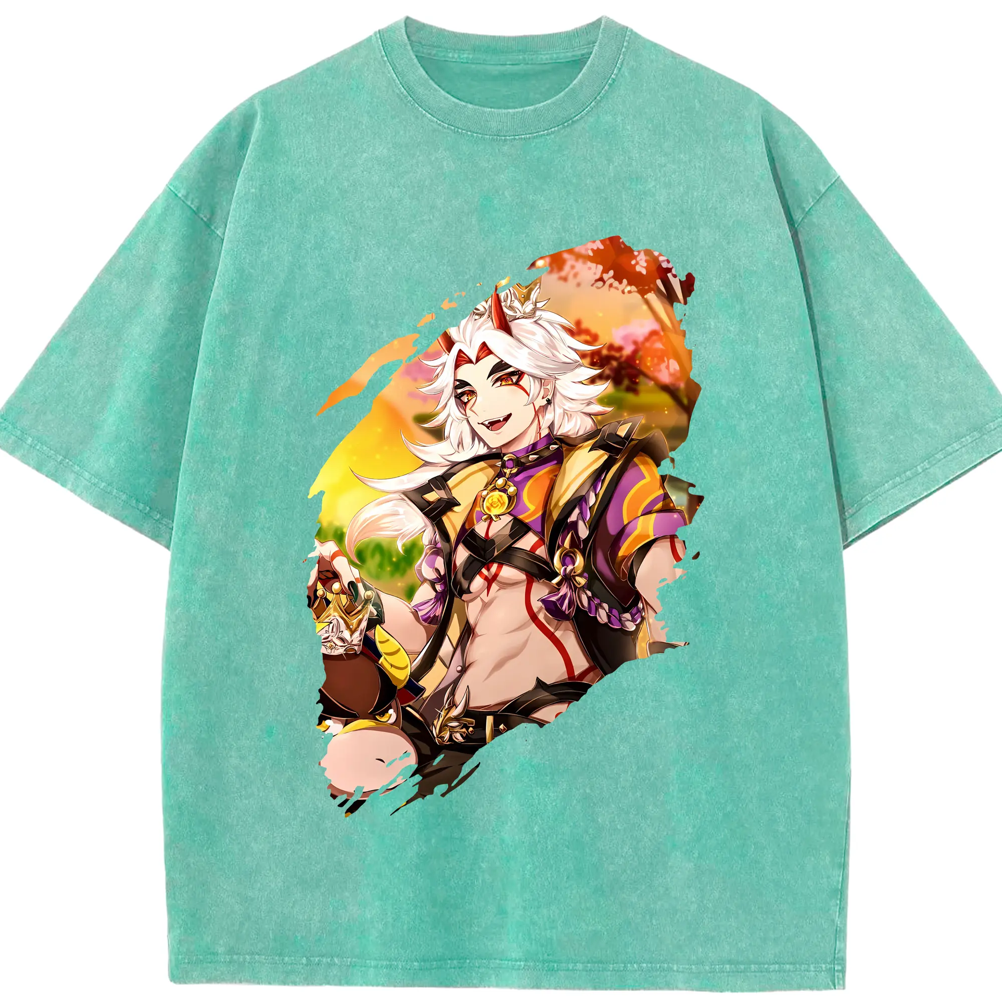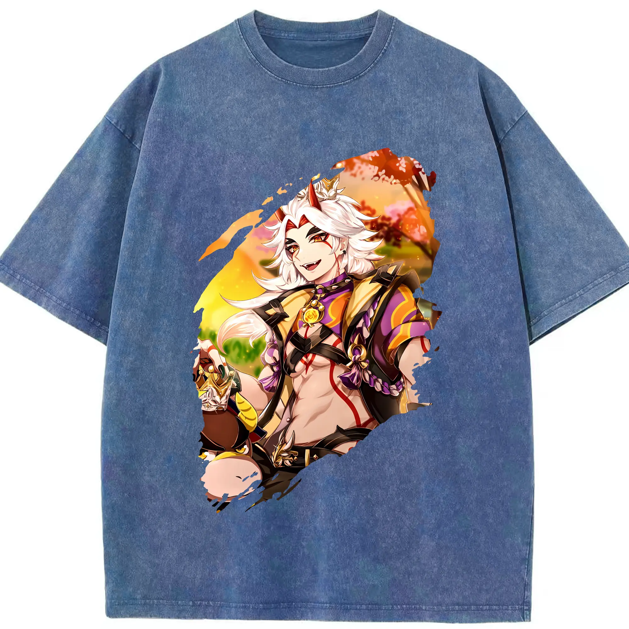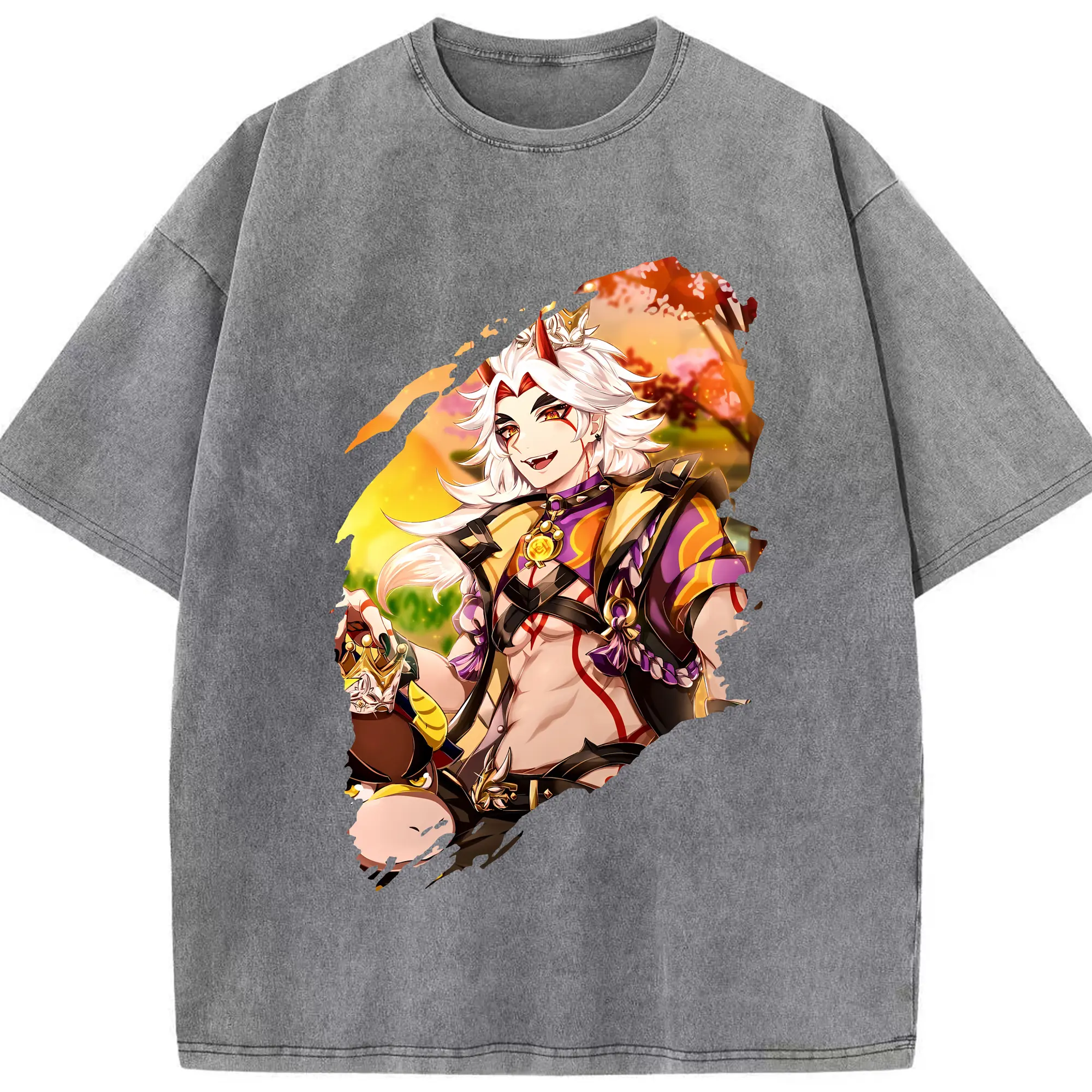 原 神 グッズ 荒瀧 一 斗 - 綿100% ヴィンテージ風 半袖Tシャツ ・ 背面プリント ・ 柔らか肌触り ・ 通気性 快適 ・ スポーツ カジュアル 外出用