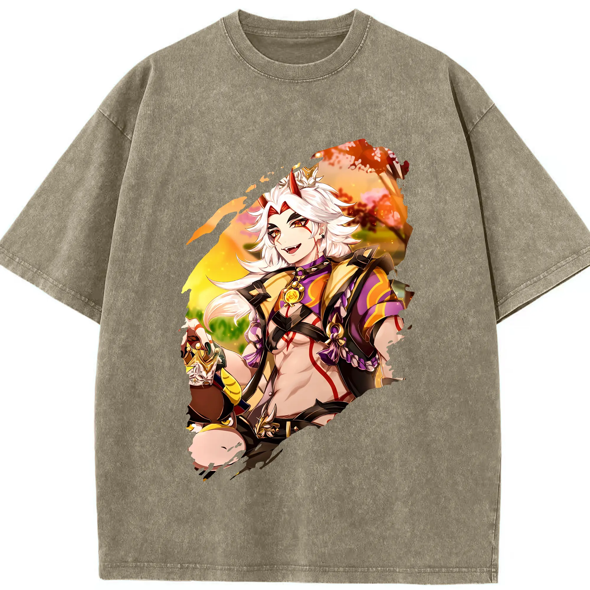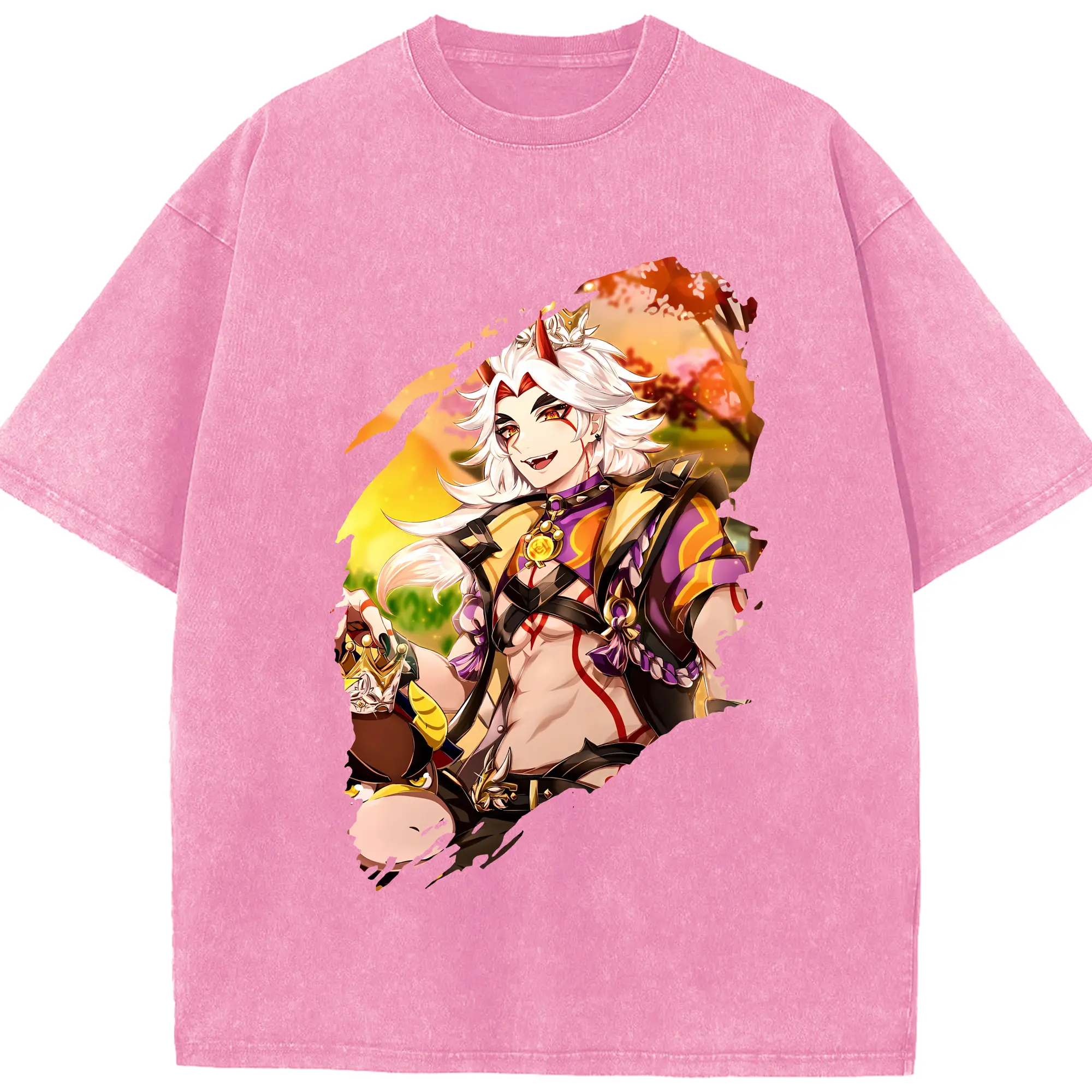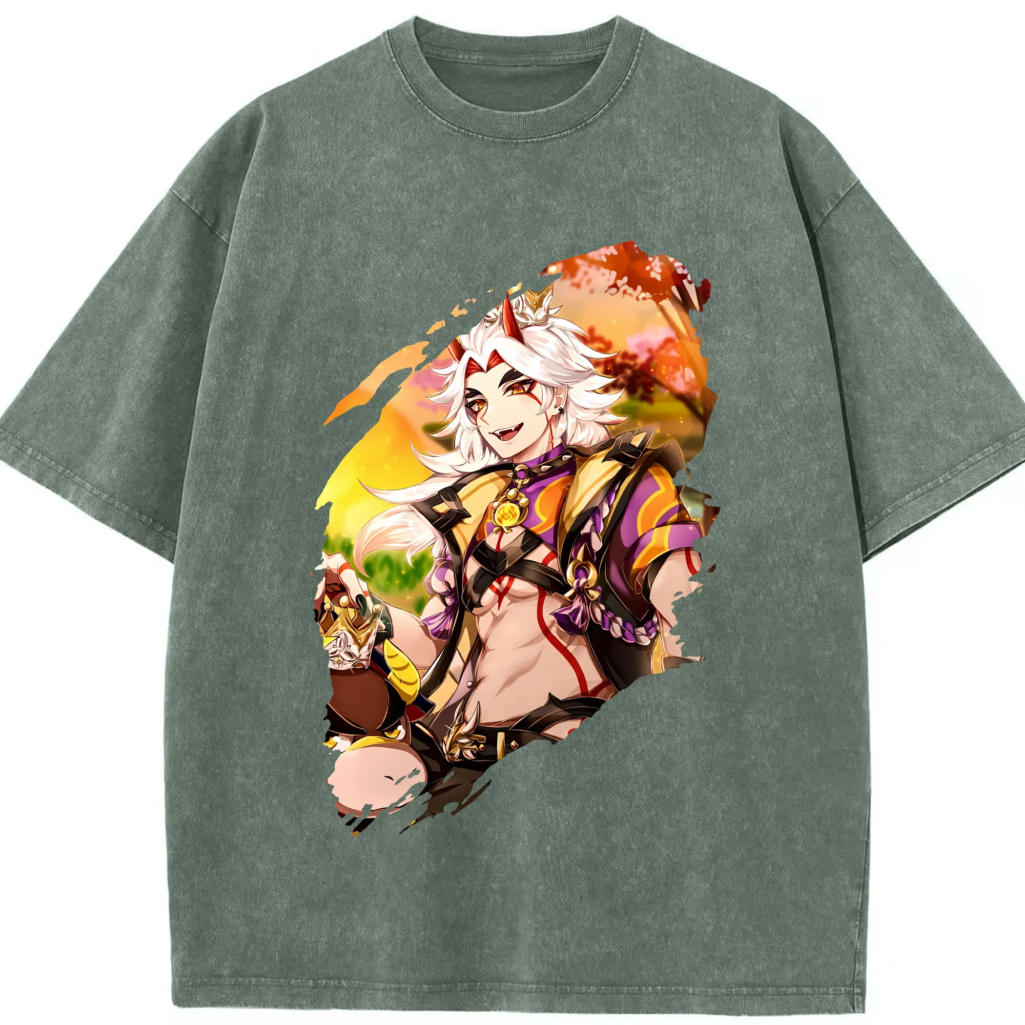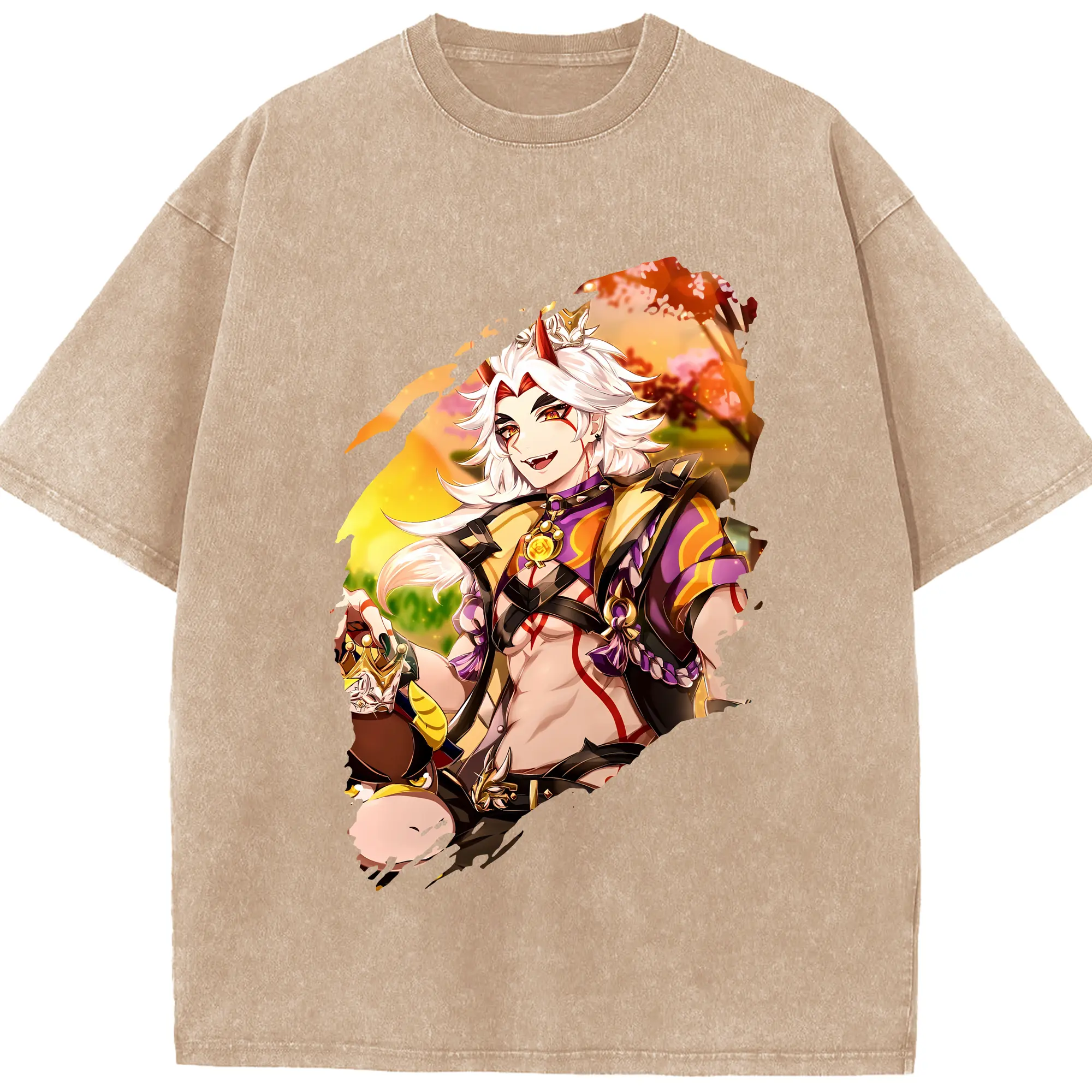 原 神 グッズ 荒瀧 一 斗 - 綿100% ヴィンテージ風 半袖Tシャツ ・ 背面プリント ・ 柔らか肌触り ・ 通気性 快適 ・ スポーツ カジュアル 外出用