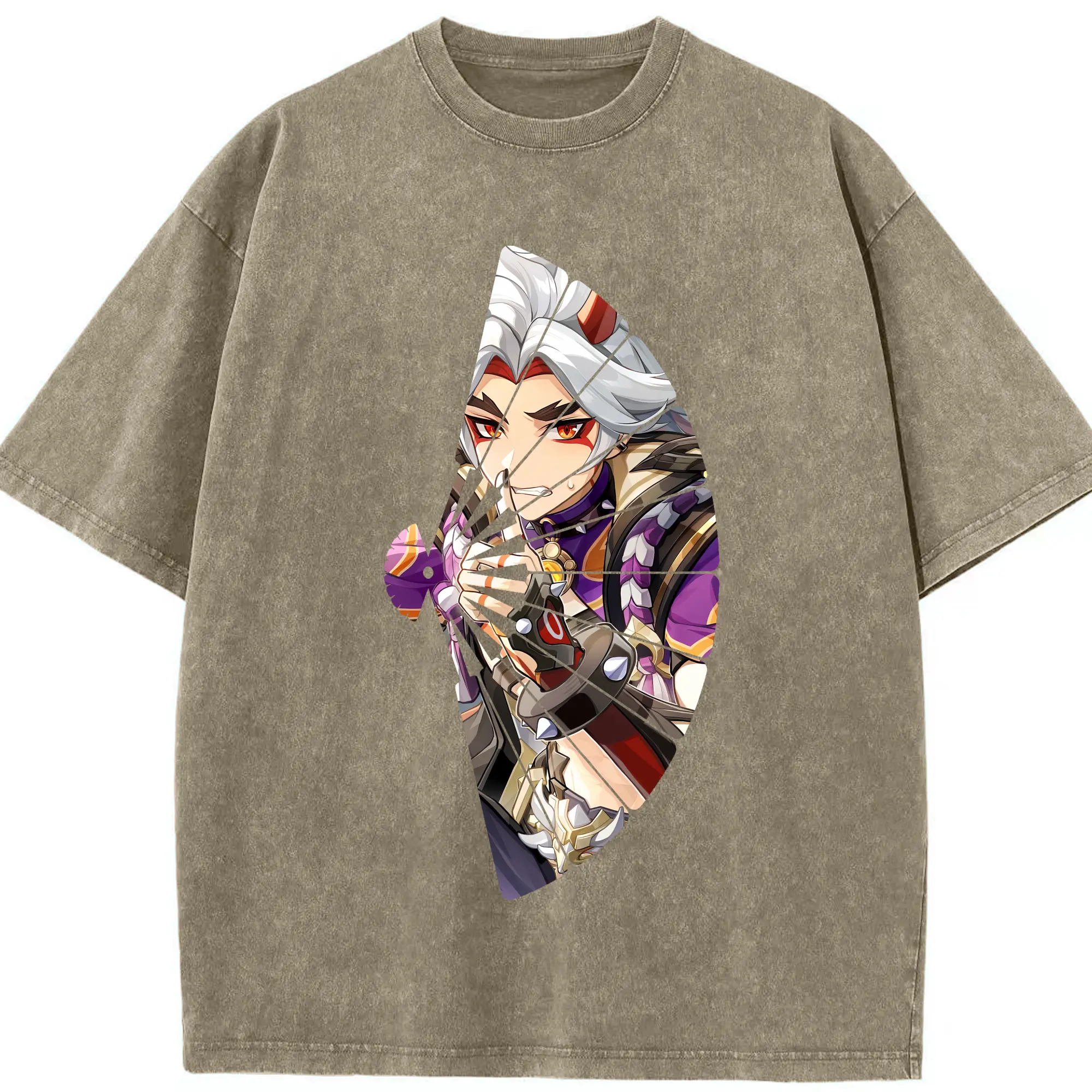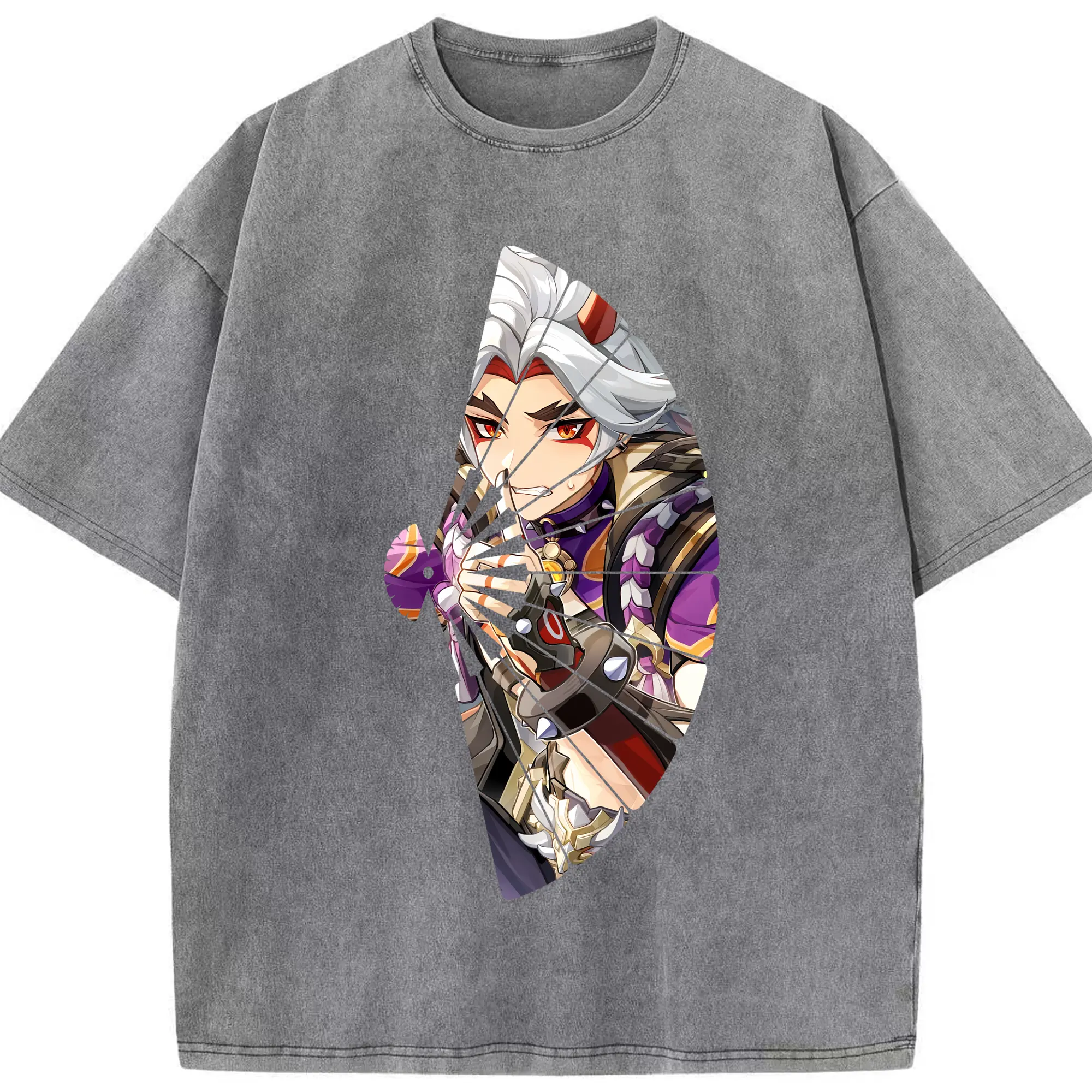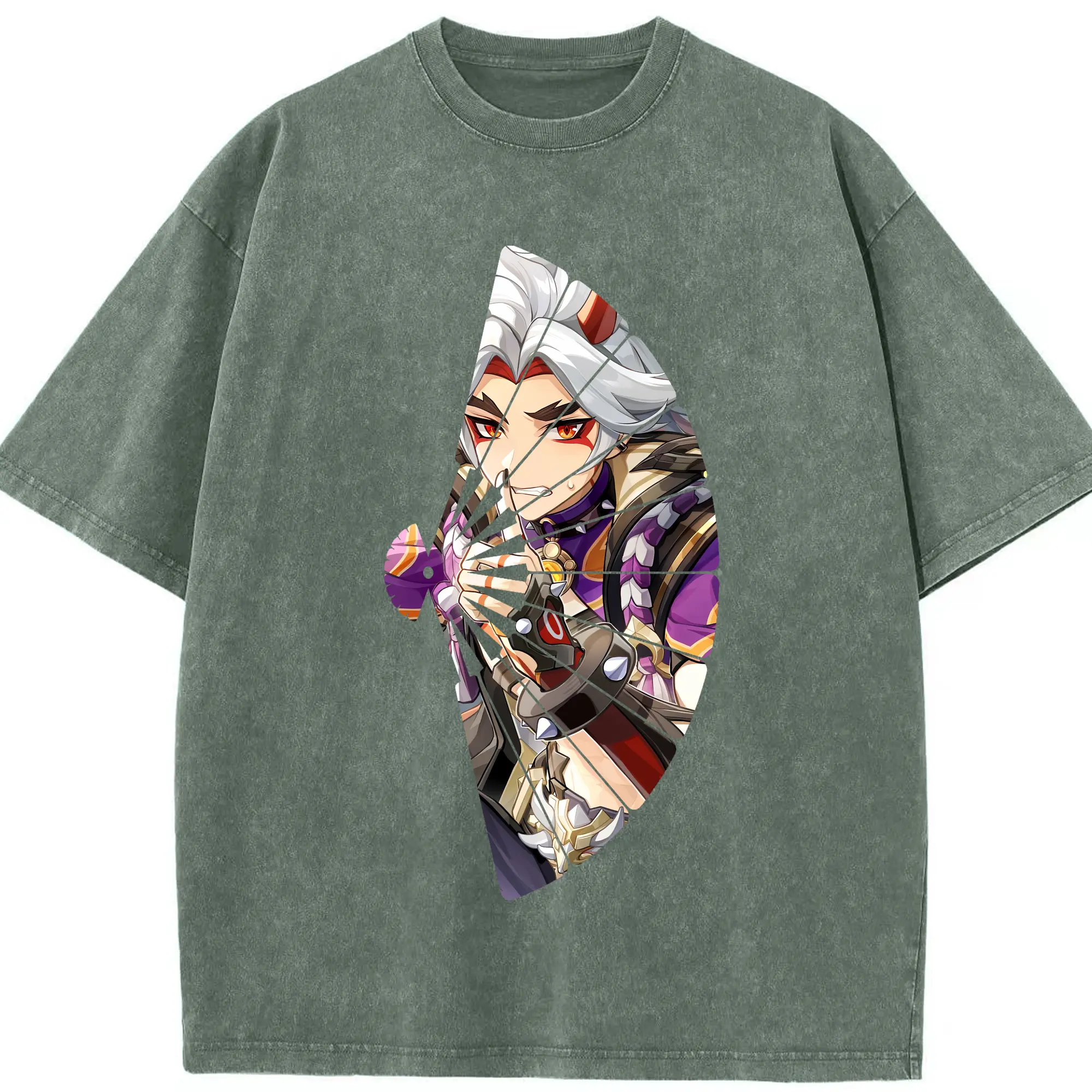 原 神 グッズ 荒瀧 一 斗 - 綿100% ヴィンテージ風 半袖Tシャツ ・ 背面プリント ・ 柔らか肌触り ・ 通気性 快適 ・ スポーツ カジュアル 外出用