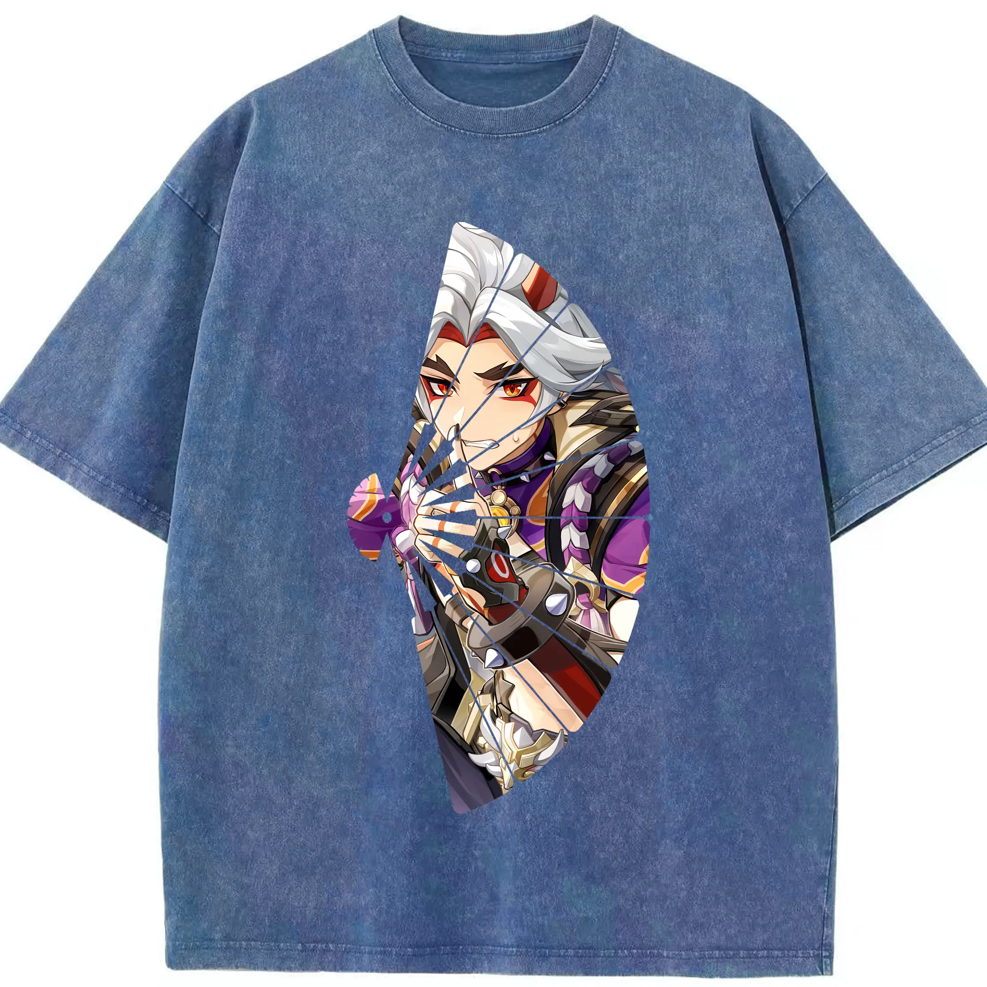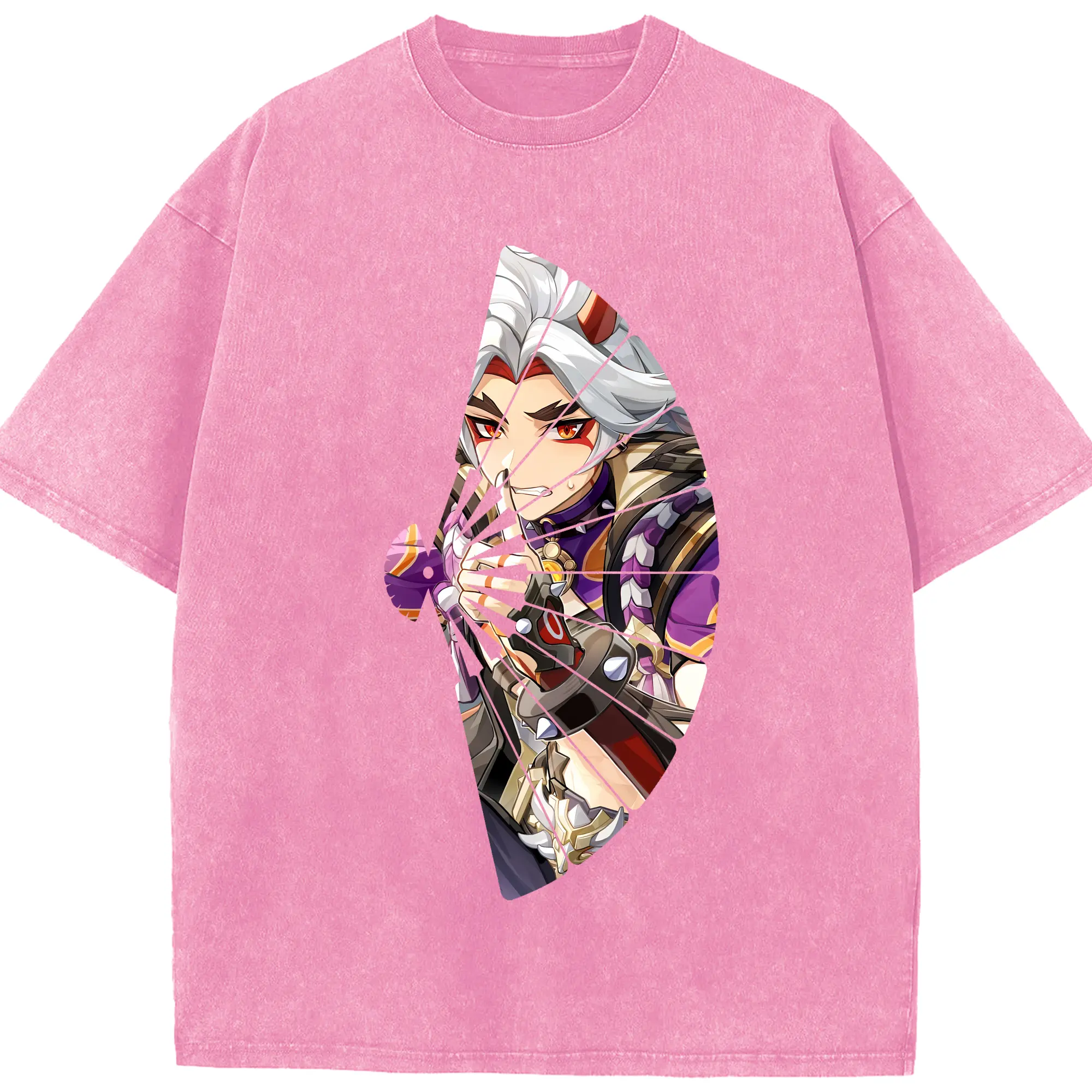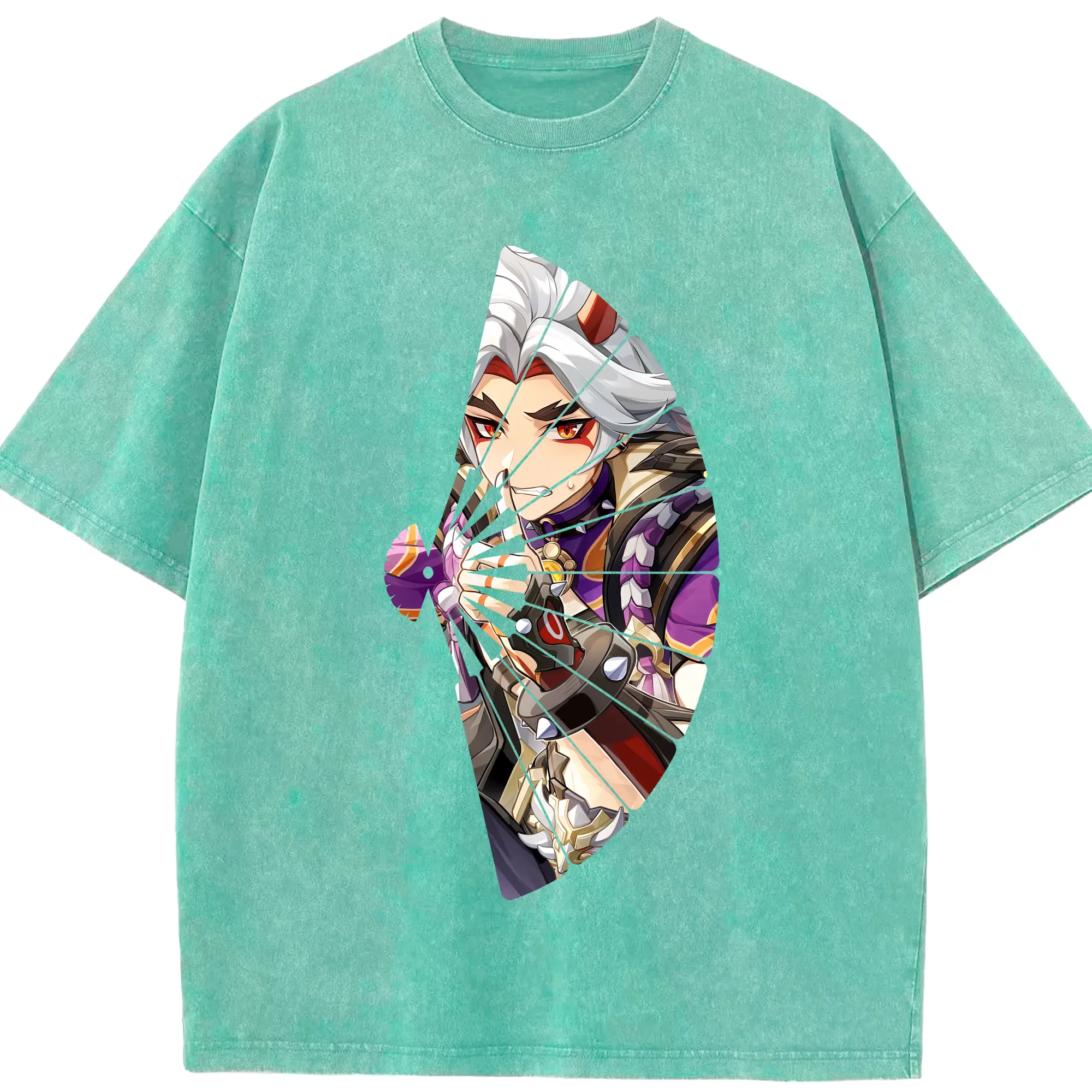 原 神 グッズ 荒瀧 一 斗 - 綿100% ヴィンテージ風 半袖Tシャツ ・ 背面プリント ・ 柔らか肌触り ・ 通気性 快適 ・ スポーツ カジュアル 外出用