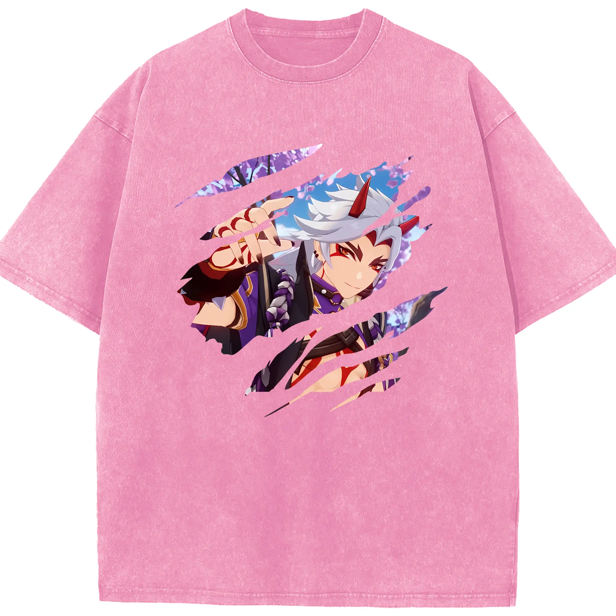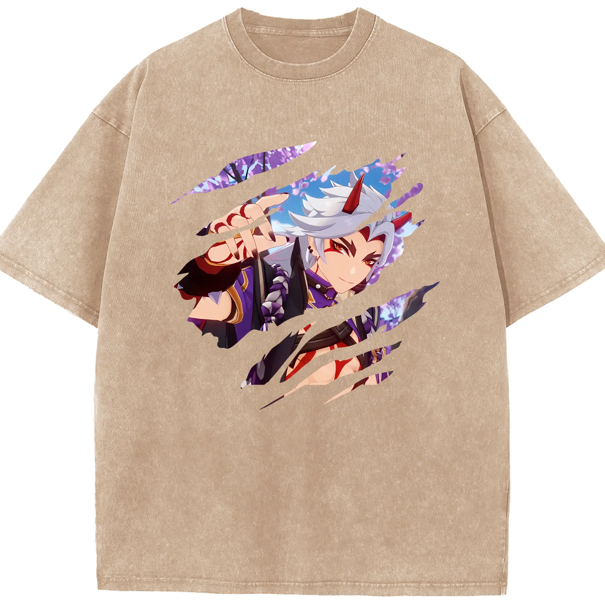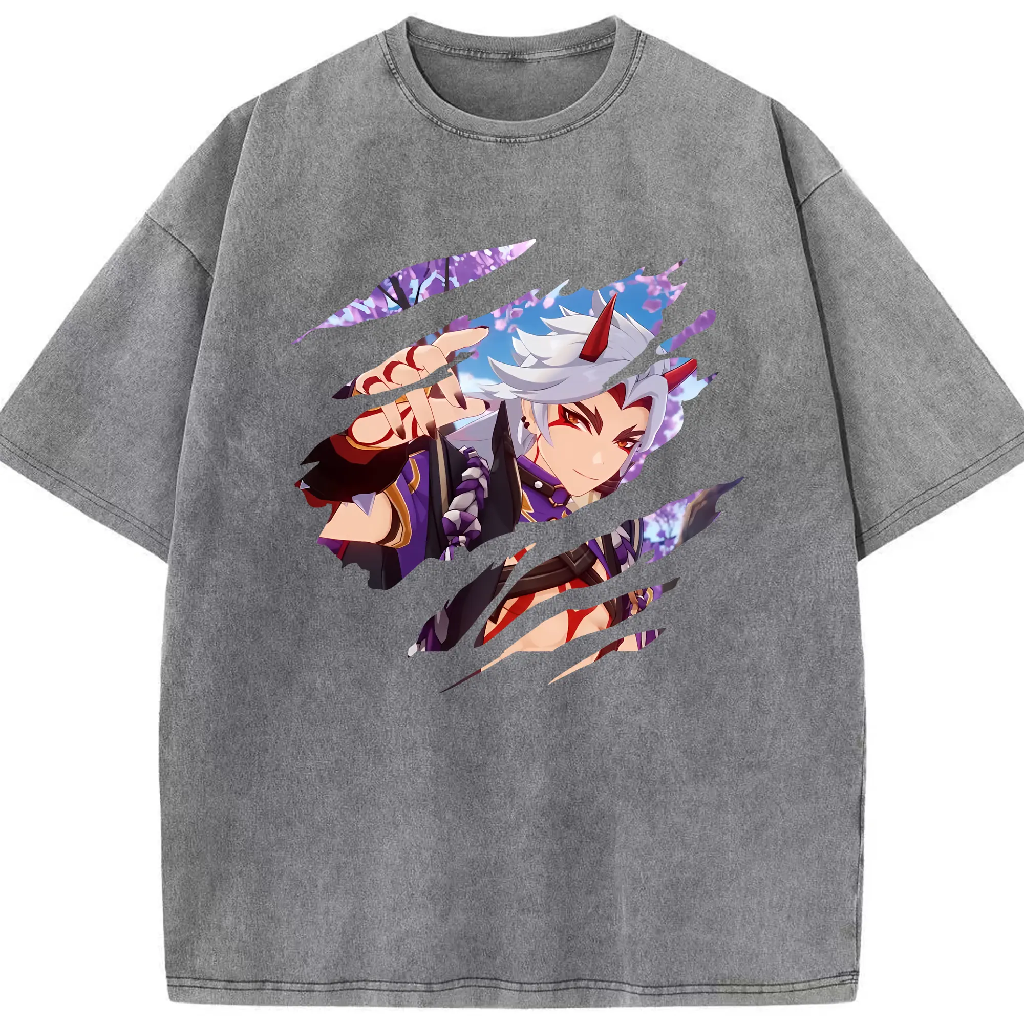 原 神 グッズ 荒瀧 一 斗 - 綿100% ヴィンテージ風 半袖Tシャツ ・ 背面プリント ・ 柔らか肌触り ・ 通気性 快適 ・ スポーツ カジュアル 外出用