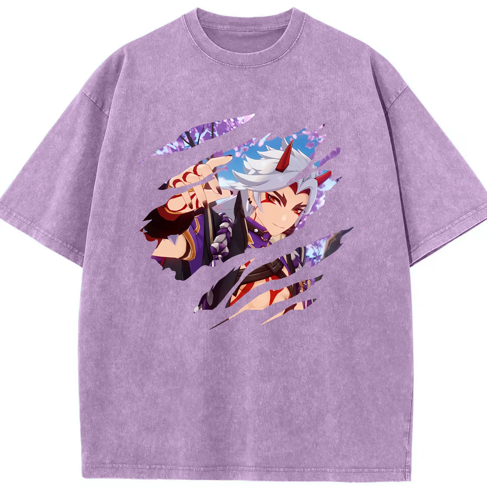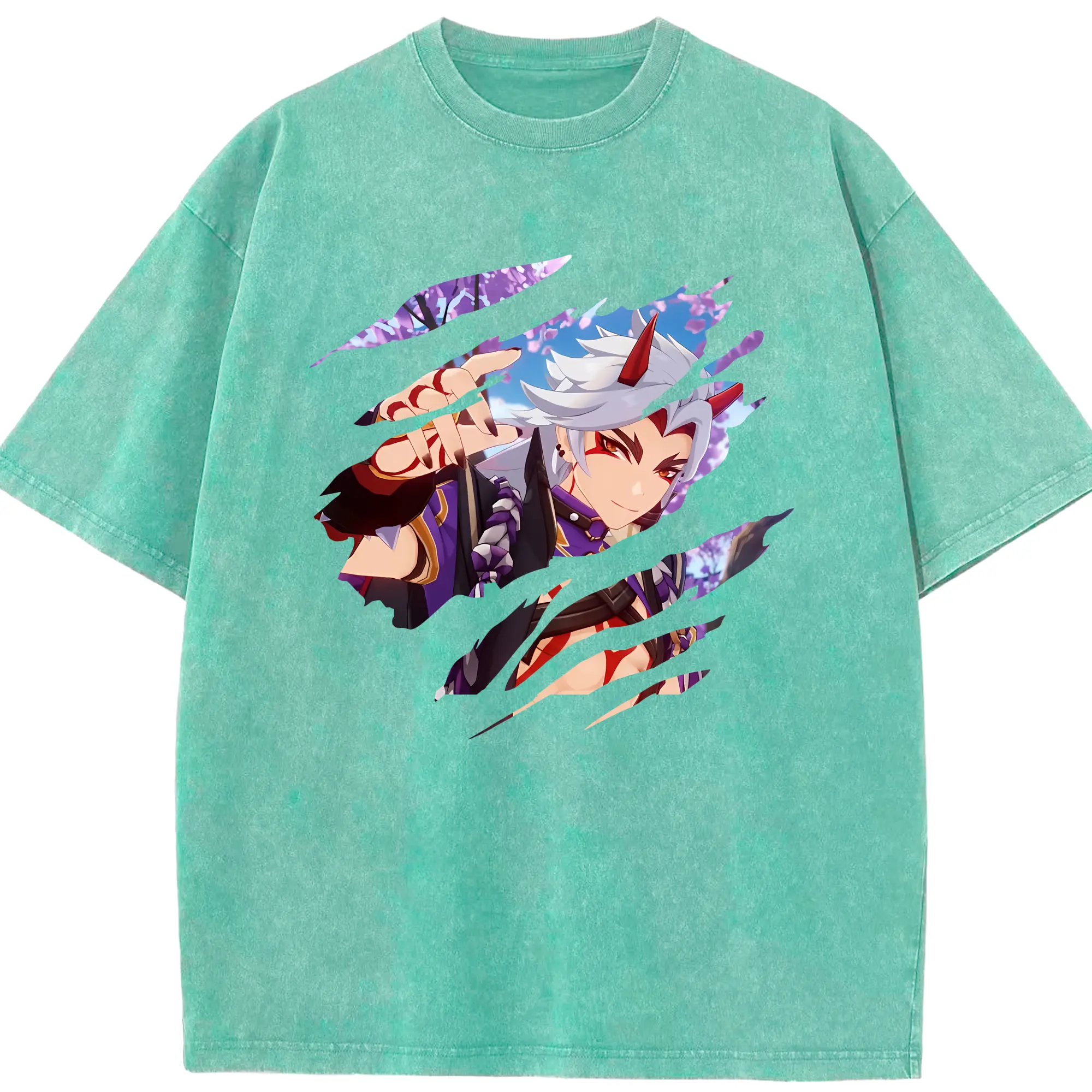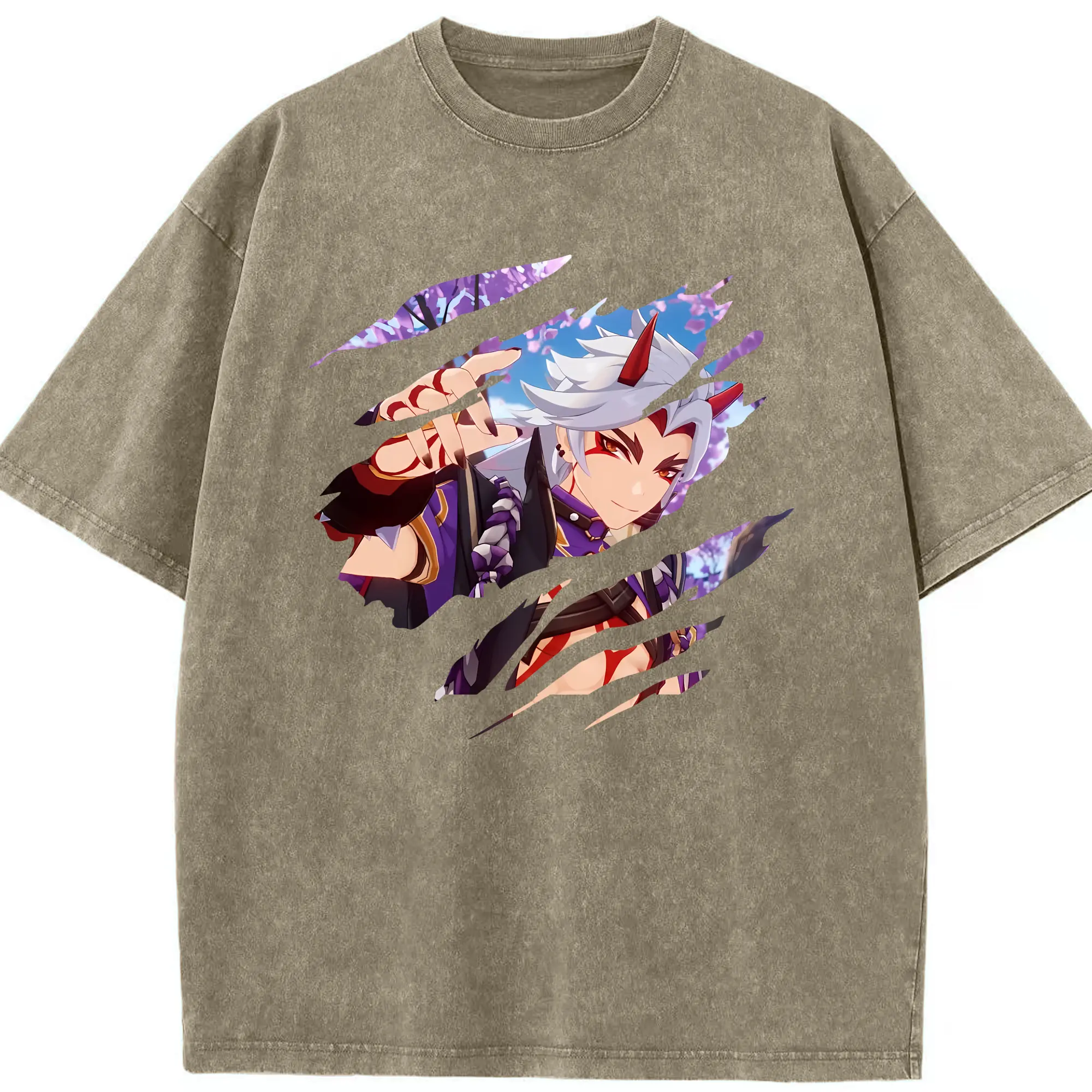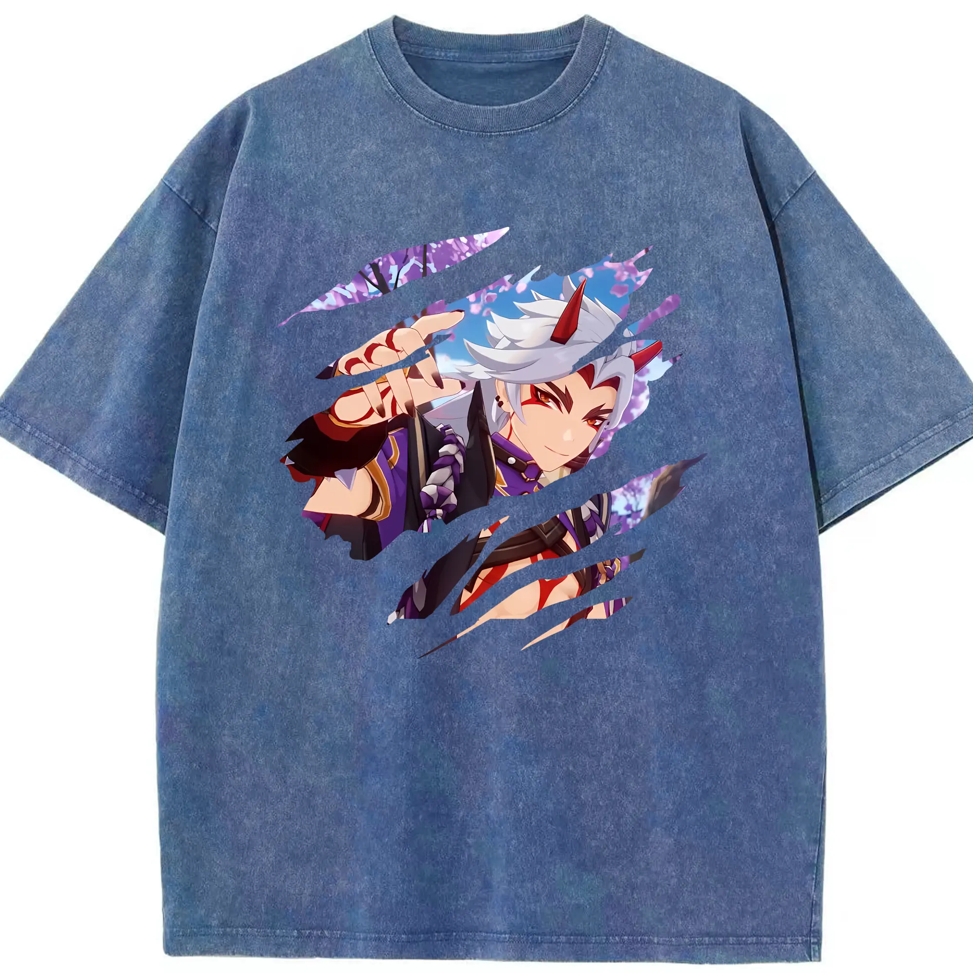 原 神 グッズ 荒瀧 一 斗 - 綿100% ヴィンテージ風 半袖Tシャツ ・ 背面プリント ・ 柔らか肌触り ・ 通気性 快適 ・ スポーツ カジュアル 外出用