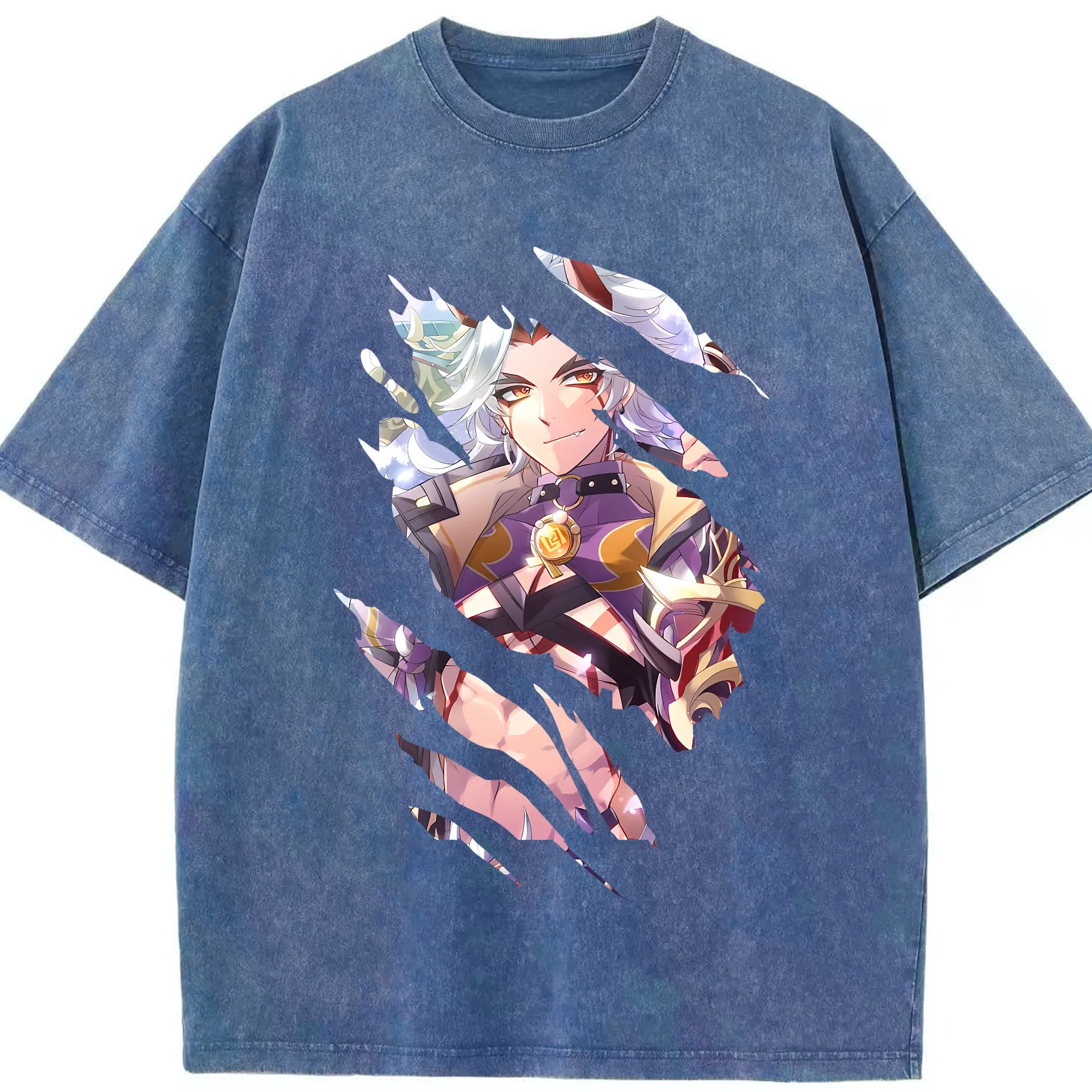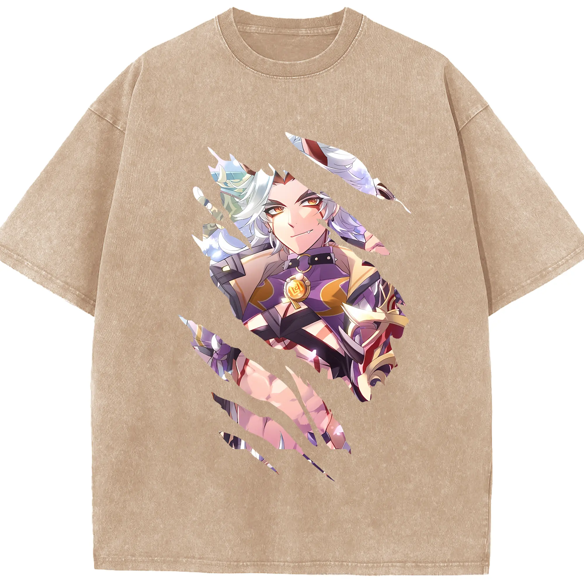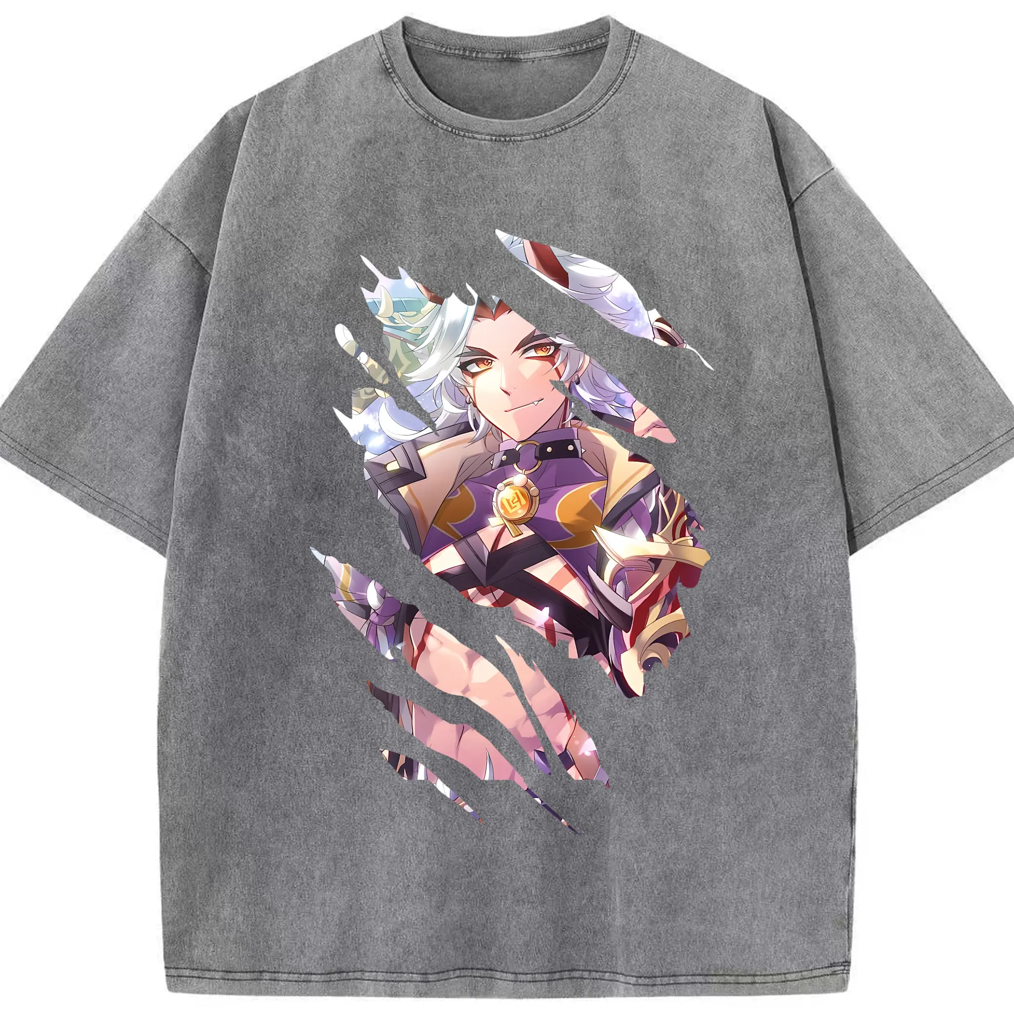原 神 グッズ 荒瀧 一 斗 - 綿100% ヴィンテージ風 半袖Tシャツ ・ 背面プリント ・ 柔らか肌触り ・ 通気性 快適 ・ スポーツ カジュアル 外出用