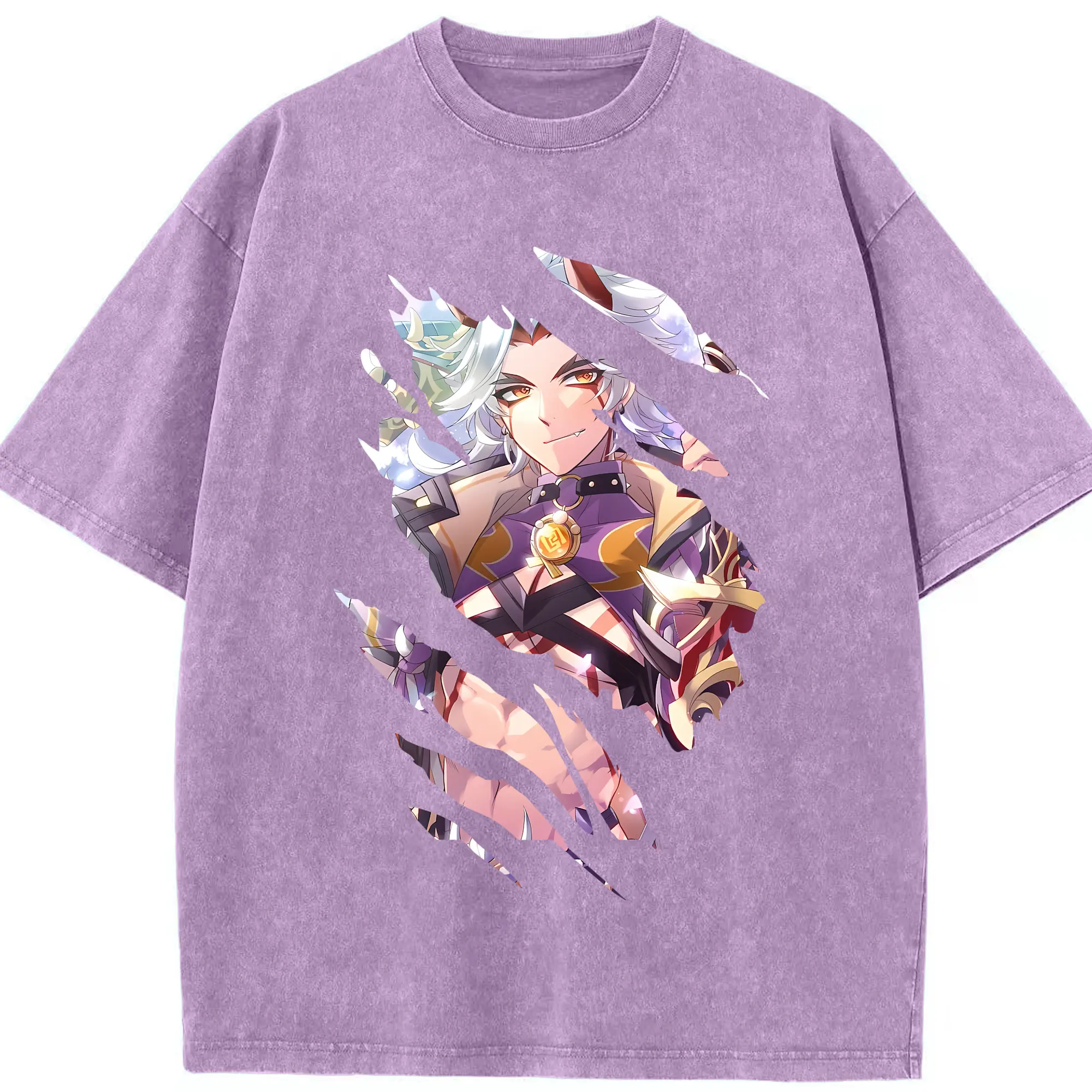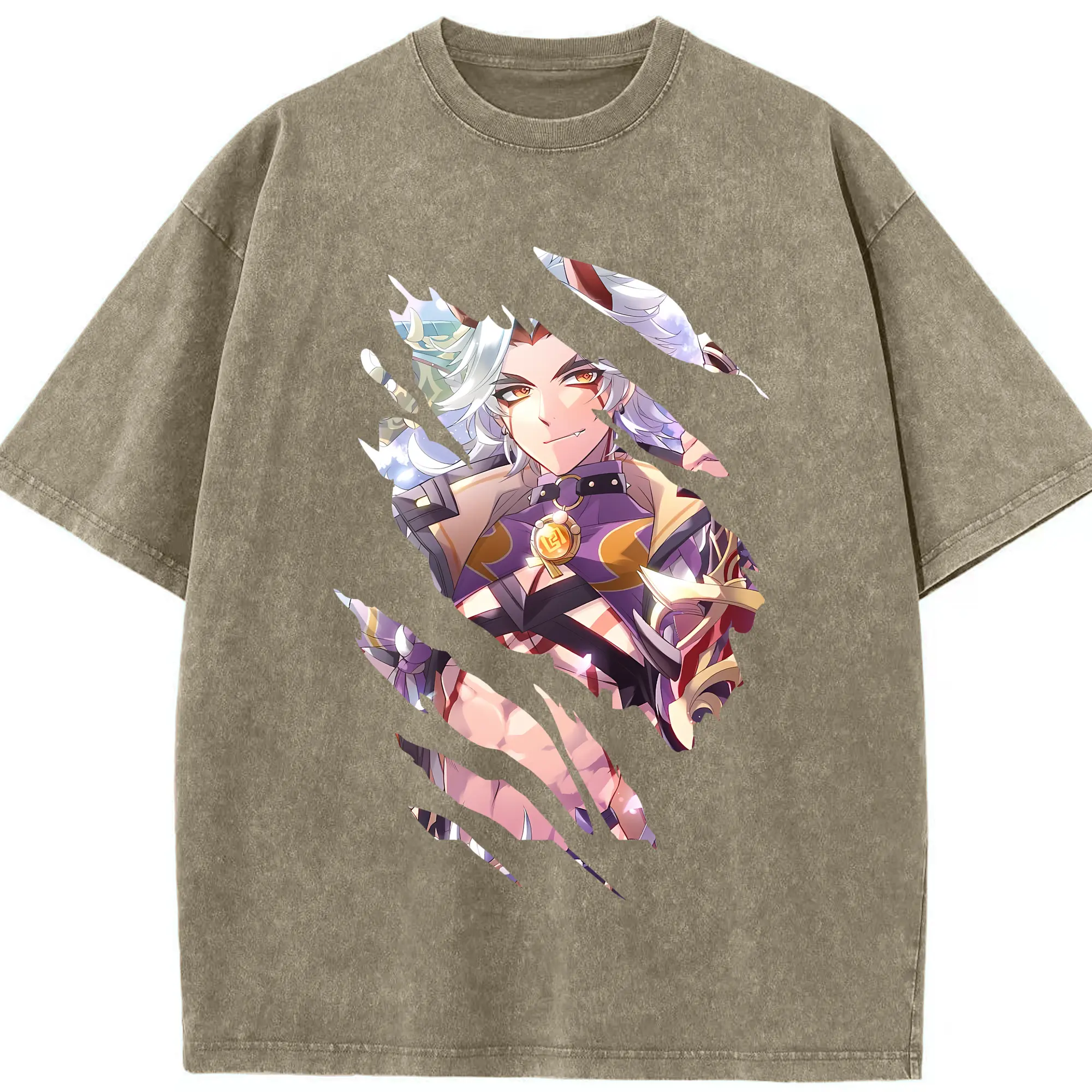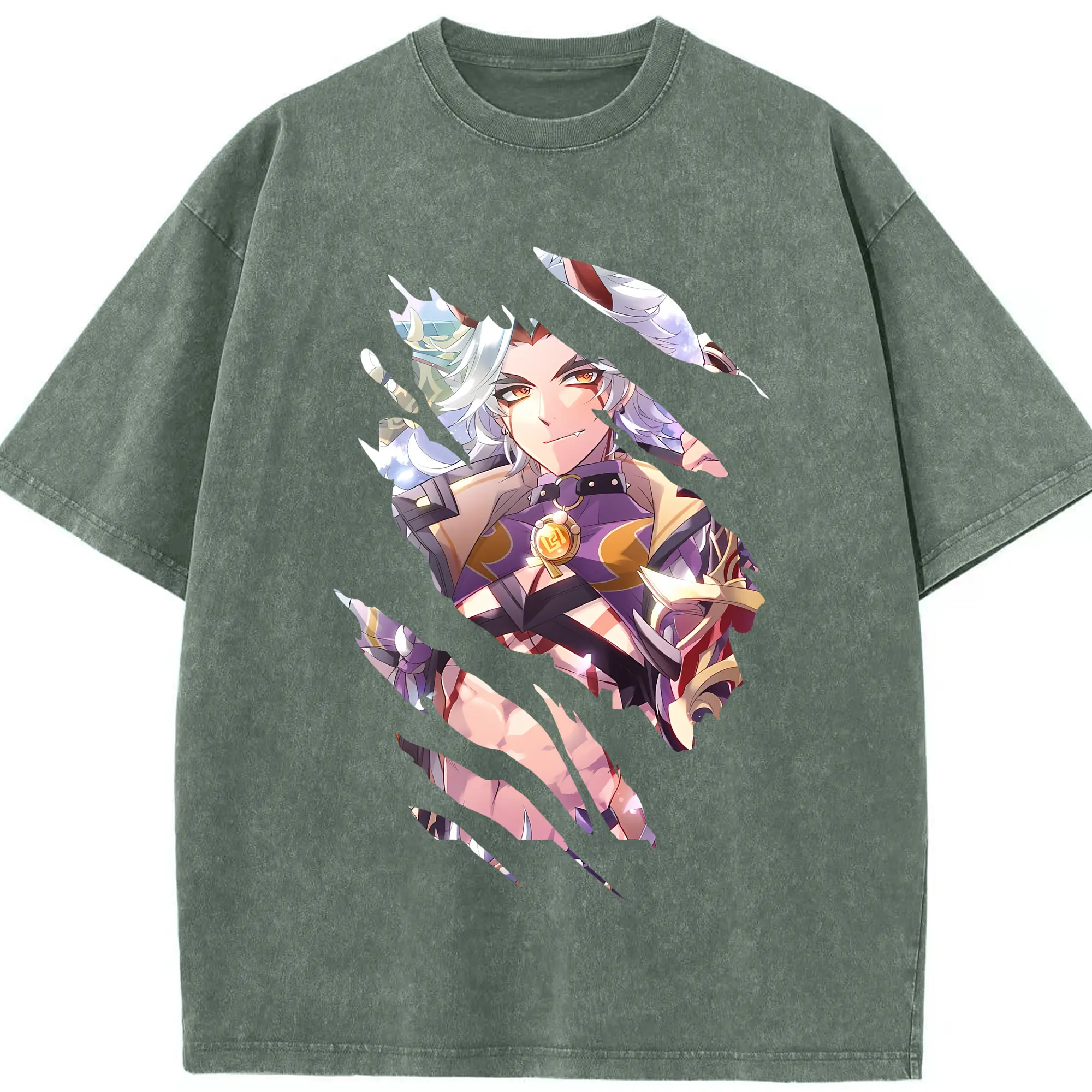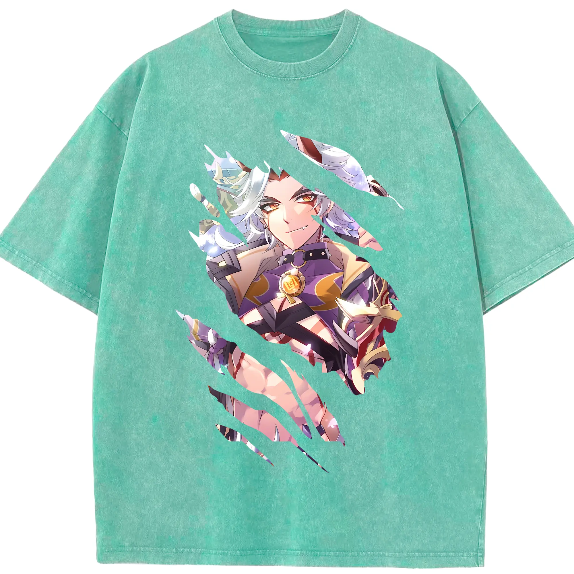 原 神 グッズ 荒瀧 一 斗 - 綿100% ヴィンテージ風 半袖Tシャツ ・ 背面プリント ・ 柔らか肌触り ・ 通気性 快適 ・ スポーツ カジュアル 外出用