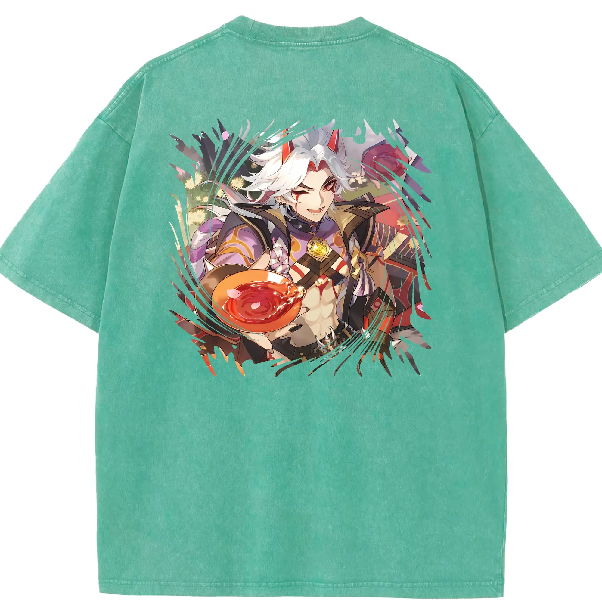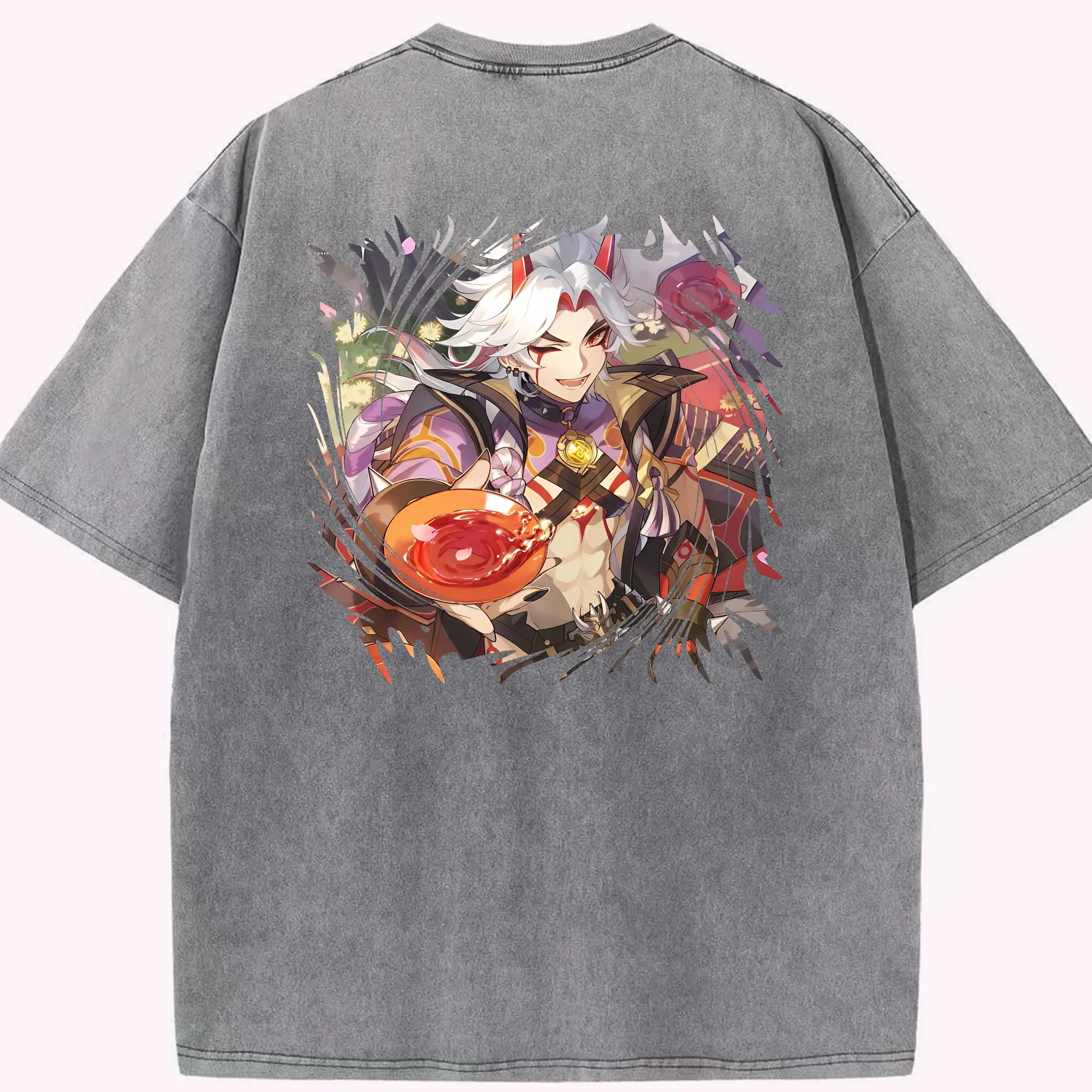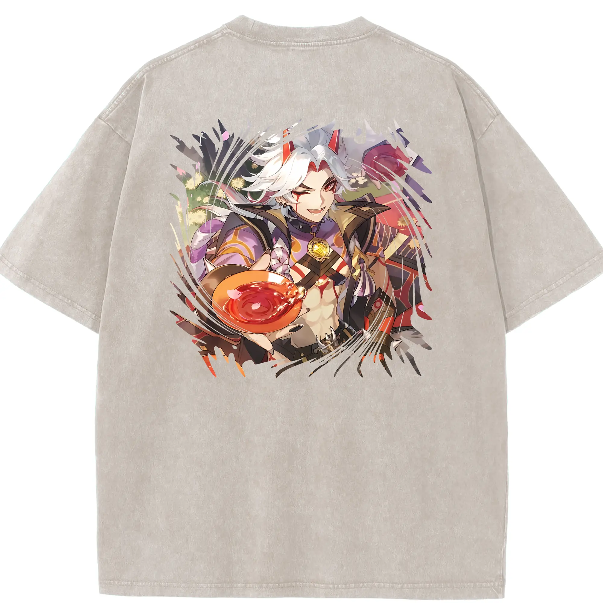 原 神 グッズ 荒瀧 一 斗 - 綿100% ヴィンテージ風 半袖Tシャツ ・ フロントプリント ・ 柔らか肌触り ・ 通気性 快適 ・ スポーツ カジュアル 外出用