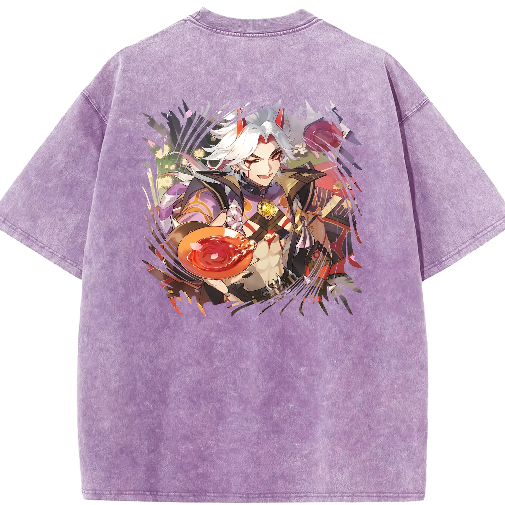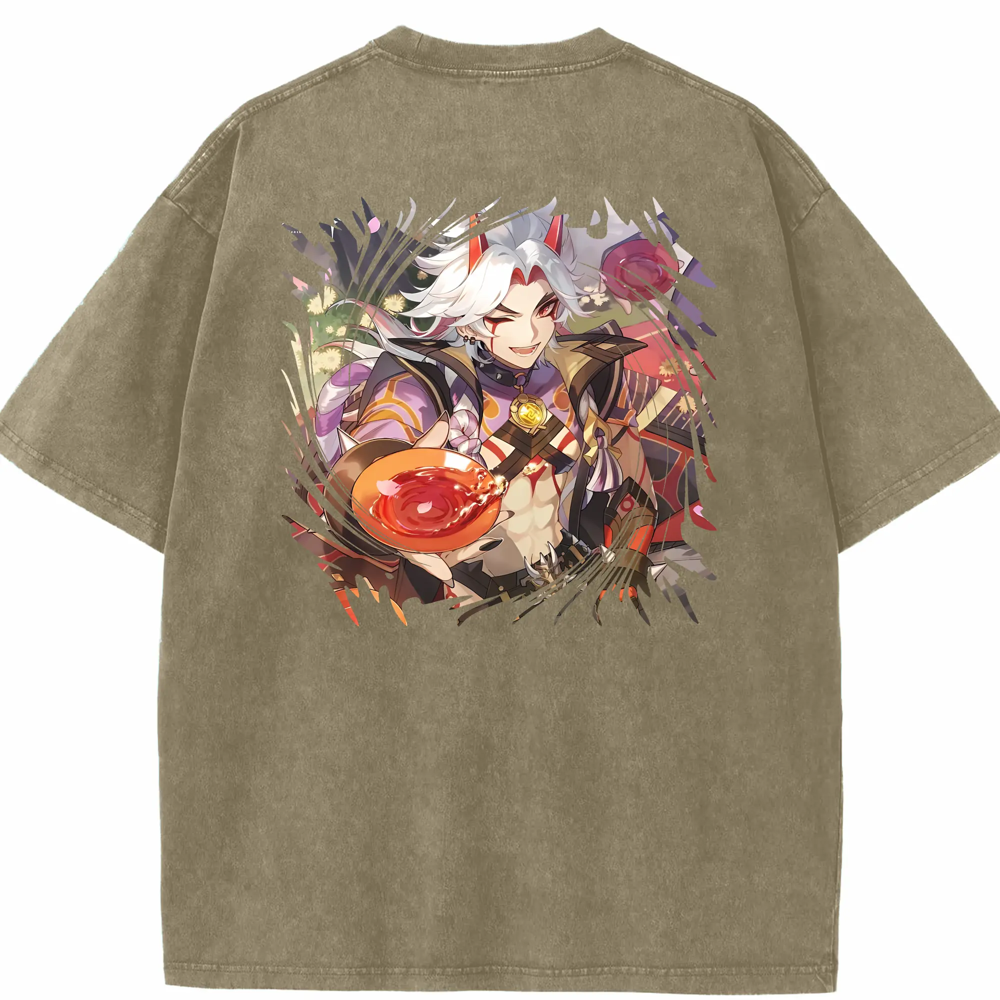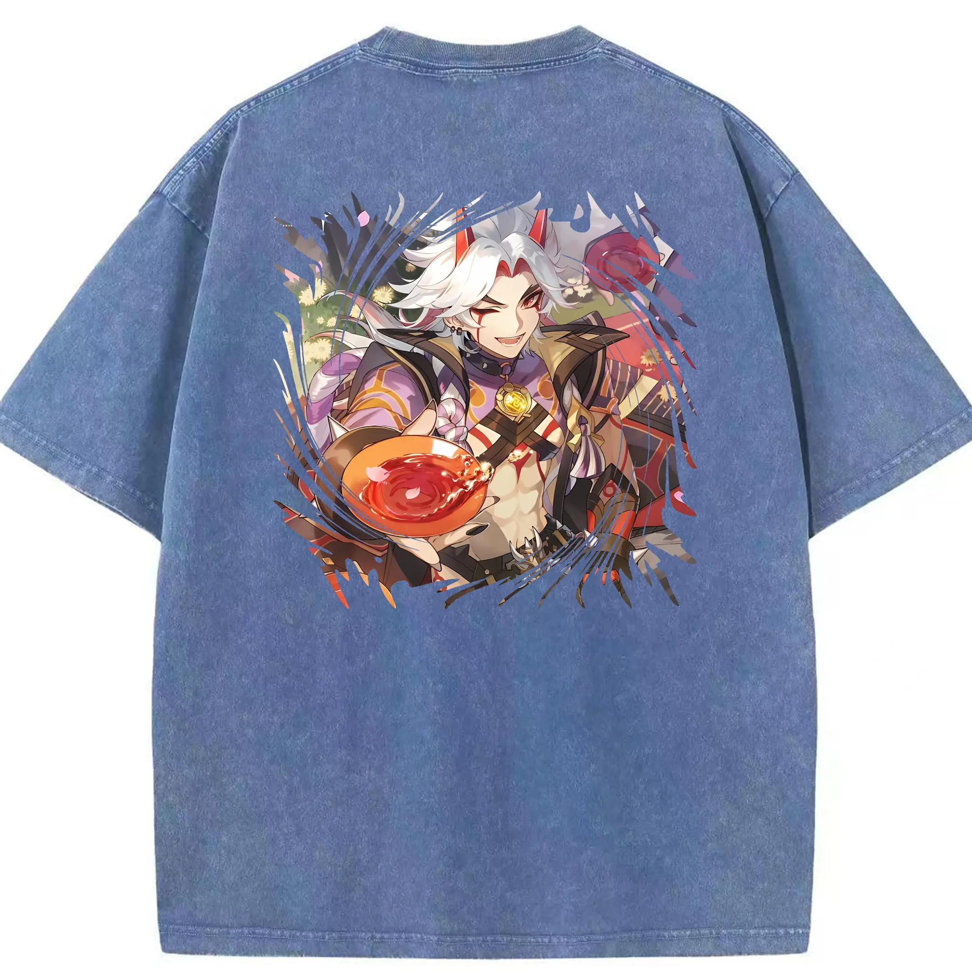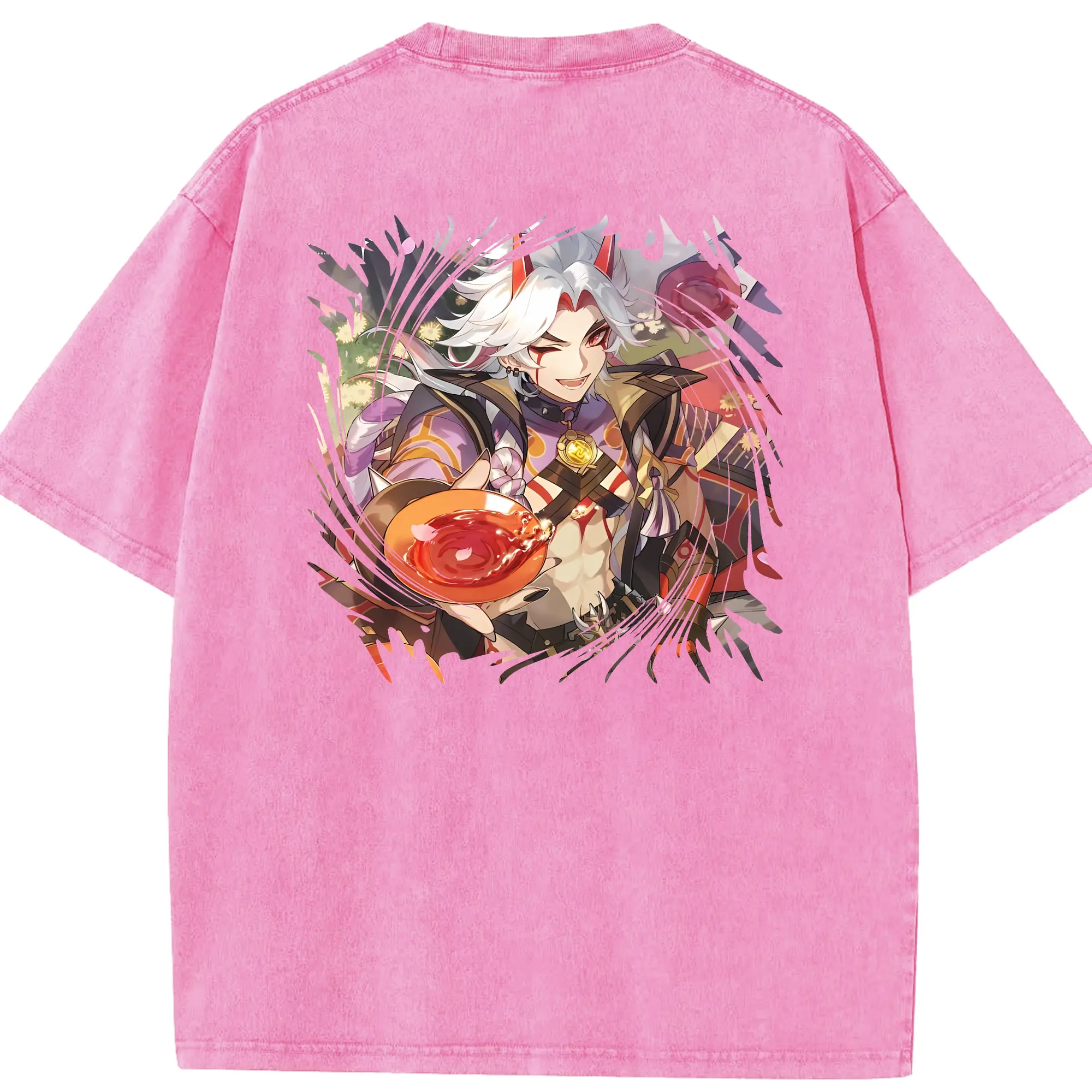 原 神 グッズ 荒瀧 一 斗 - 綿100% ヴィンテージ風 半袖Tシャツ ・ フロントプリント ・ 柔らか肌触り ・ 通気性 快適 ・ スポーツ カジュアル 外出用